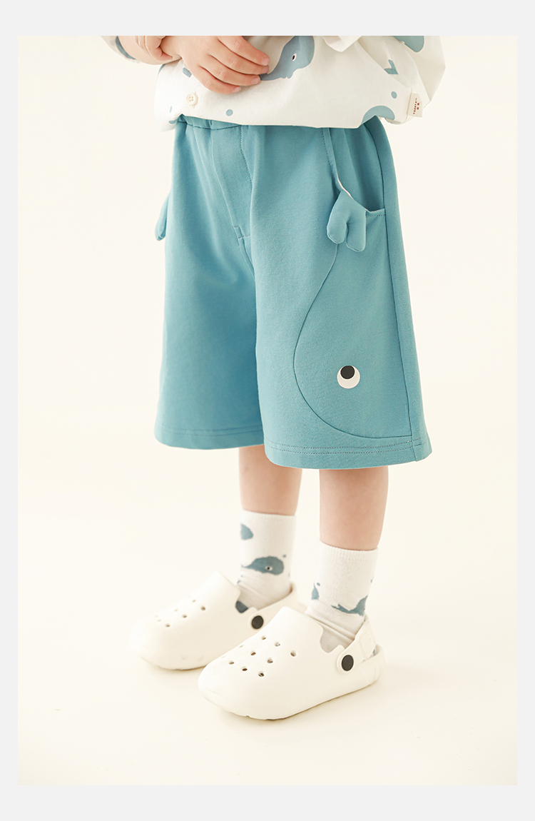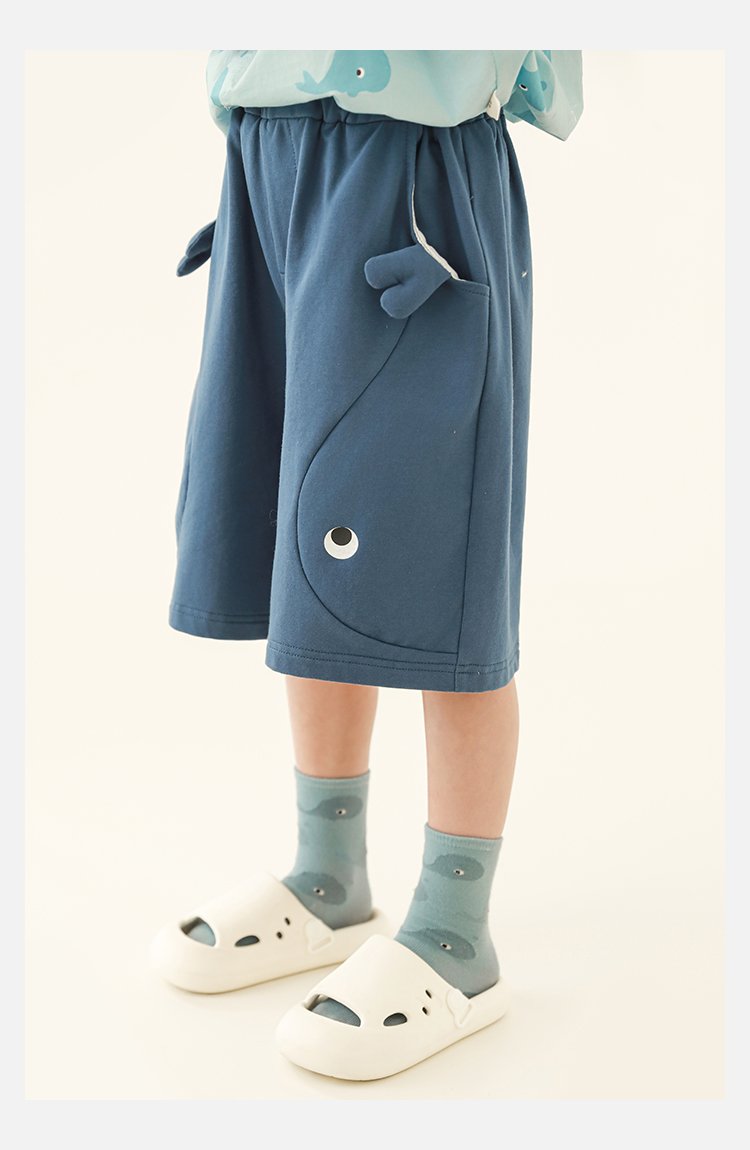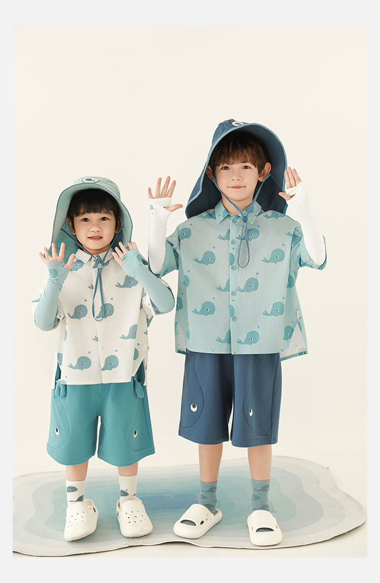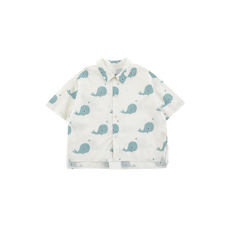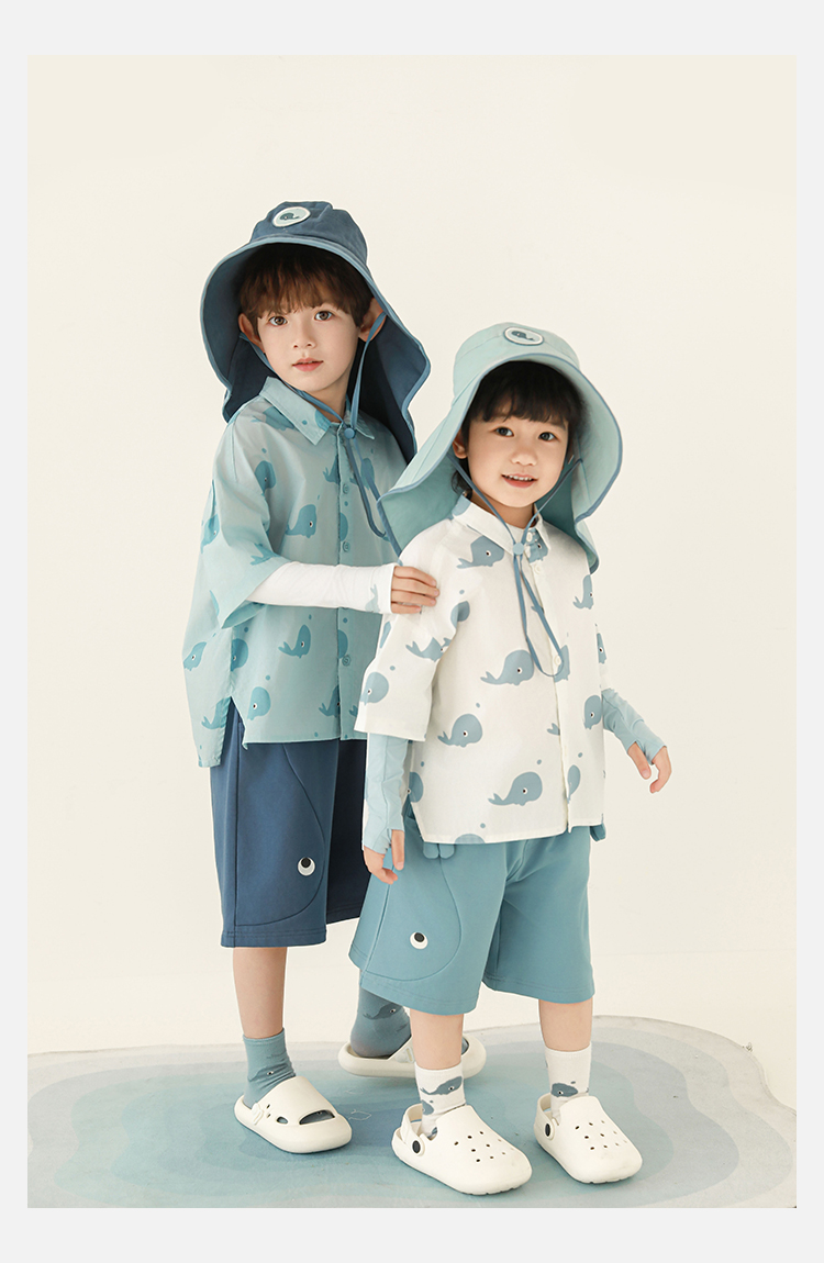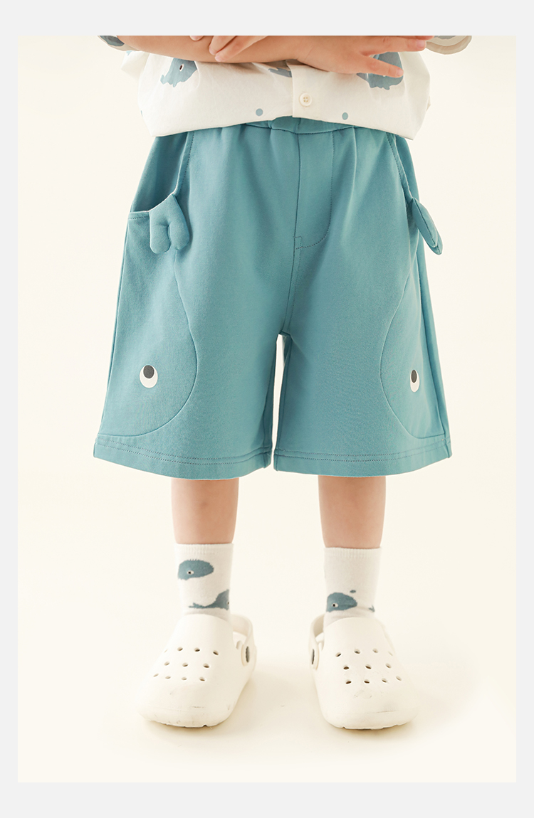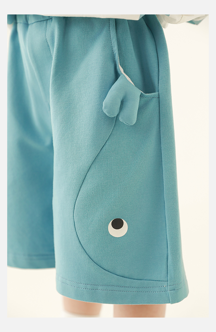 Wurib a boy 2025 새로운 만화 옷깃 짧은 소매 셔츠 패션 반바지 모자 고래 시리즈 세트