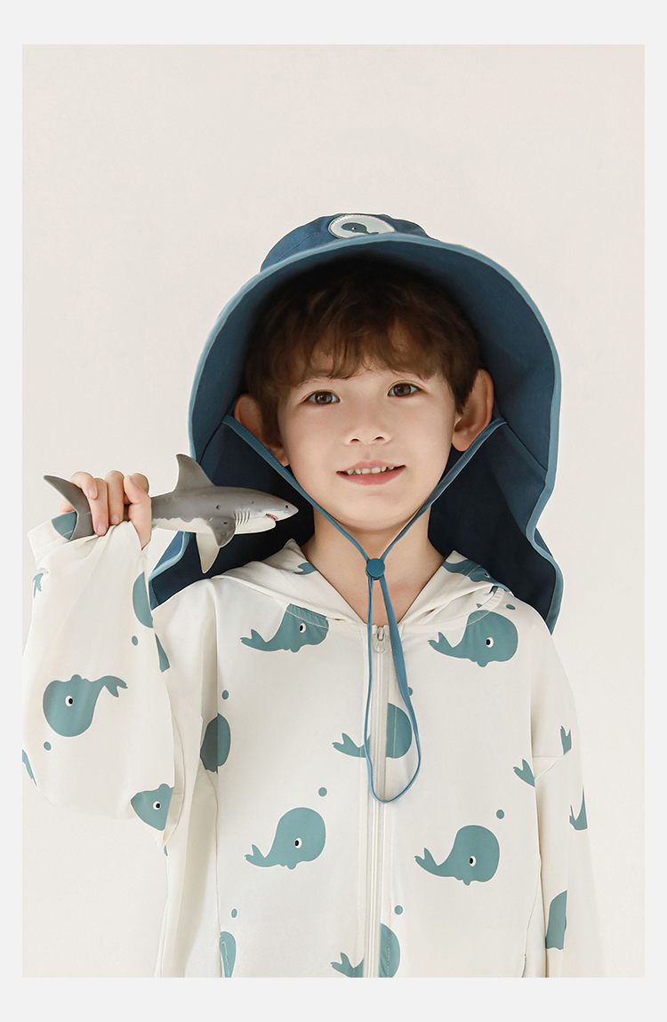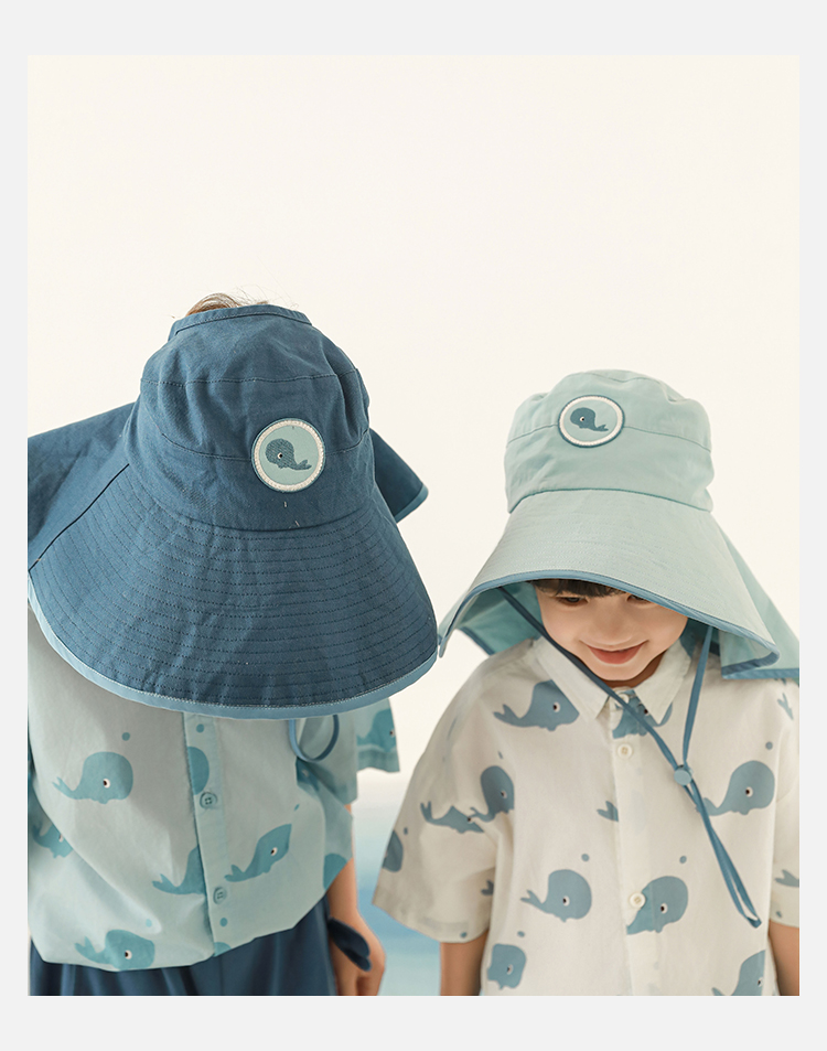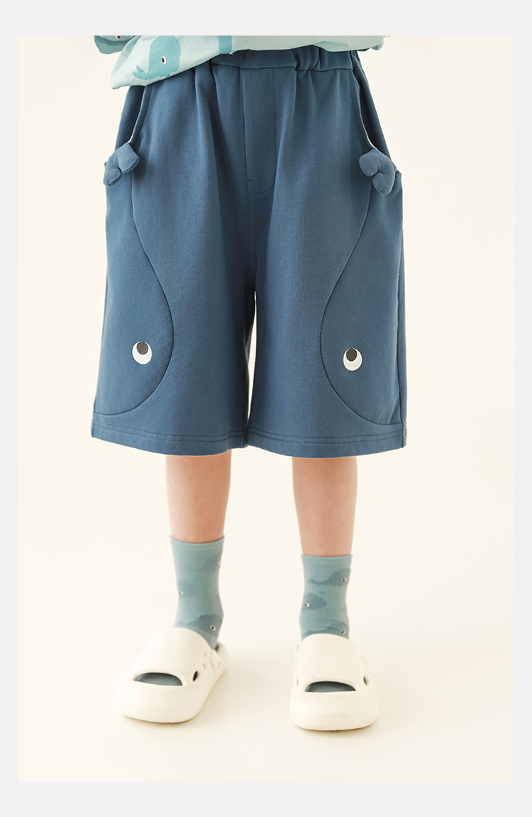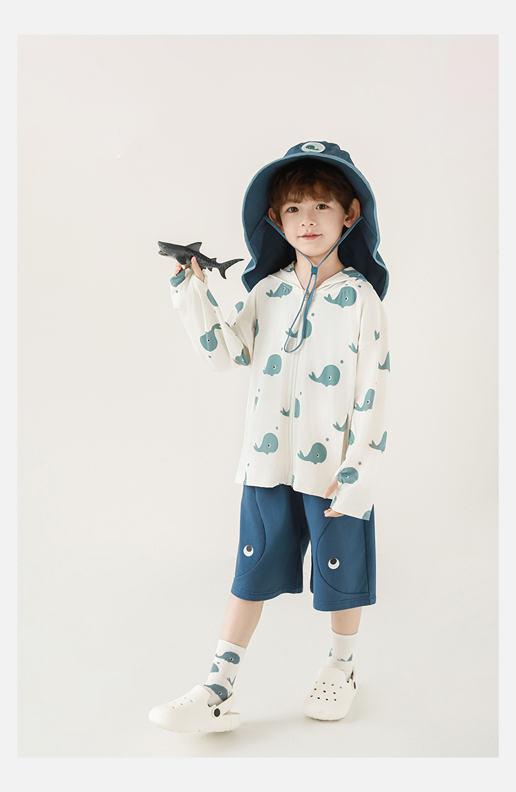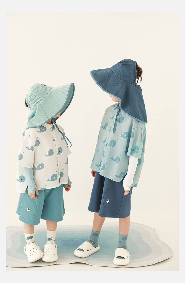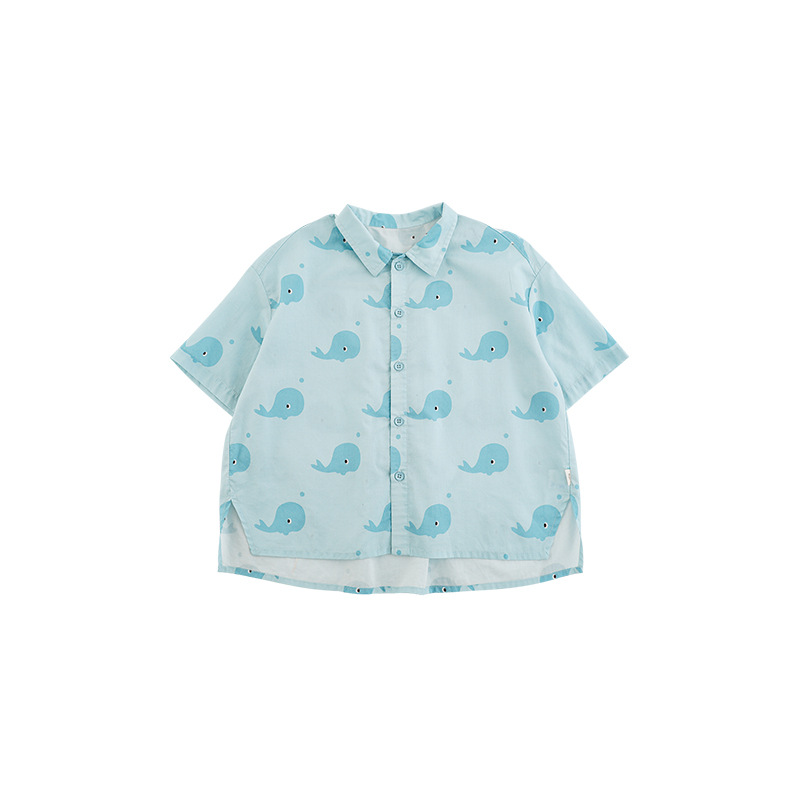Wurib a boy 2025 새로운 만화 옷깃 짧은 소매 셔츠 패션 반바지 모자 고래 시리즈 세트