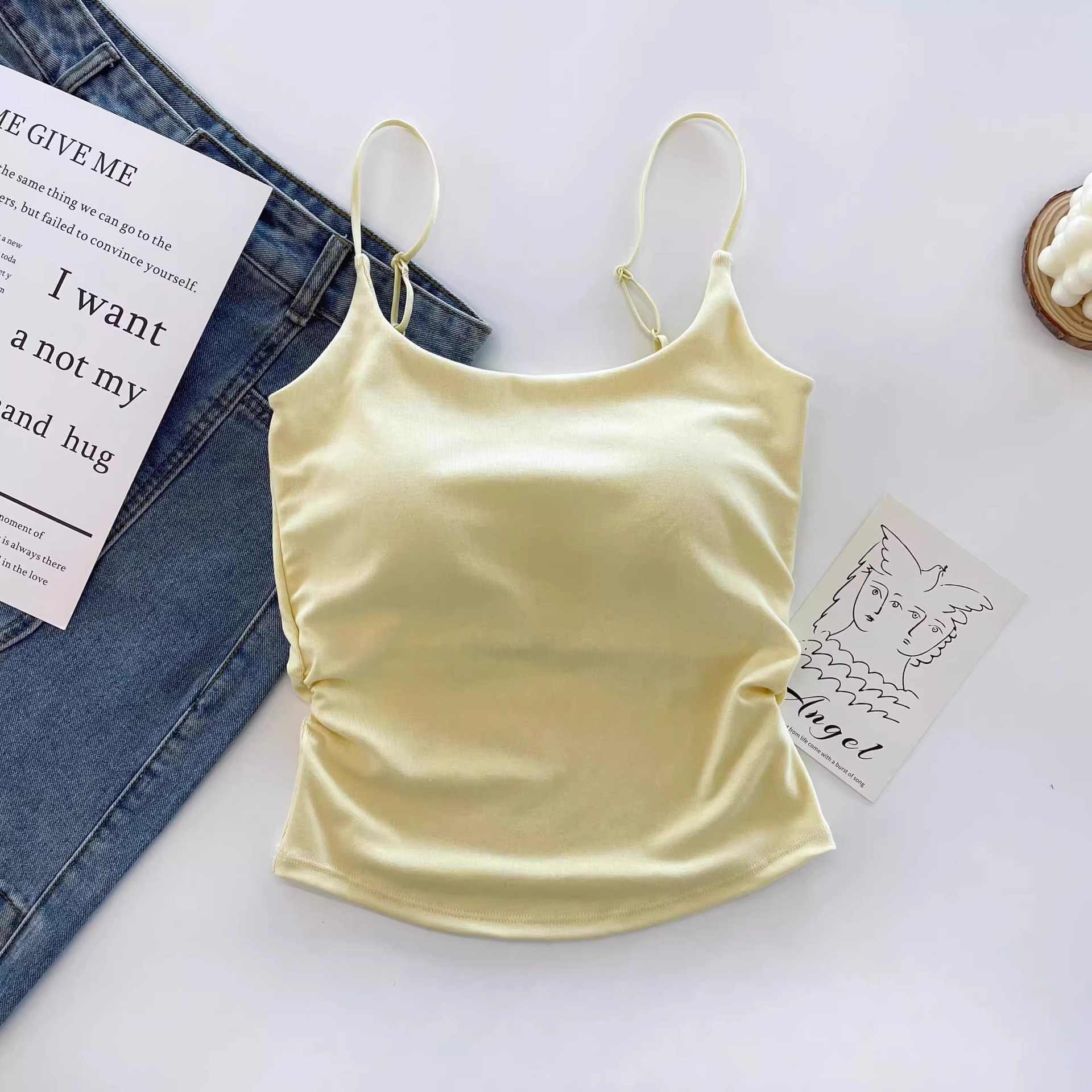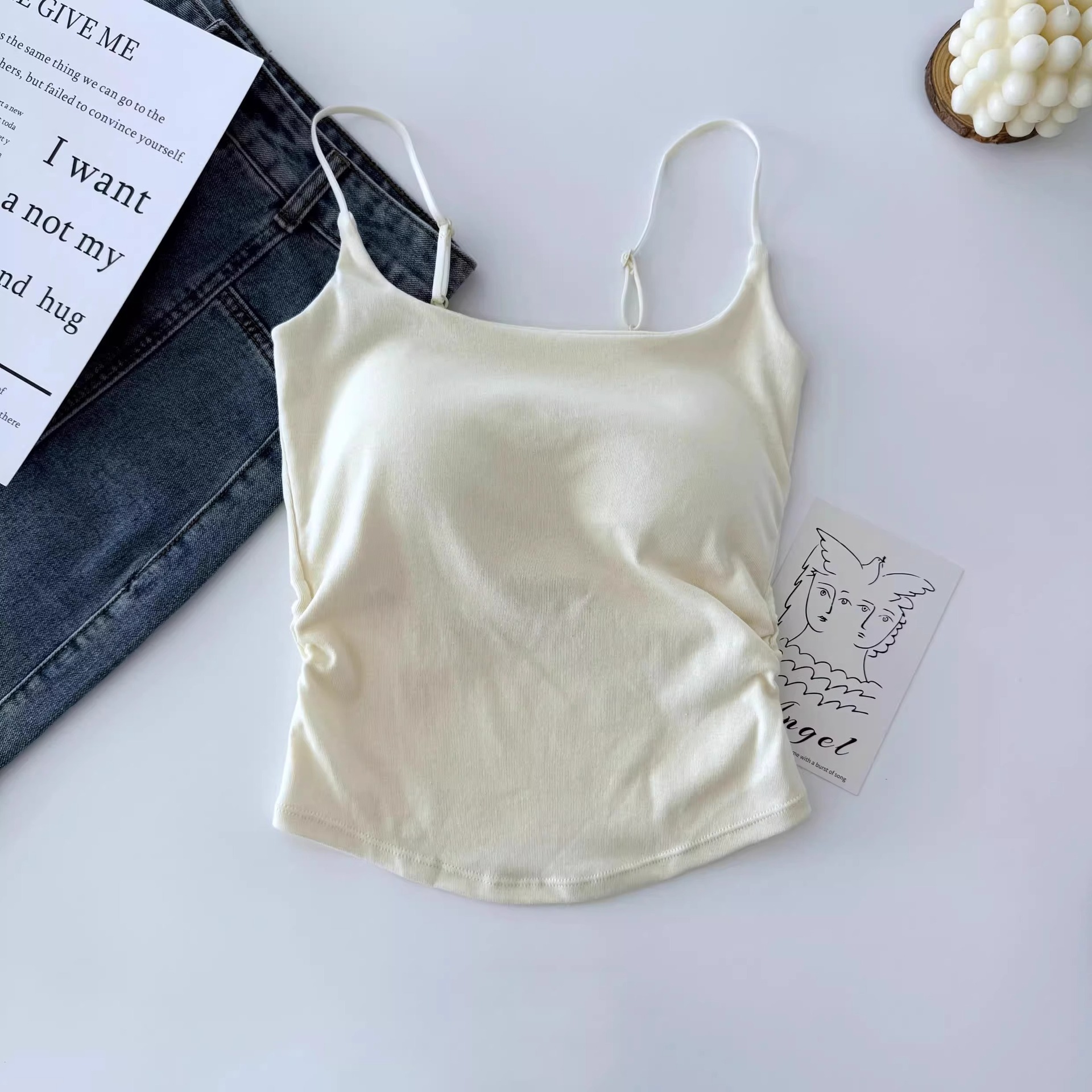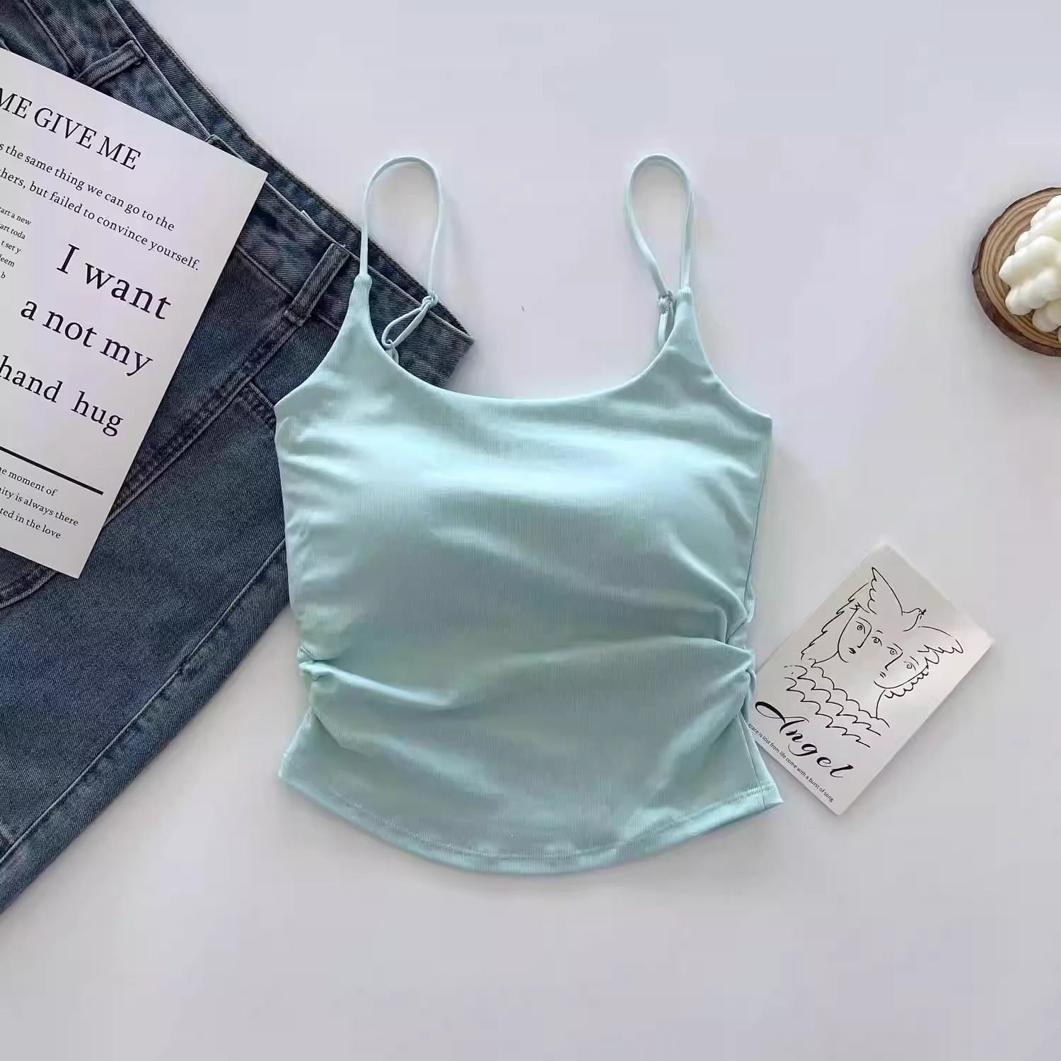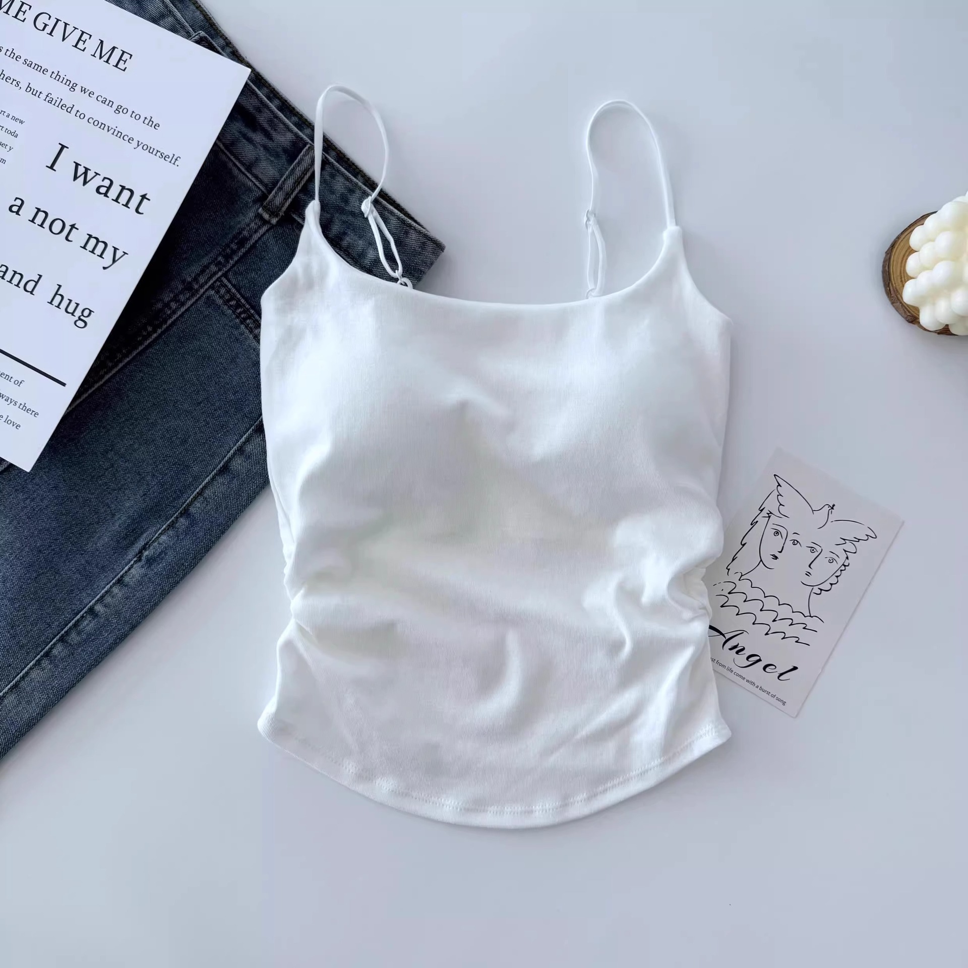 스파이스 걸스 순수한 욕망 스타일 Pleated Camisole 여성용 여름 외부 착용 내부 패드 조절 가능한 벨트 아름다운 다시 슬림 탑