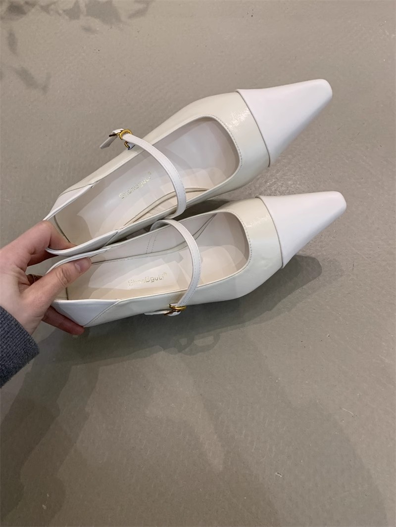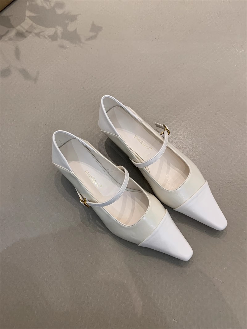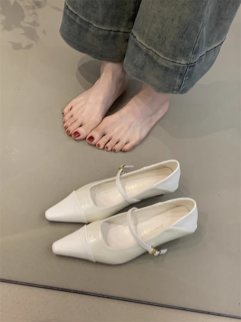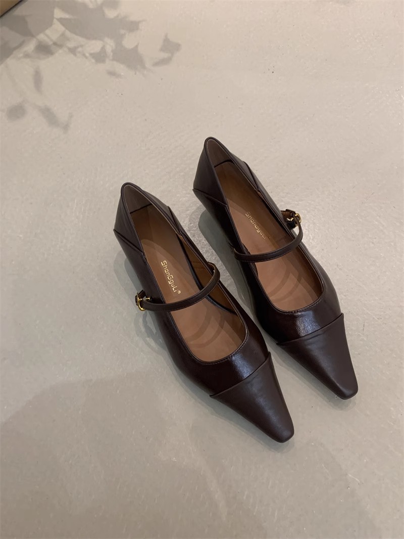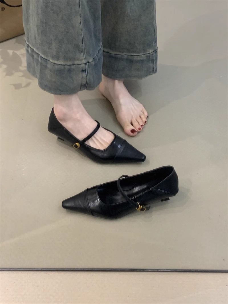 빈티지 디자인 센스 단층화 여성용 2025 년 봄과 가을 새로운 올매치 청키 힐 포인팅 버클 우아한 플랫 슈즈