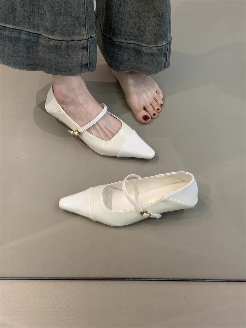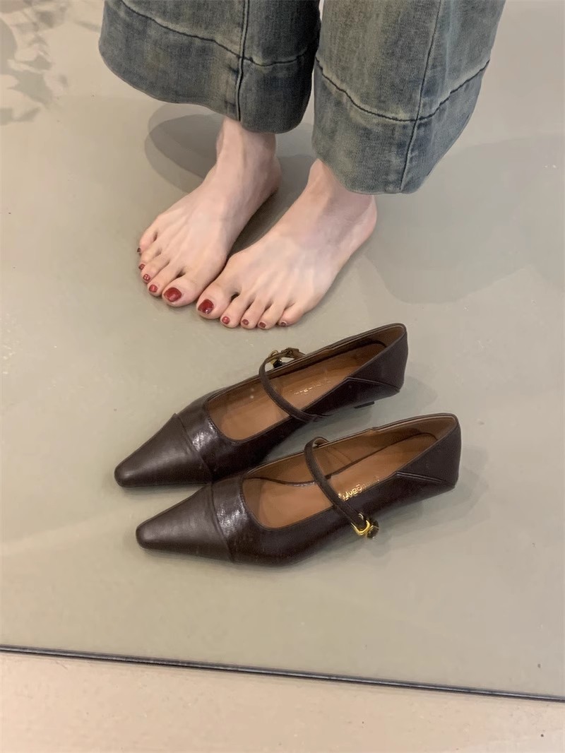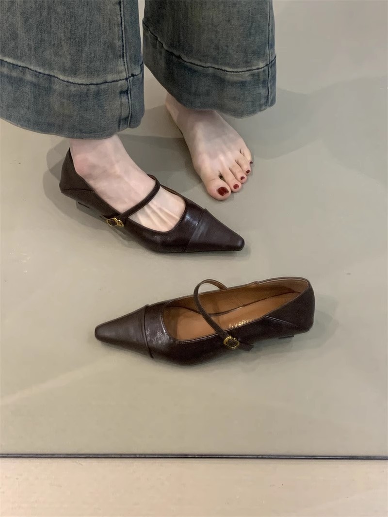빈티지 디자인 센스 단층화 여성용 2025 년 봄과 가을 새로운 올매치 청키 힐 포인팅 버클 우아한 플랫 슈즈스토어 가기