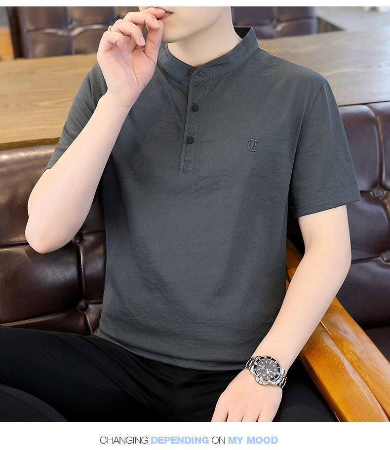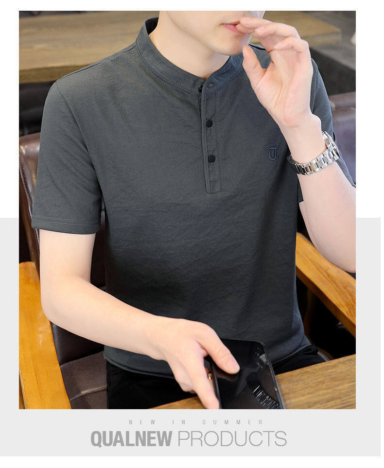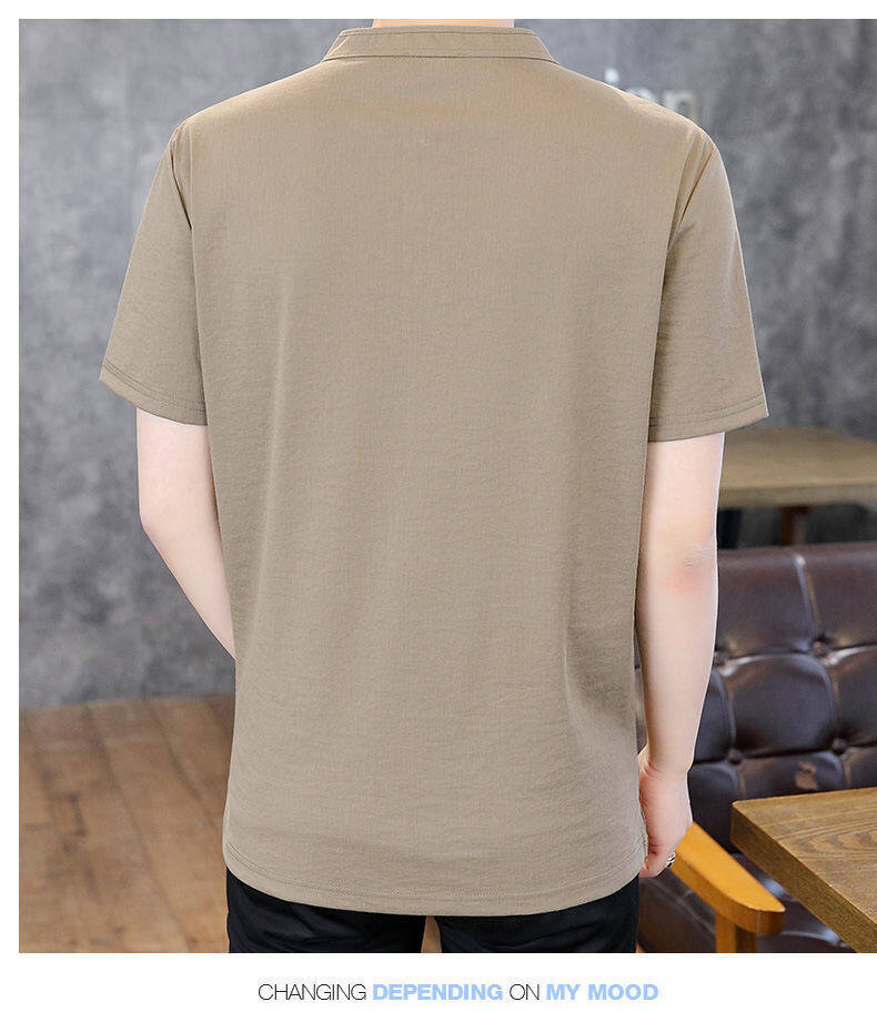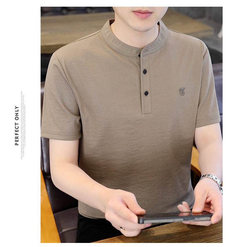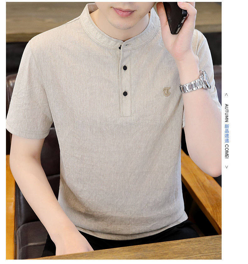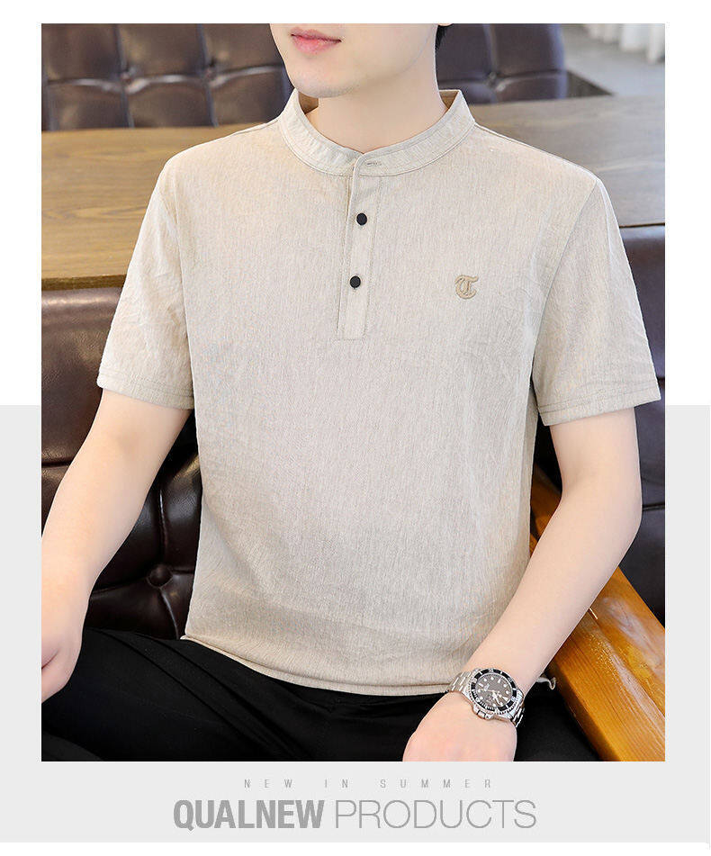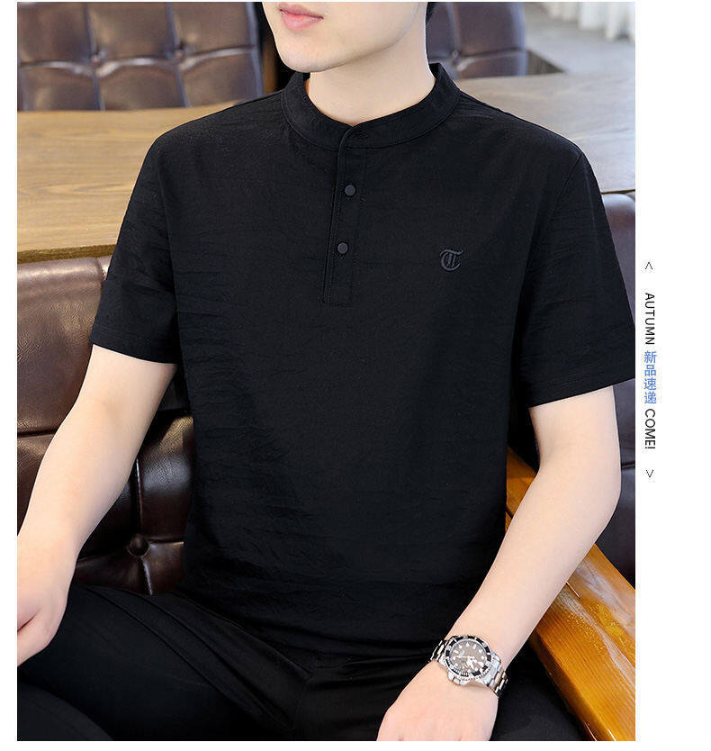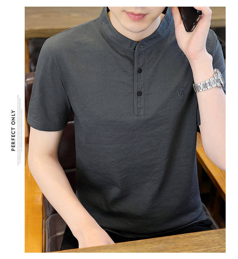 [면과 린넨] 싱글 옷 두 번째 여름 메인 푸시 품질 반팔 티셔츠 남성용 패셔너블 내셔널 스타일 티셔츠