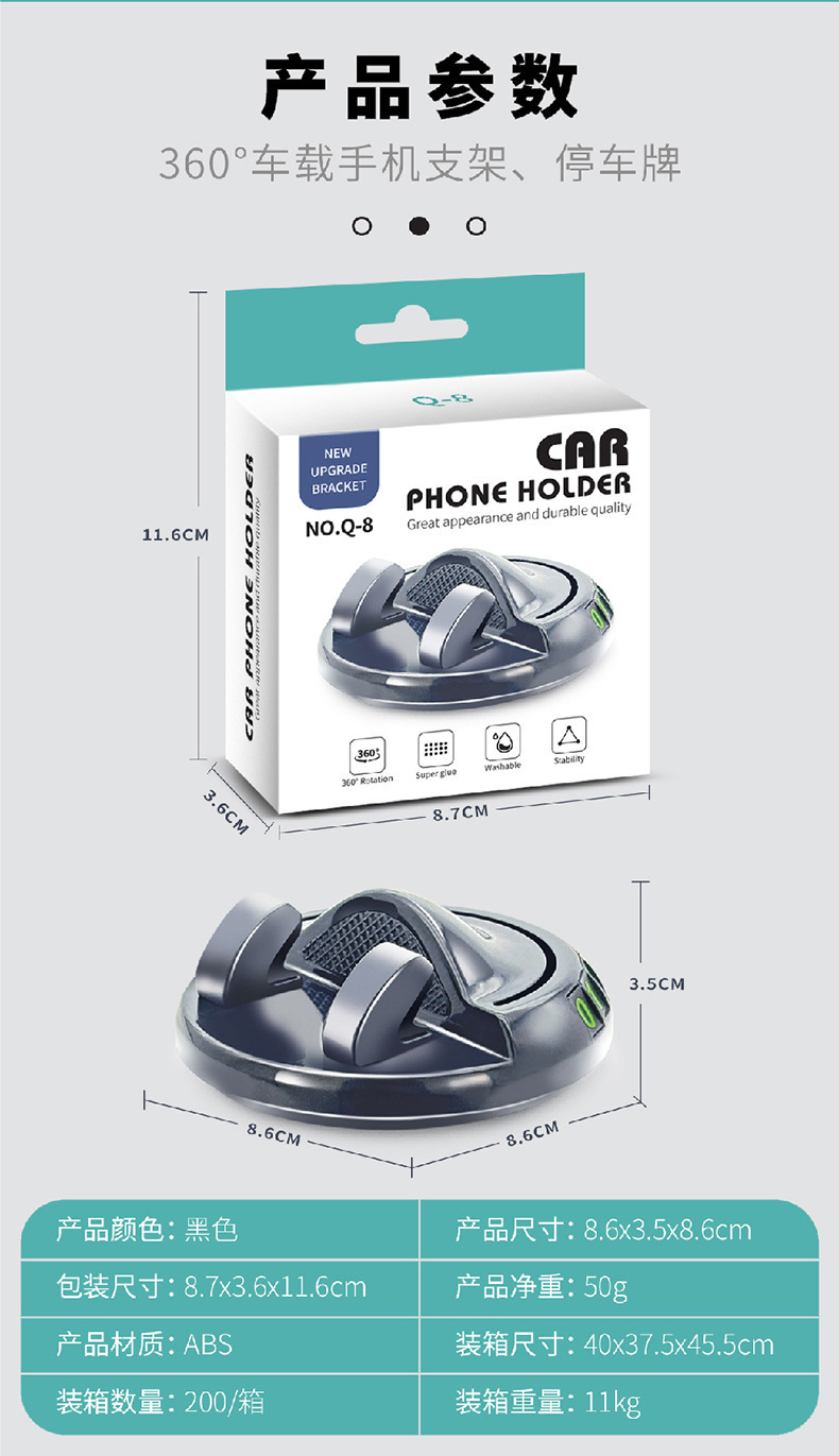 차량용 계기판 휴대폰 거치대 센터콘솔 접착식 360도 ° 회전식 주차 번호판 360도 회전