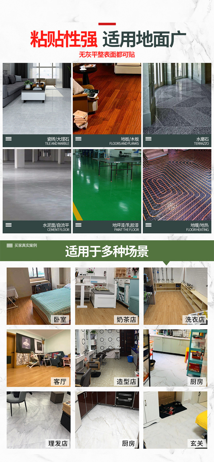 두꺼운 바닥 스티커, 자체 접착 바닥 가죽, PVC 바닥 고무 패드, 시멘트 바닥 스티커, 가정 거실 공장 공급스토어 가기
