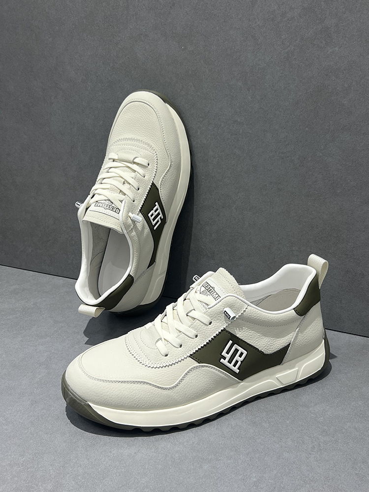 남성 신발 2025 새로운 정품 가죽 흰색 신발 울트라 라이트 소프트 하단 포레스트 검프 신발 통기성 독일 훈련 신발 남성 스포츠 캐주얼 신발