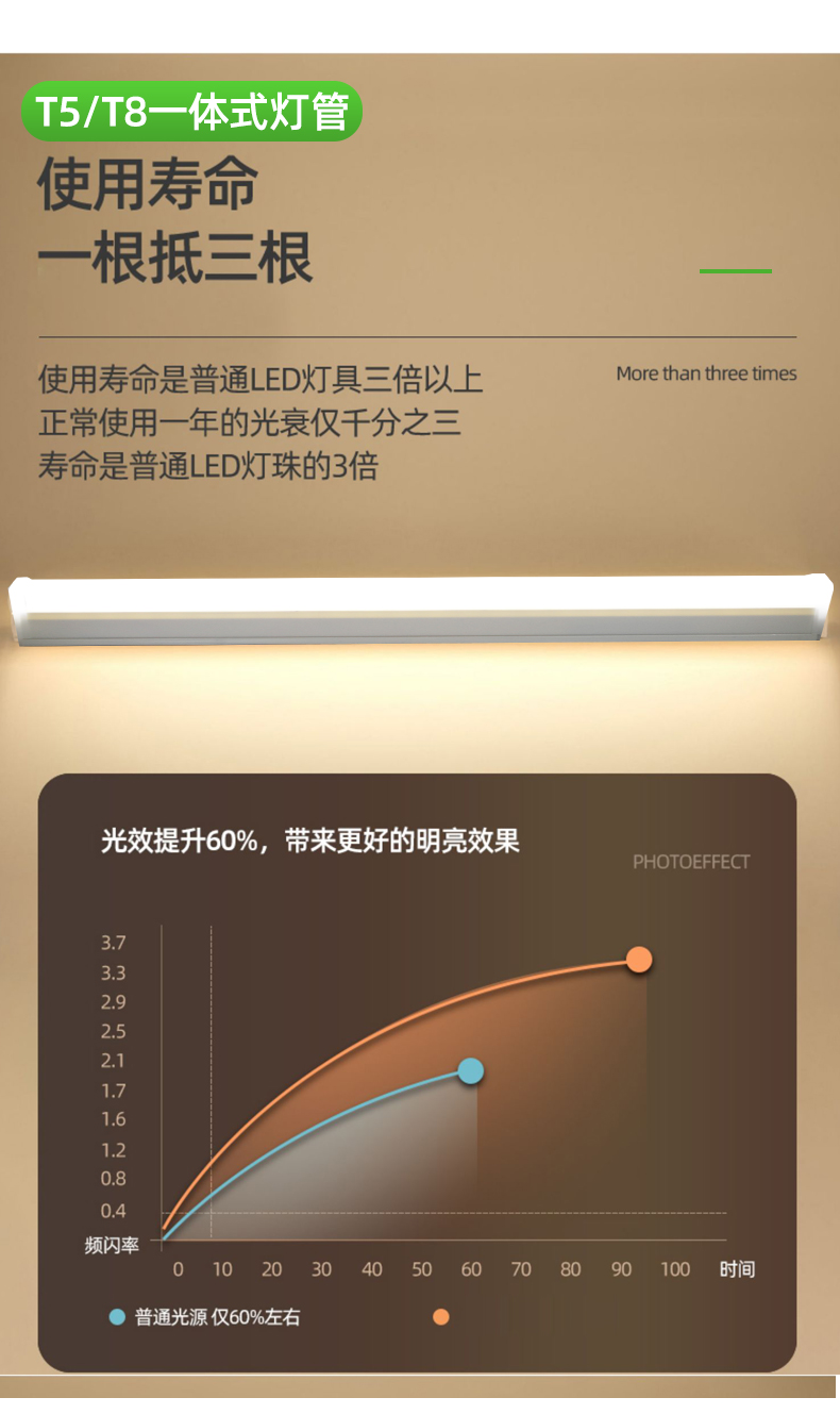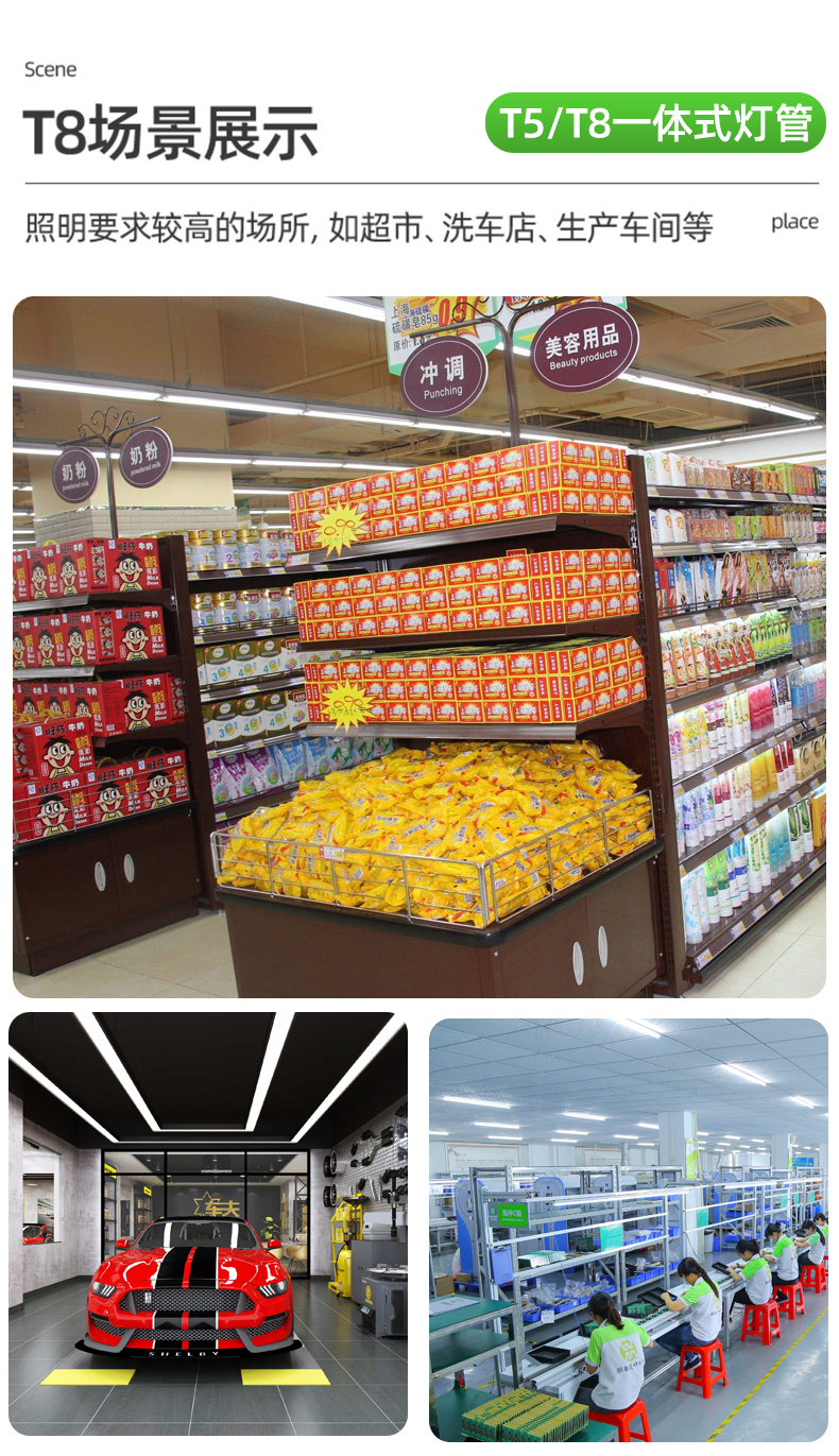 상하이 야밍 led 튜브 통합 형광 램프 T5T8 긴 가구 풀 세트 브래킷 슈퍼 밝은 에너지 절약 1.2 m스토어 가기