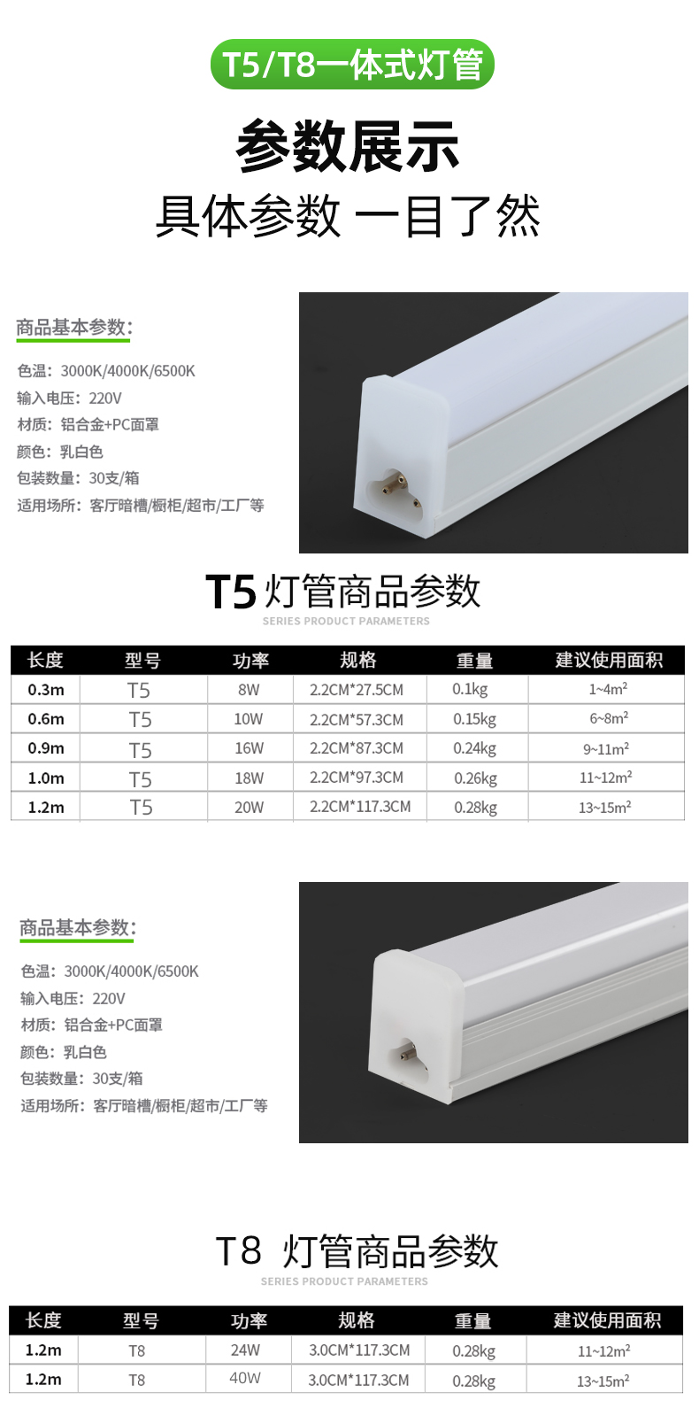 • Yaming T8【1.6m W】통합 LED 조명 튜브