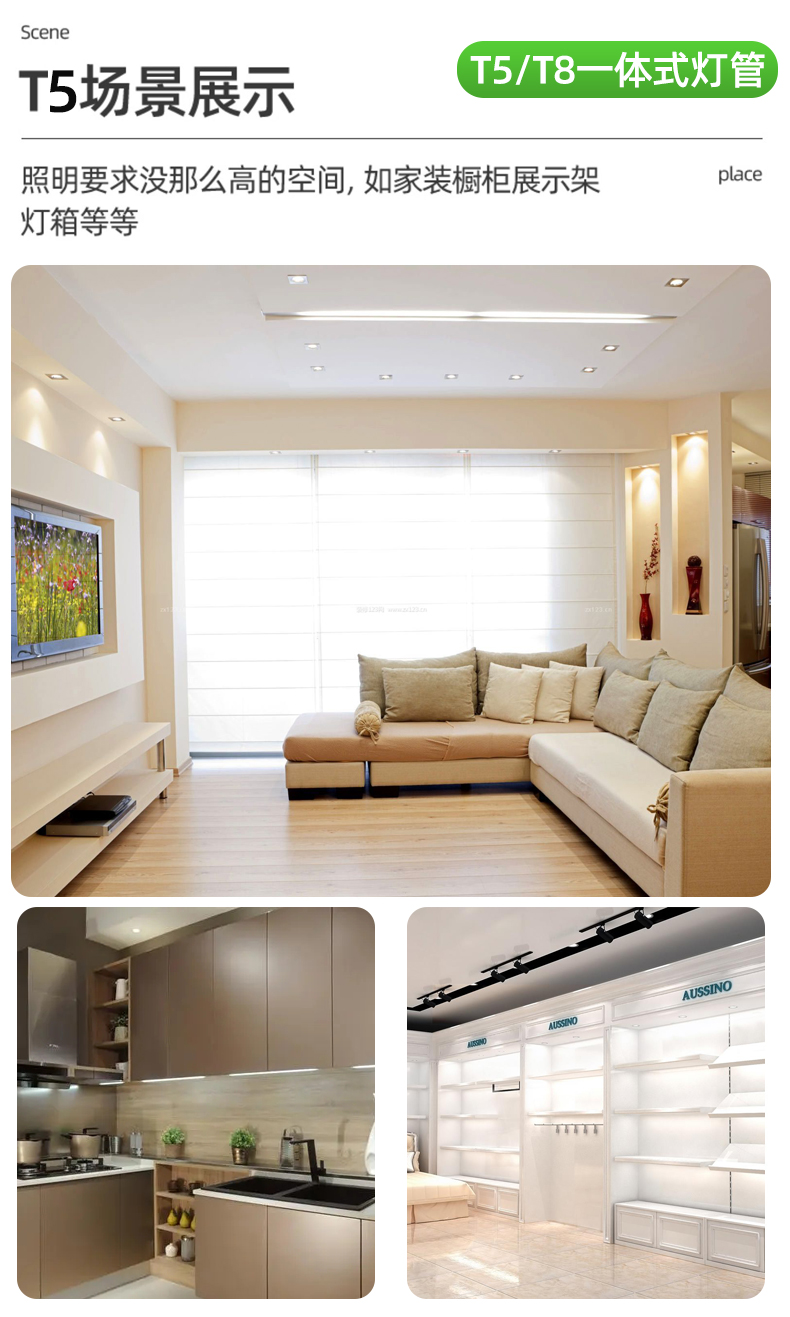 • Yaming T5【0.8m W】통합 LED 튜브-따뜻한 노란색 조명