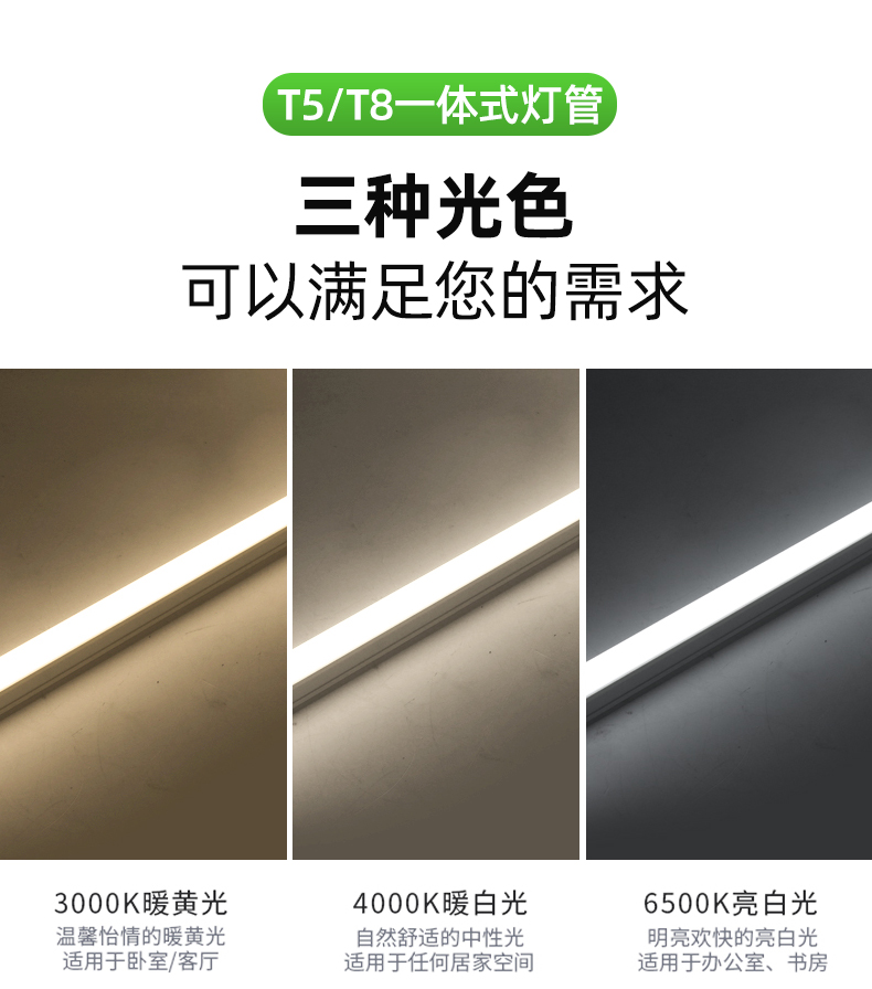 • Yaming T5【0.8m W】통합 LED 튜브-따뜻한 백색광