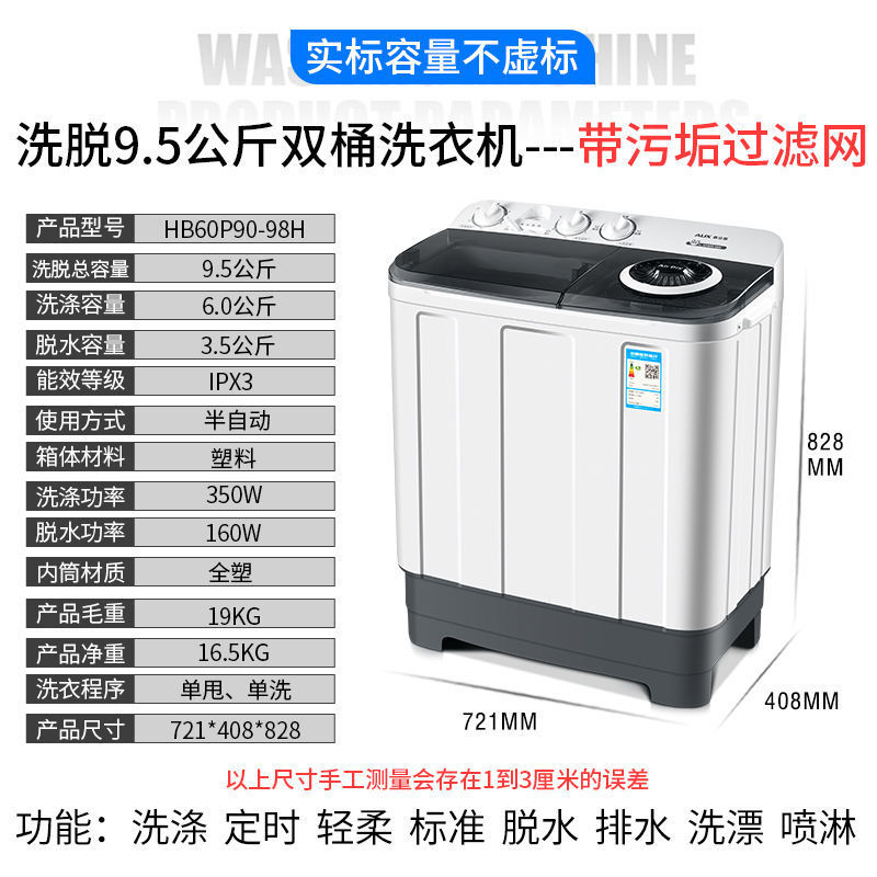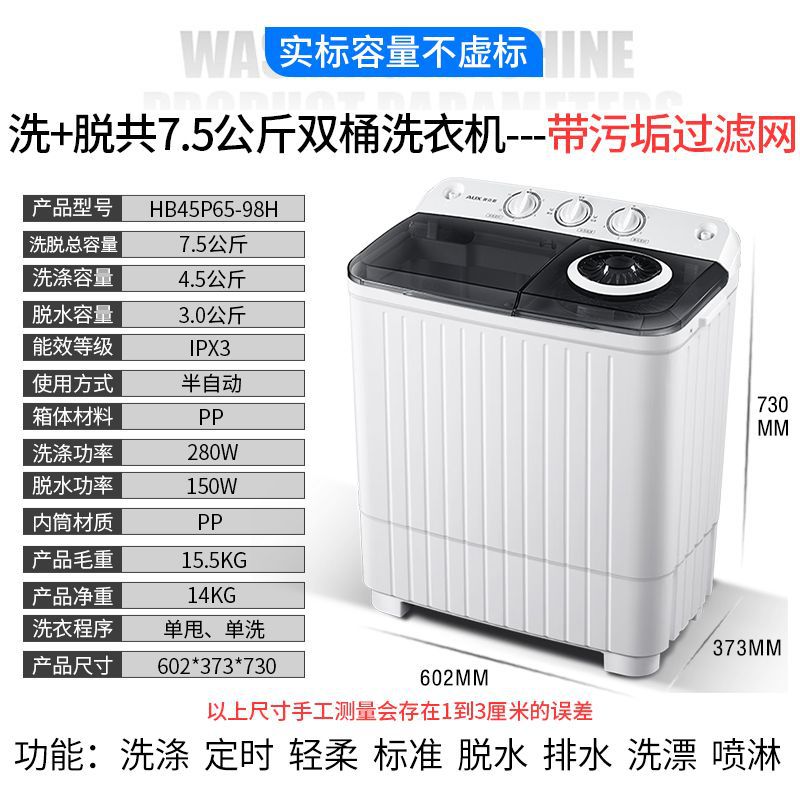 AUX/Oaks 반자동 세탁기 병렬 배럴 배럴 대용량 기숙사 가정용 소형 세탁기 미니