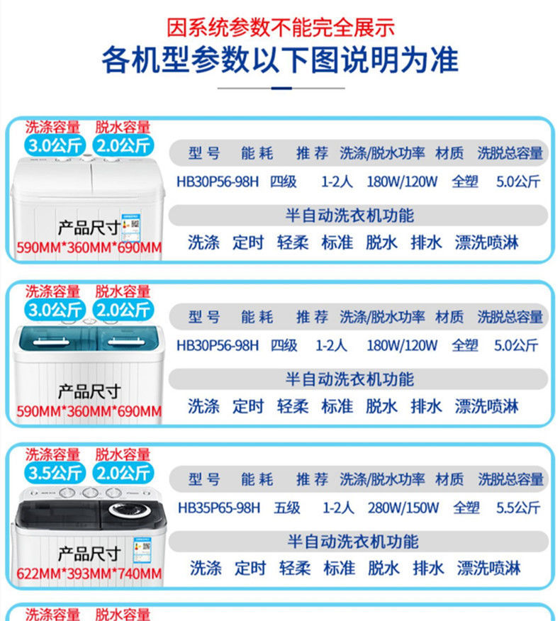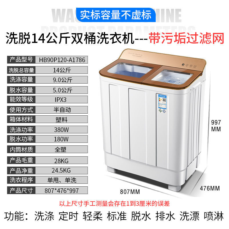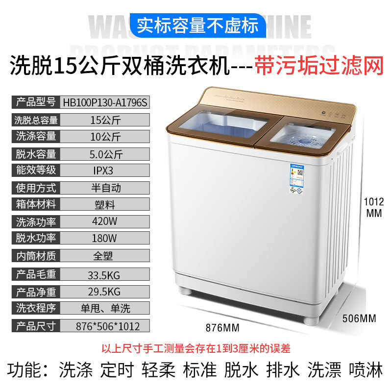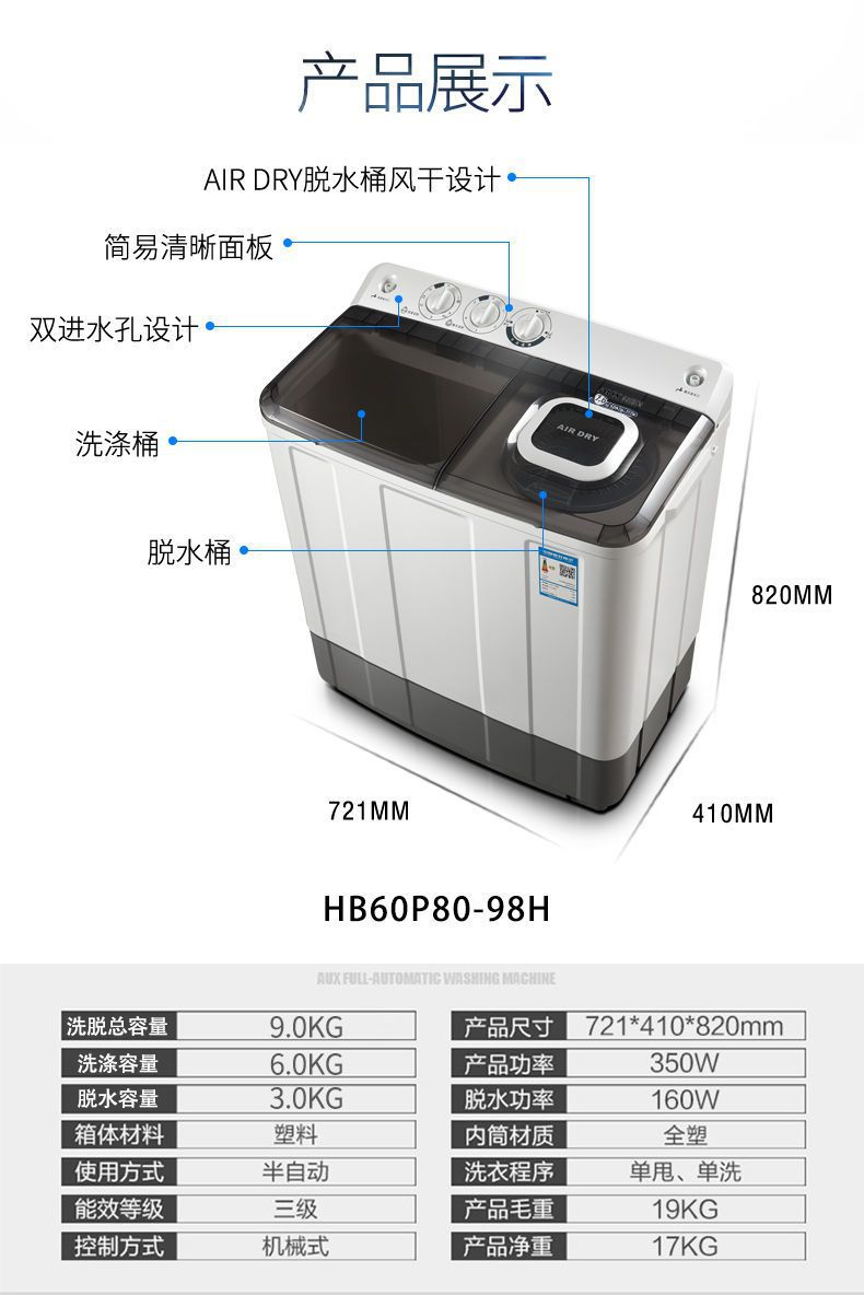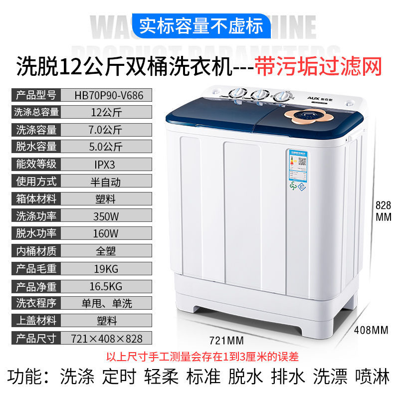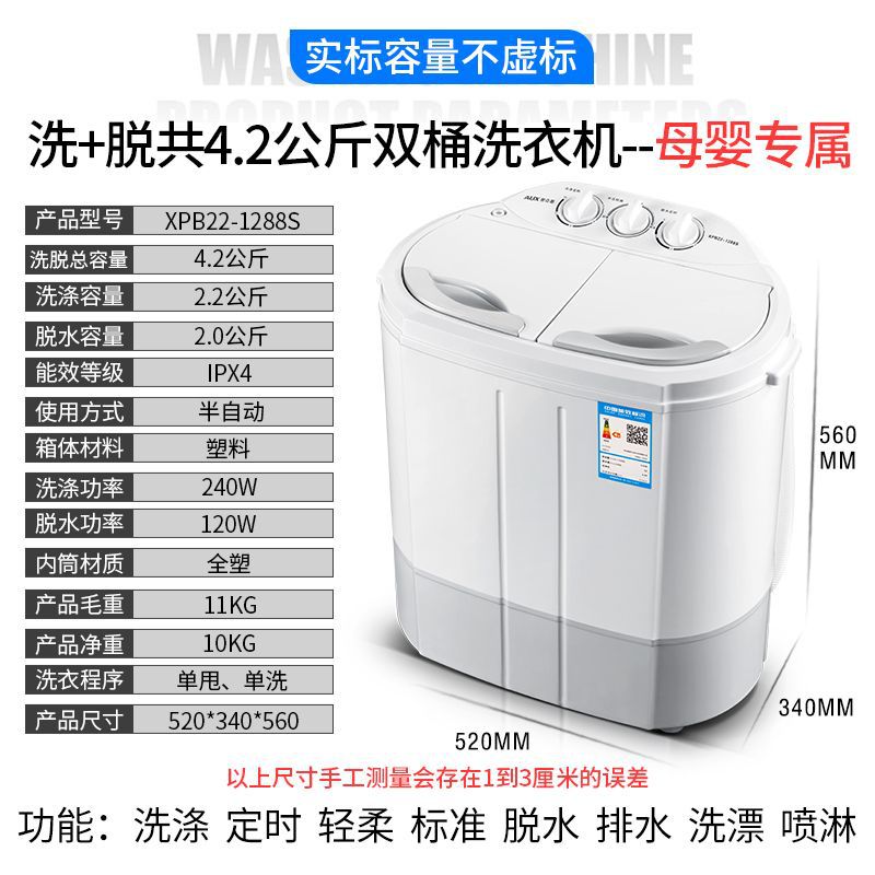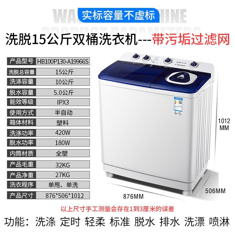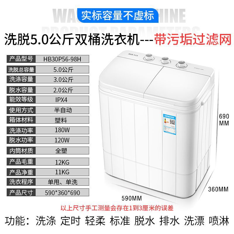 AUX/Oaks 반자동 세탁기 병렬 배럴 배럴 대용량 기숙사 가정용 소형 세탁기 미니스토어 가기