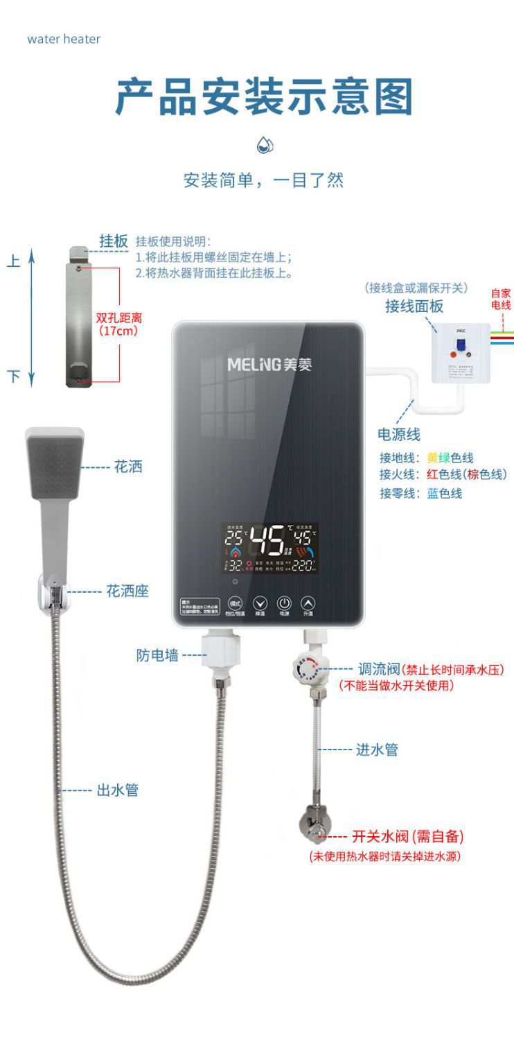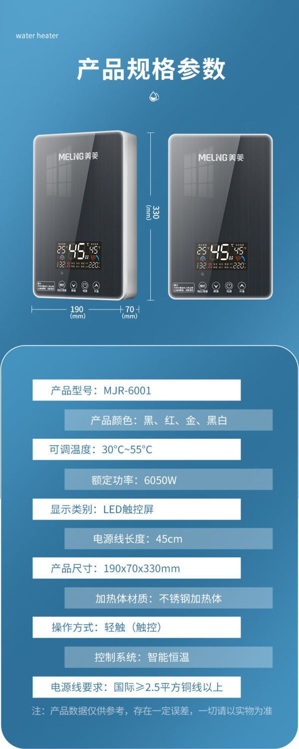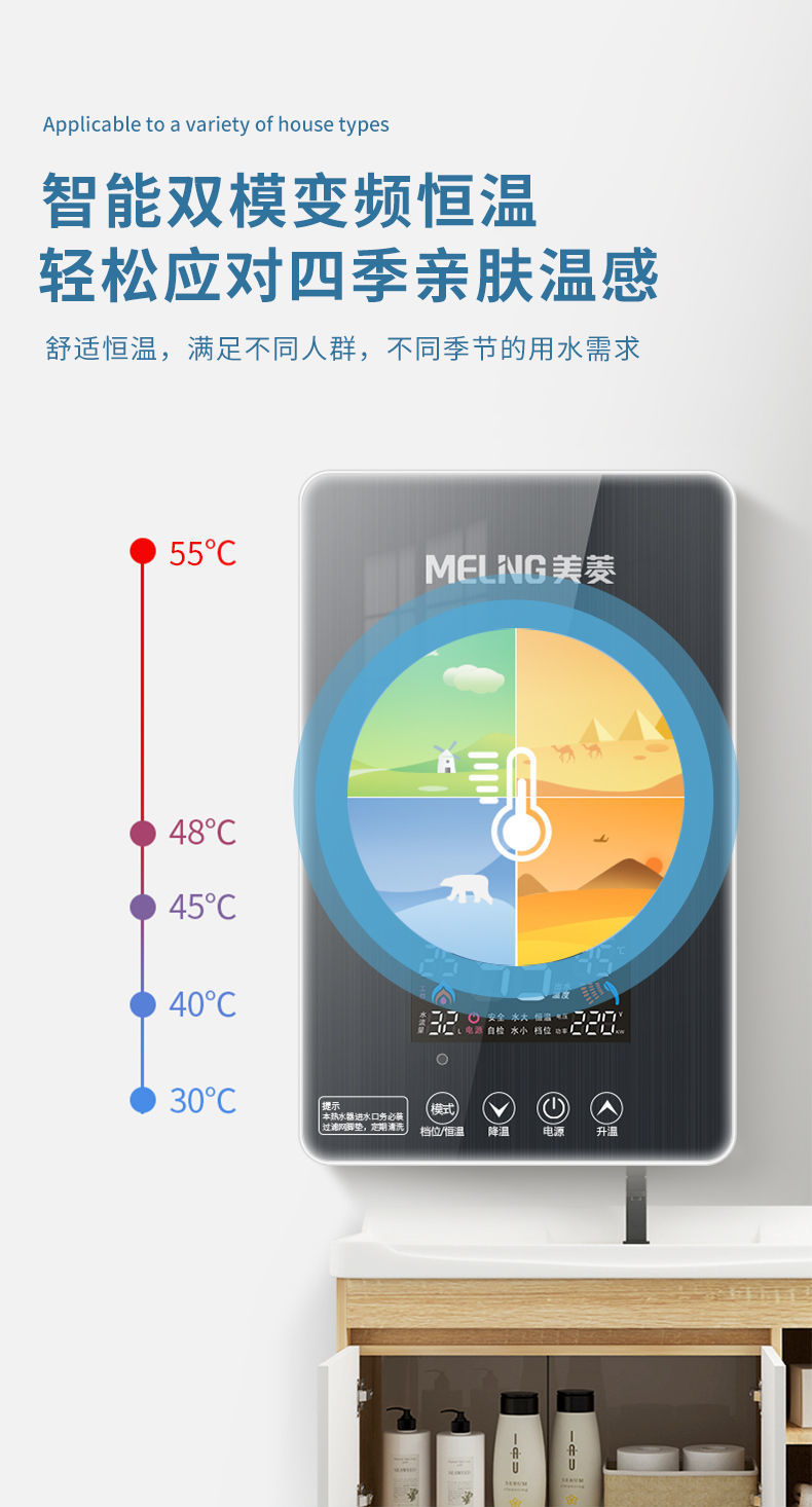 Meiling 일정한 온도 전기 온수기 인스턴트 목욕 가전 미니 작은 빠른 뜨거운 뜨거운 렌탈 룸 샤워스토어 가기