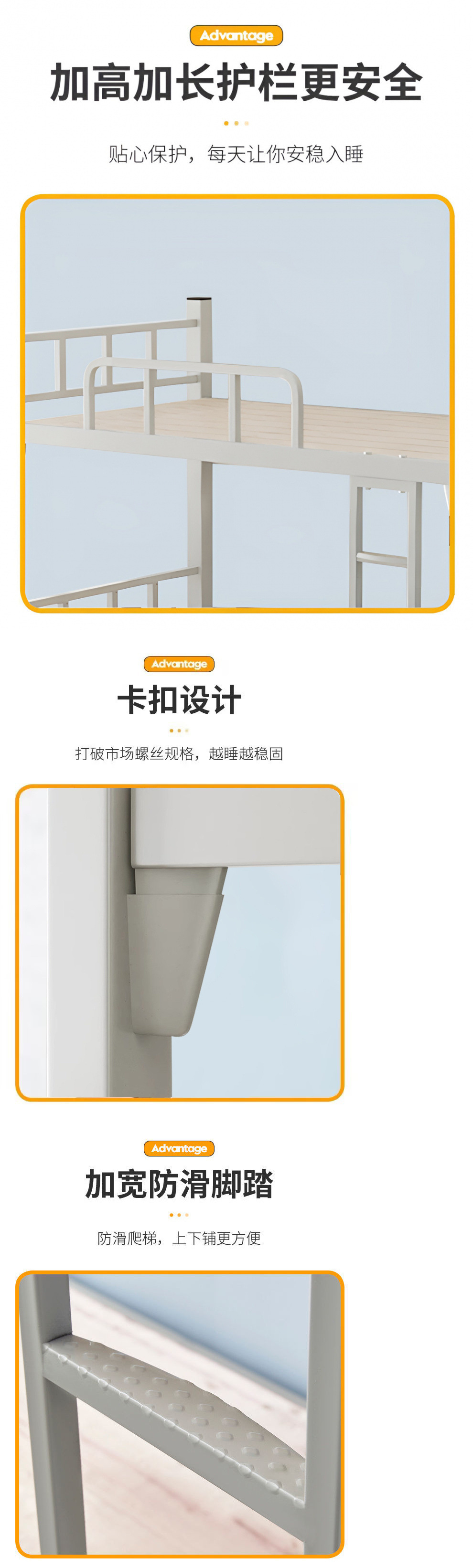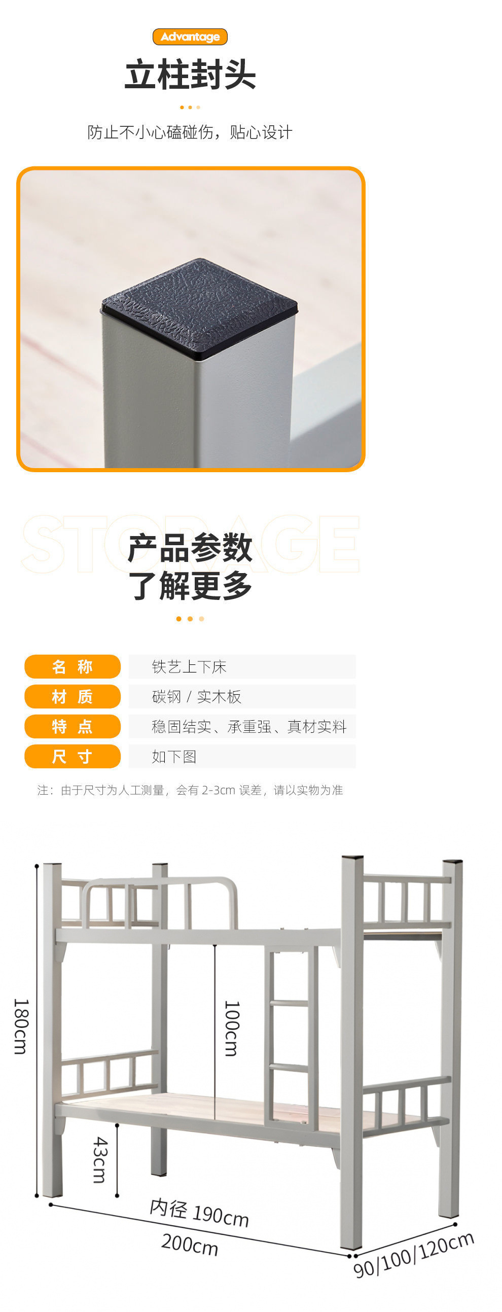 • 0.9m 너비* 2m 길이(단층 침대) 침대 보드 전체 포함