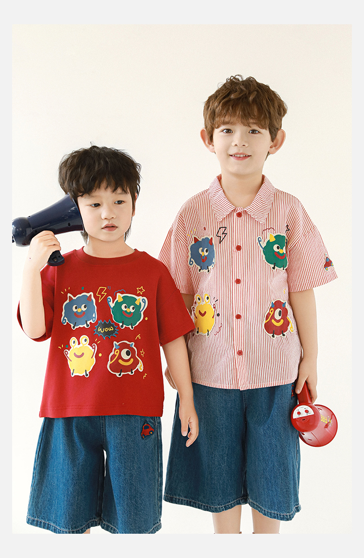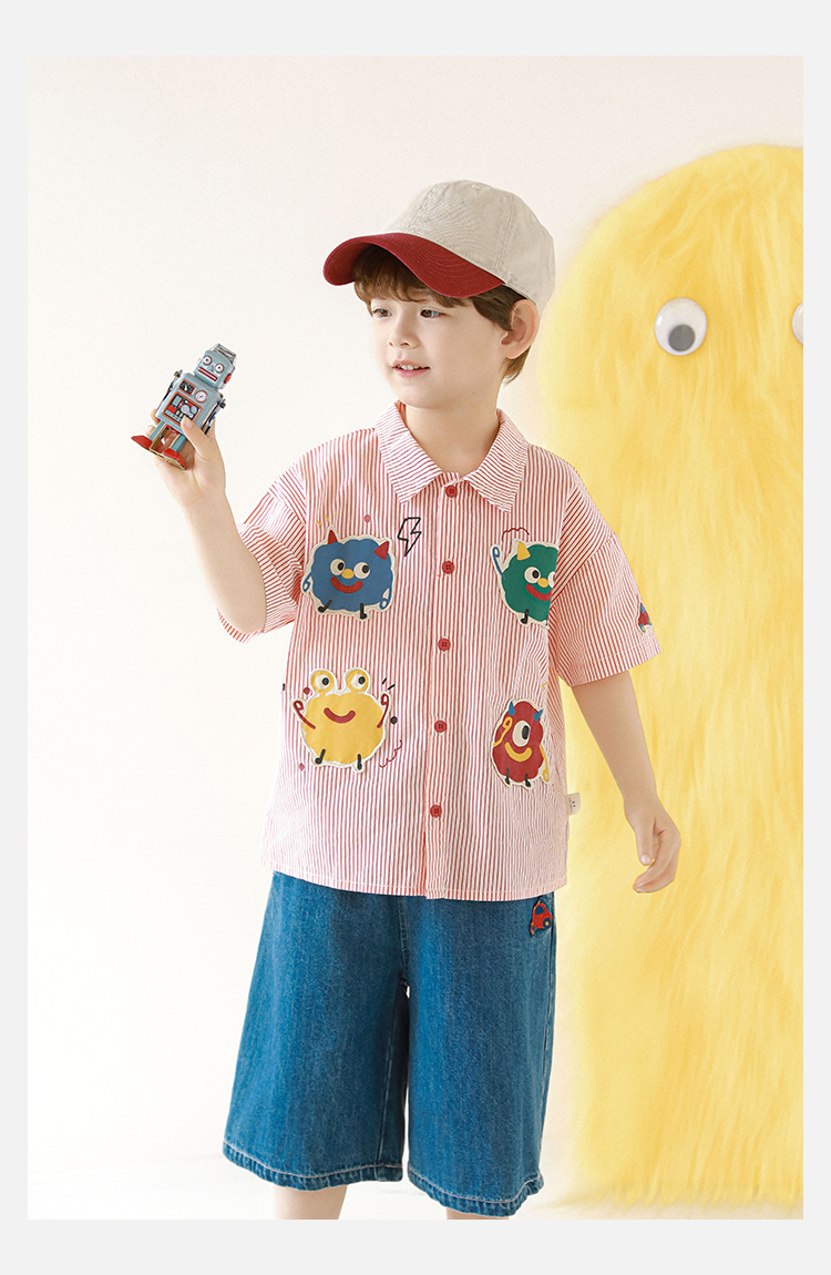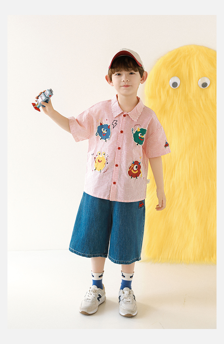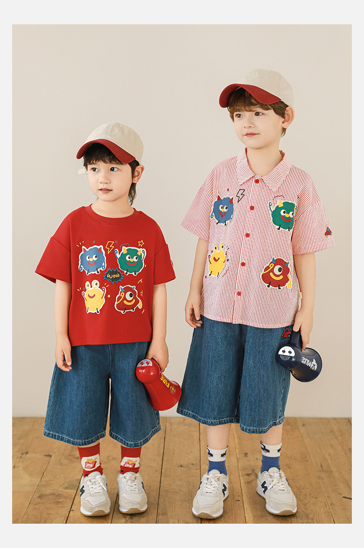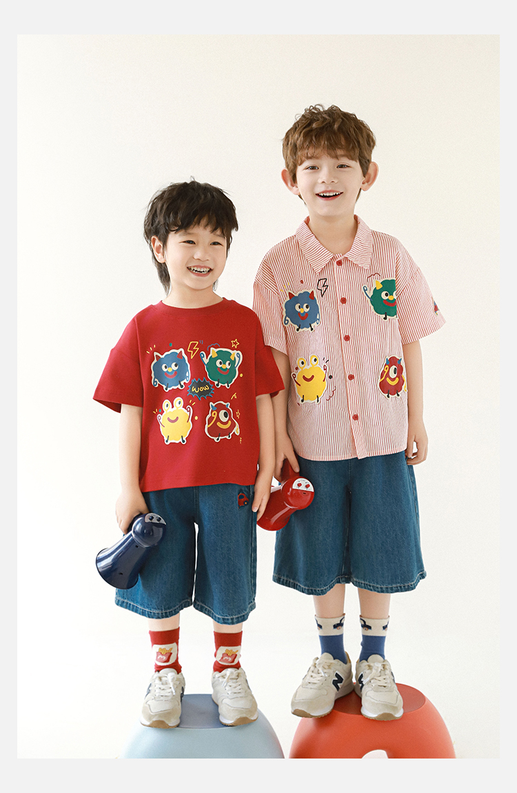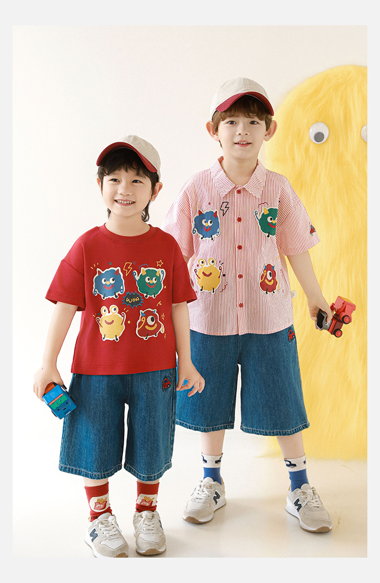 Wurib a boy 2025 새로운 반팔 크루 넥 몬스터 반팔 티셔츠 여름 느슨한 줄무늬 옷깃 셔츠
