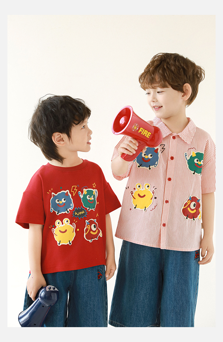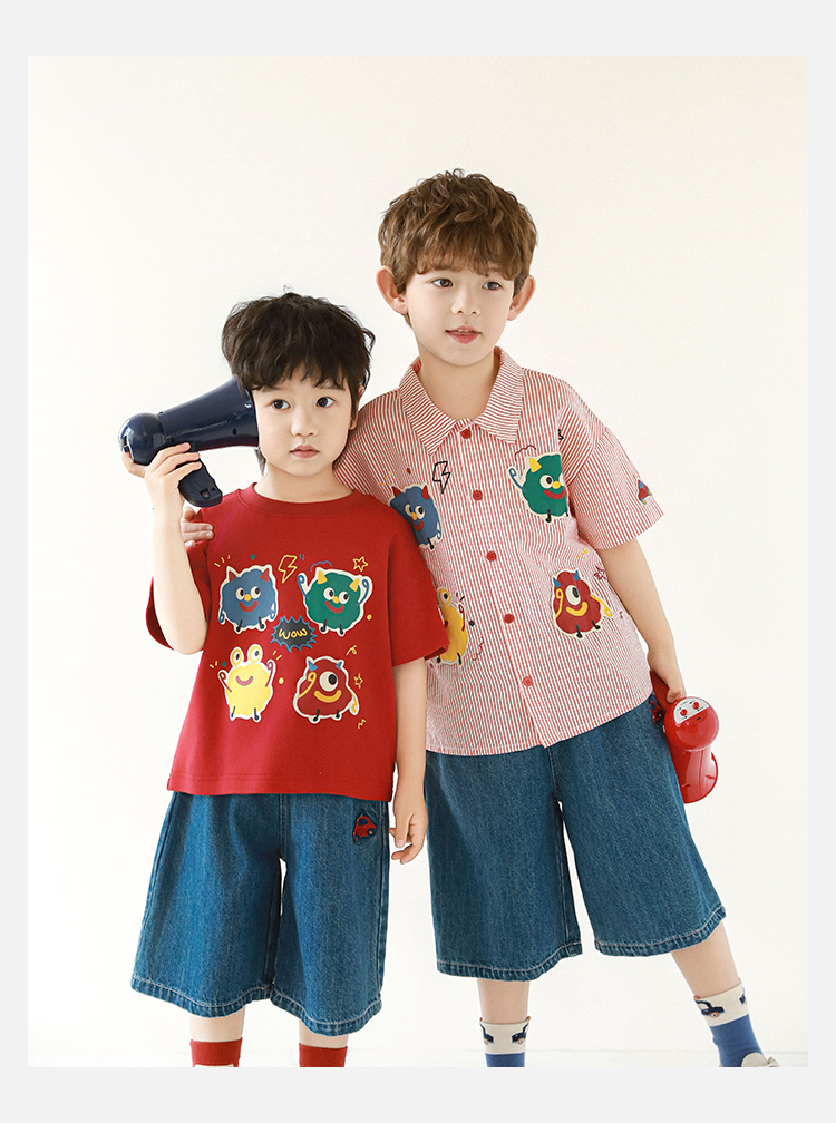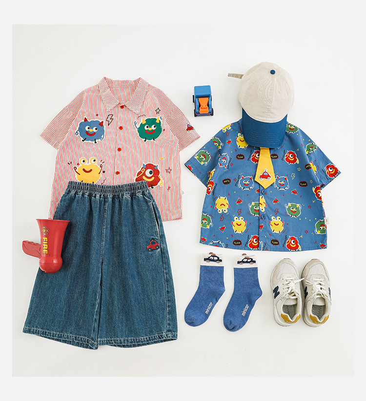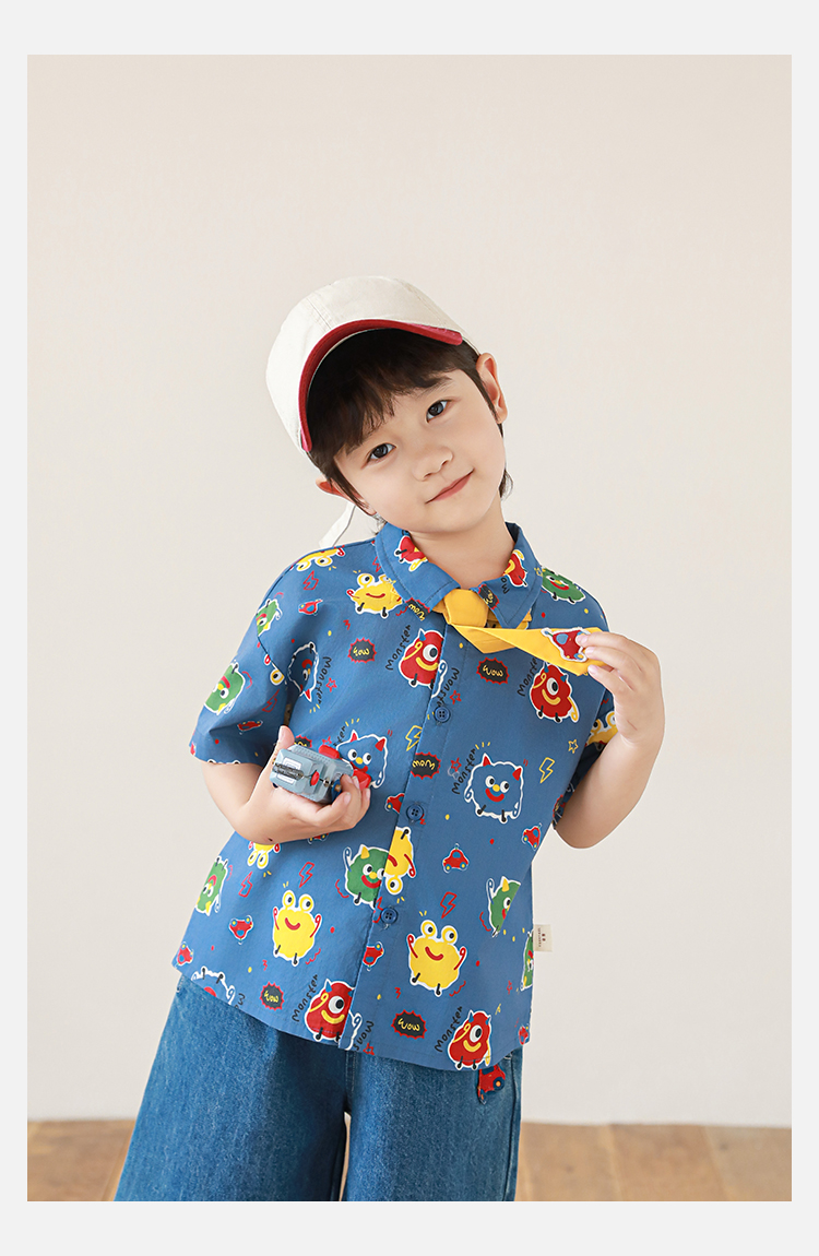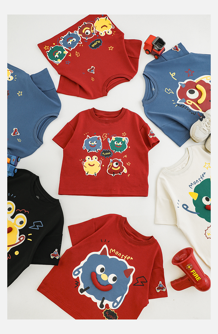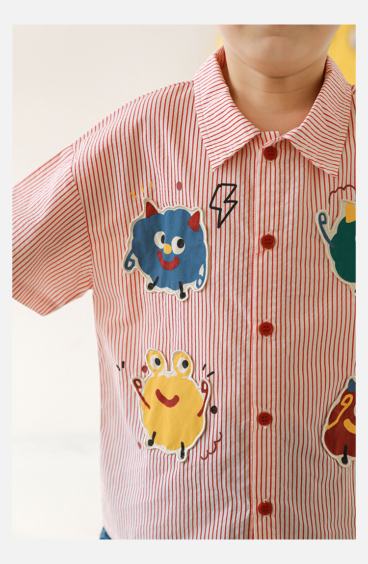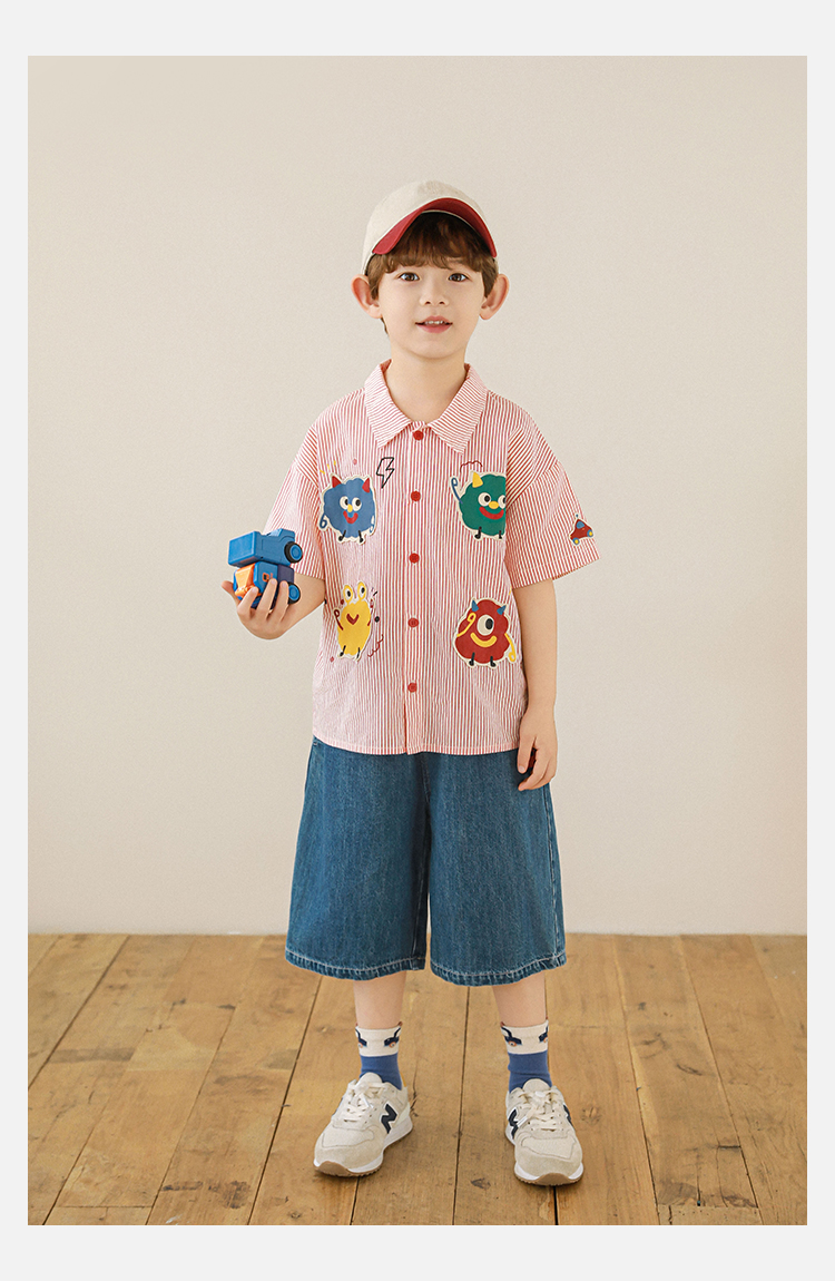 Wurib a boy 2025 새로운 반팔 크루 넥 몬스터 반팔 티셔츠 여름 느슨한 줄무늬 옷깃 셔츠