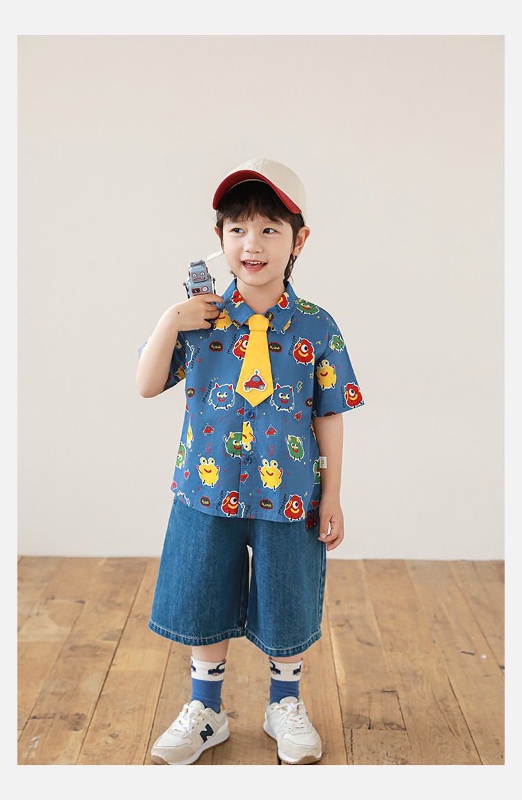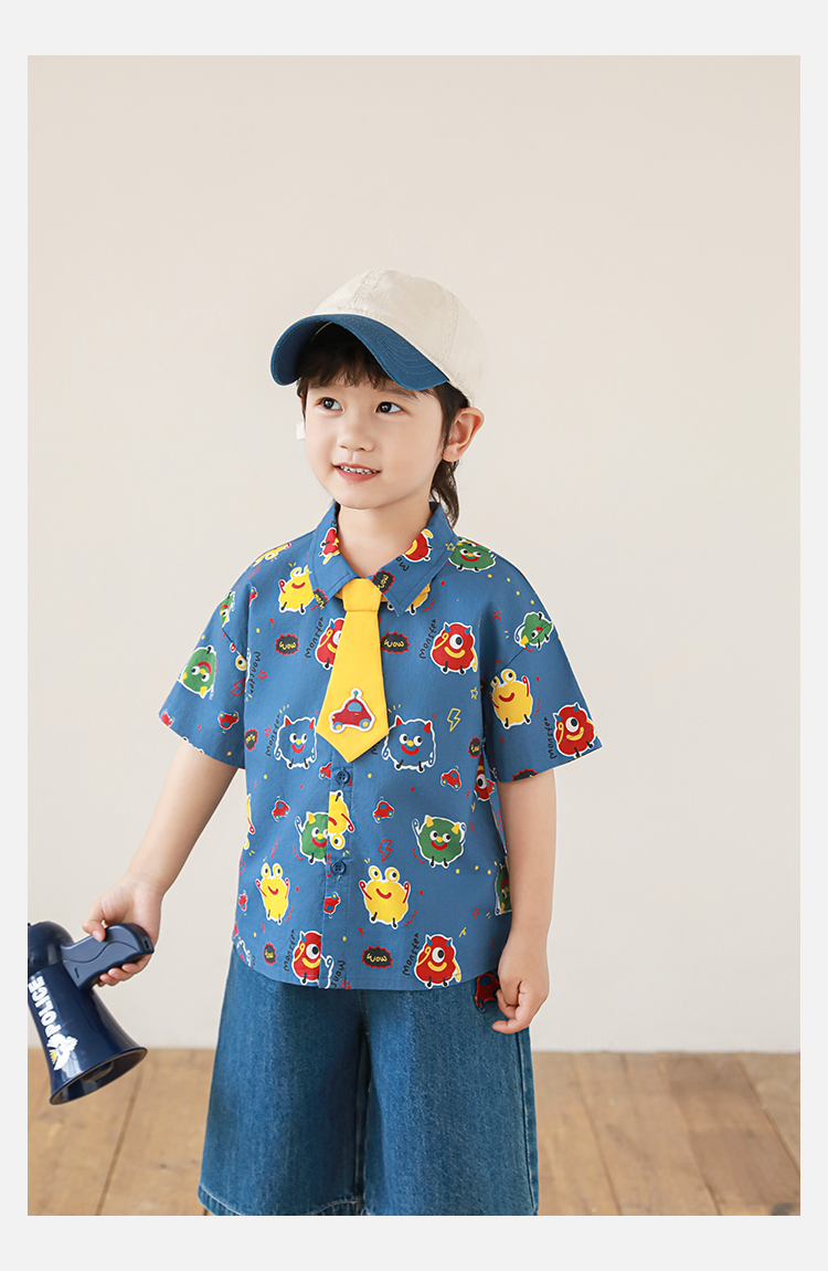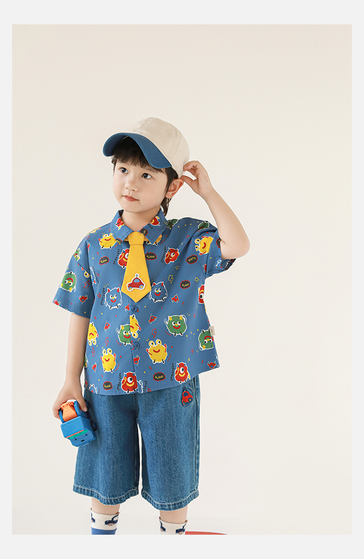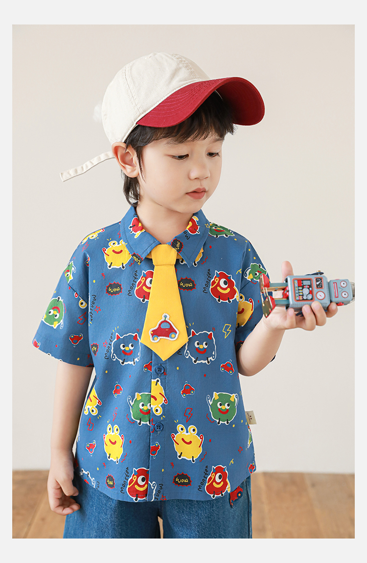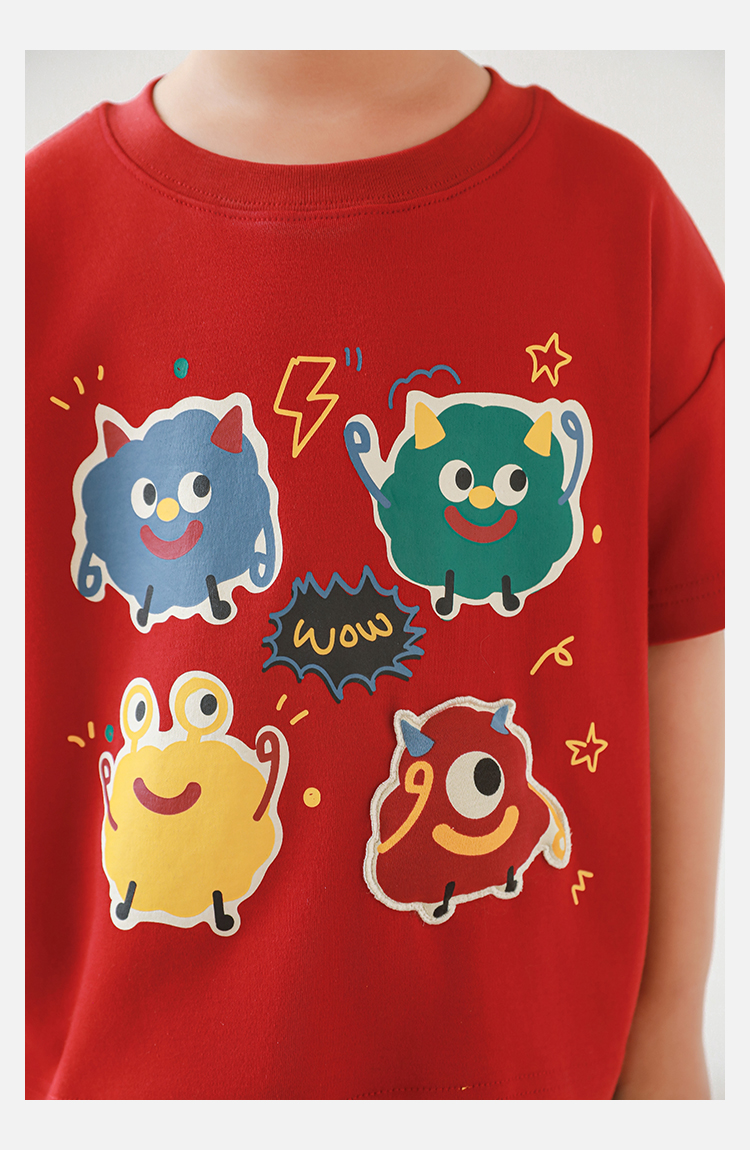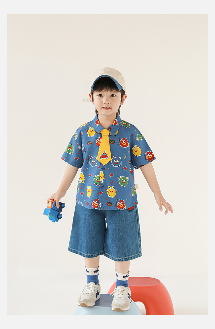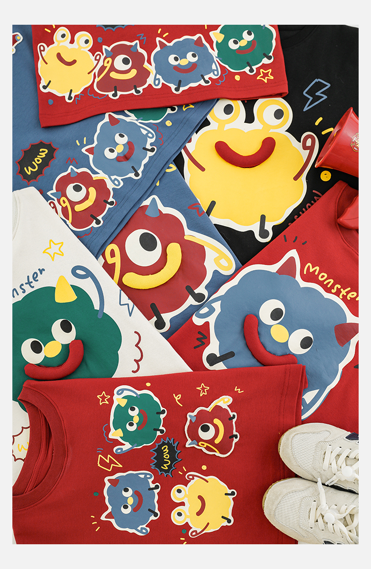 Wurib a boy 2025 새로운 반팔 크루 넥 몬스터 반팔 티셔츠 여름 느슨한 줄무늬 옷깃 셔츠