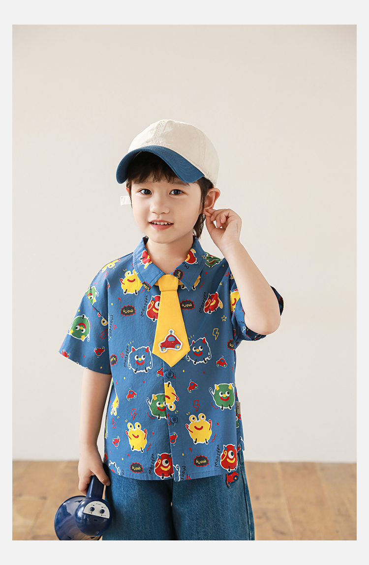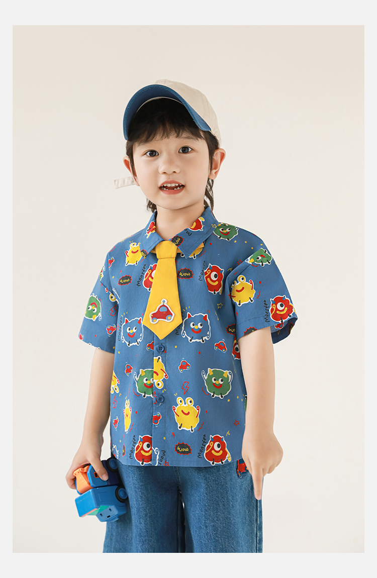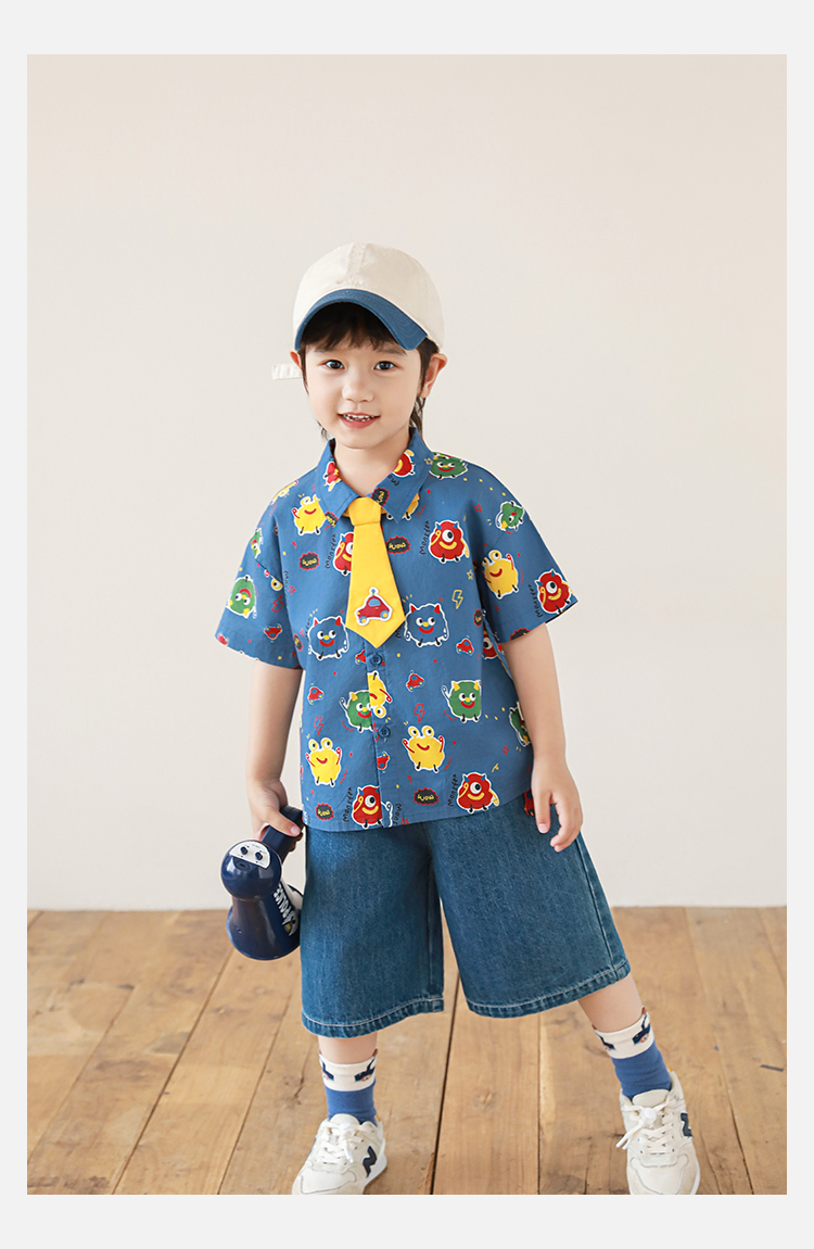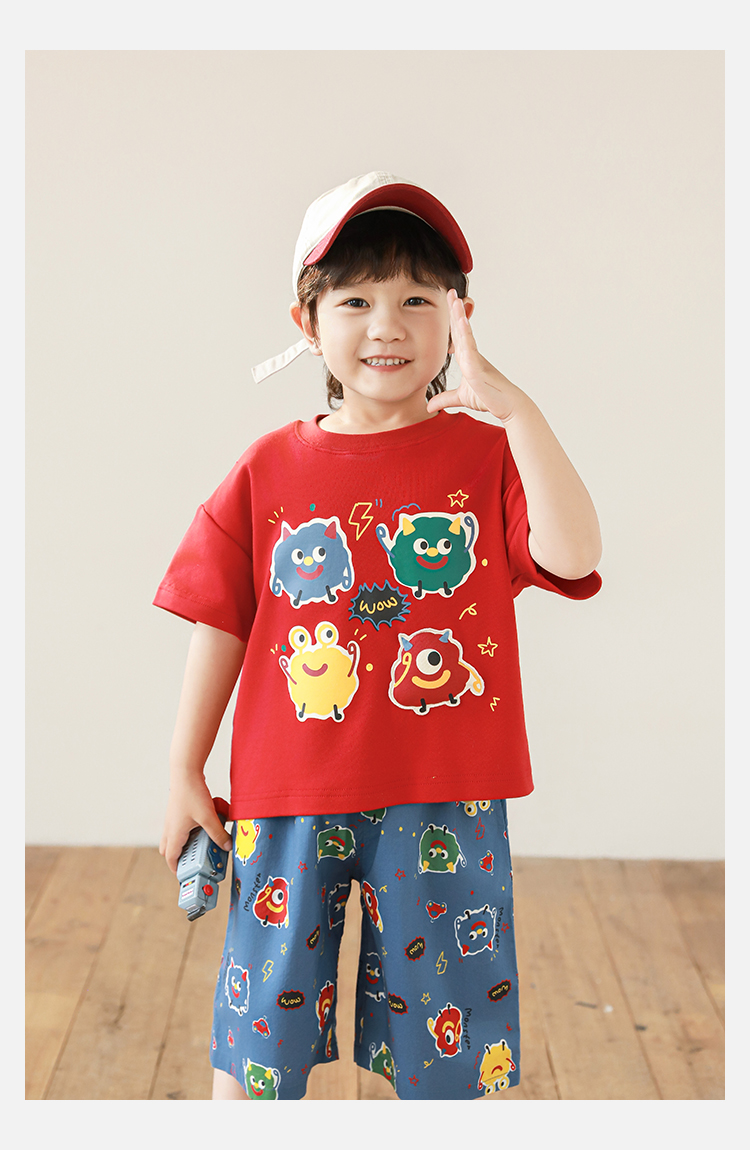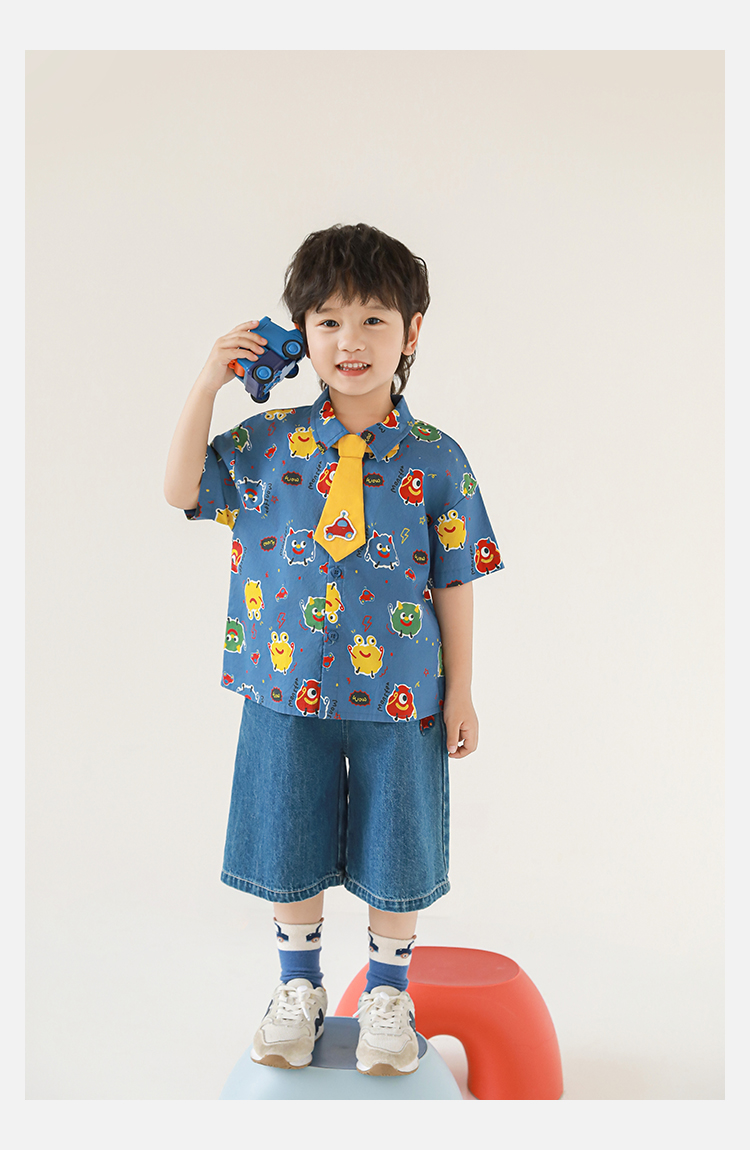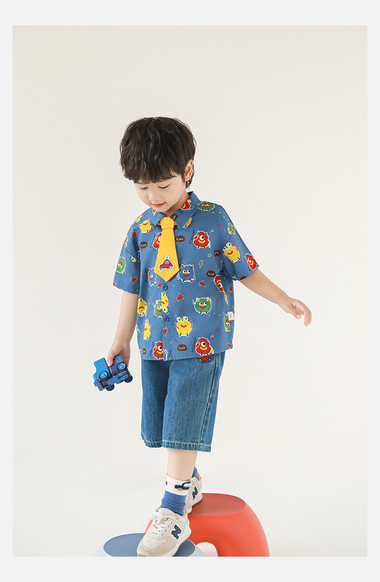 Wurib a boy 2025 새로운 반팔 크루 넥 몬스터 반팔 티셔츠 여름 느슨한 줄무늬 옷깃 셔츠