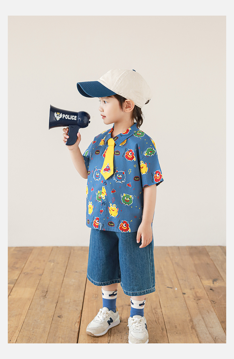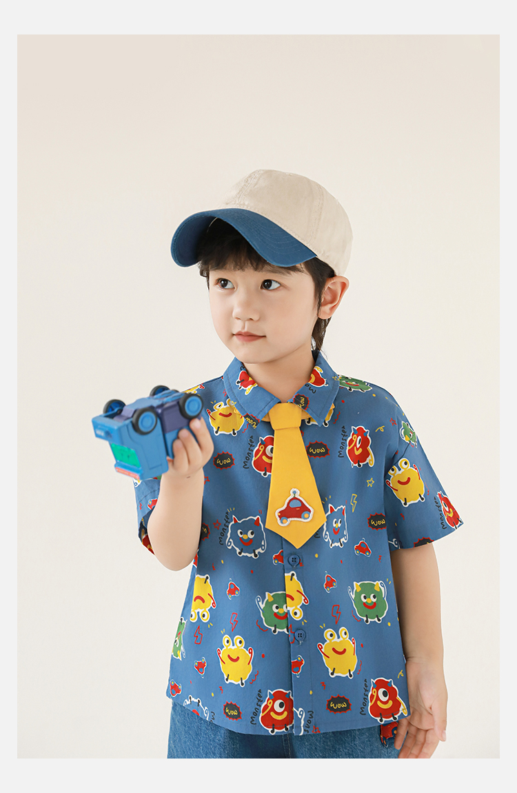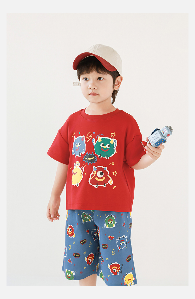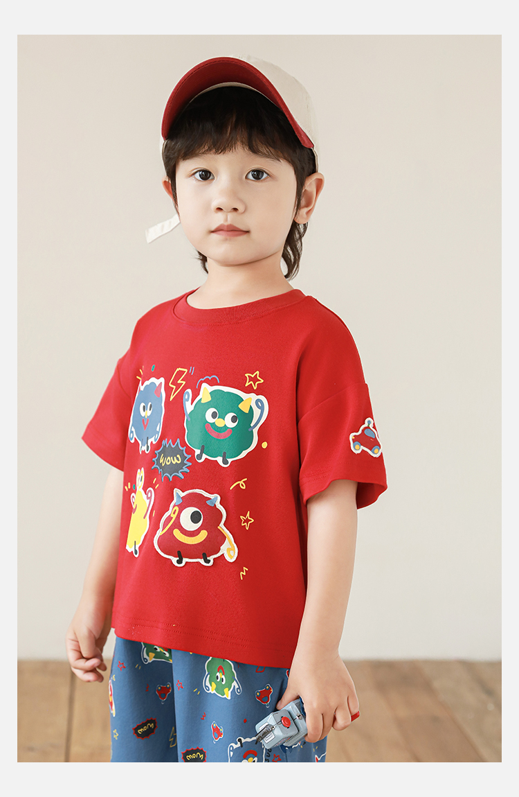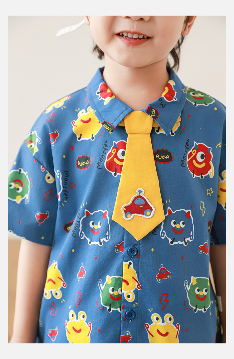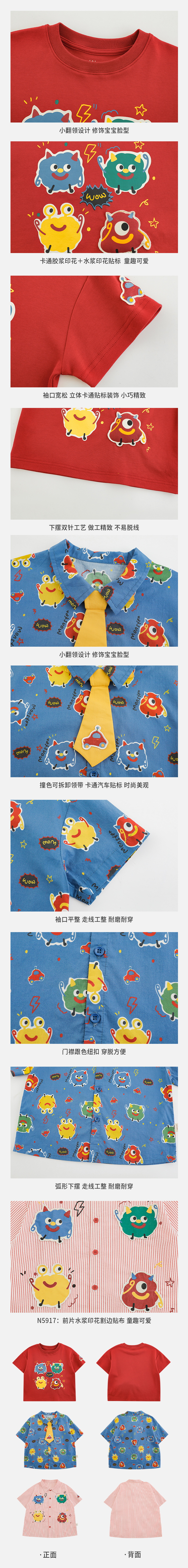 Wurib a boy 2025 새로운 반팔 크루 넥 몬스터 반팔 티셔츠 여름 느슨한 줄무늬 옷깃 셔츠