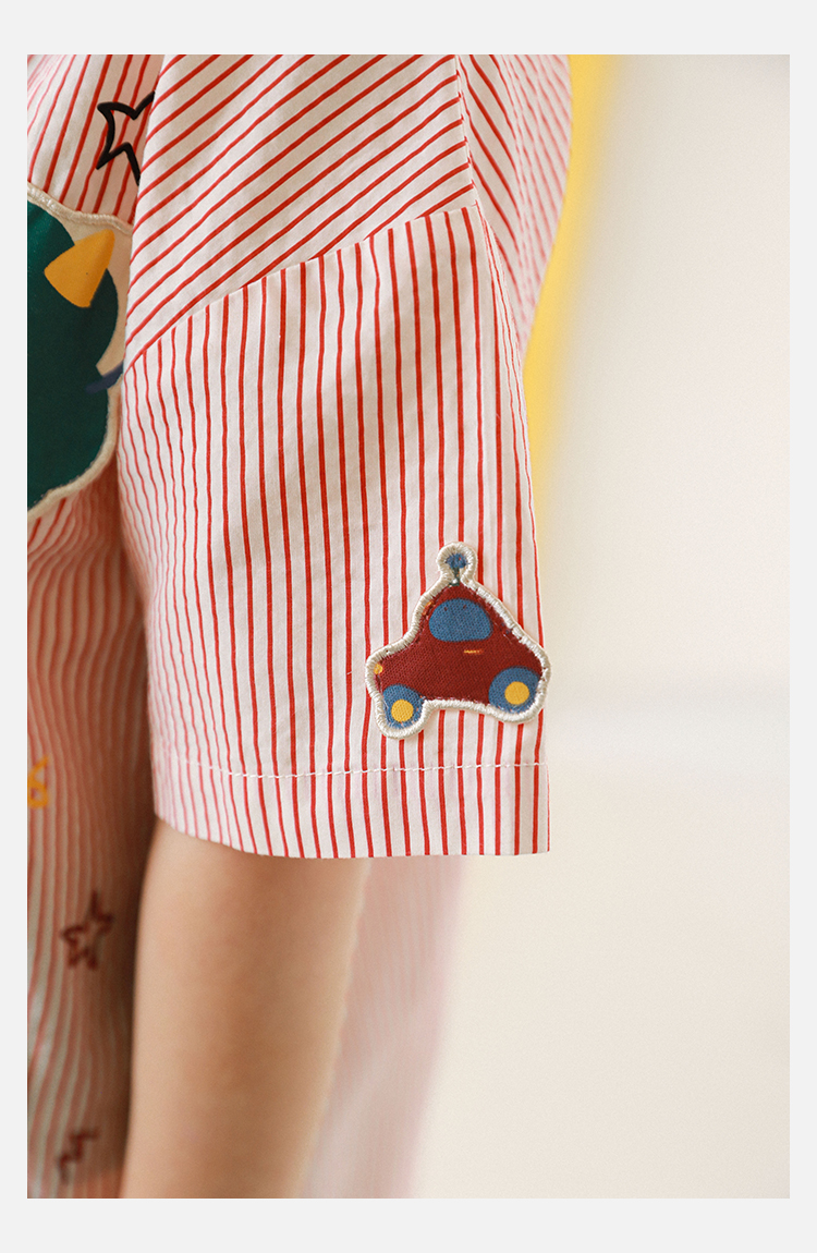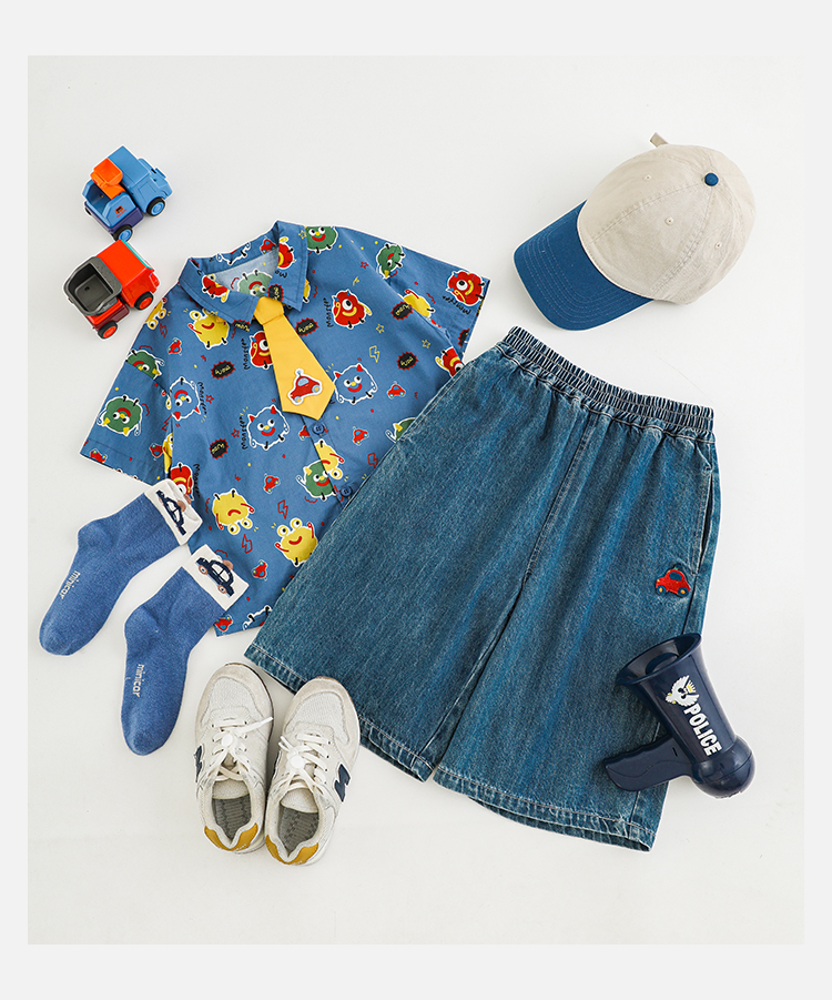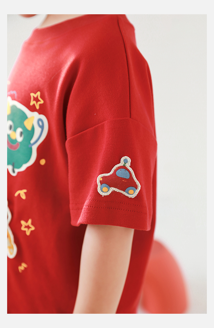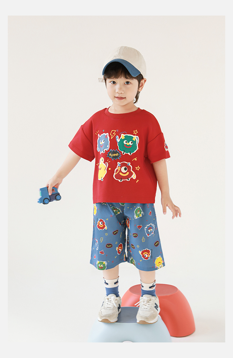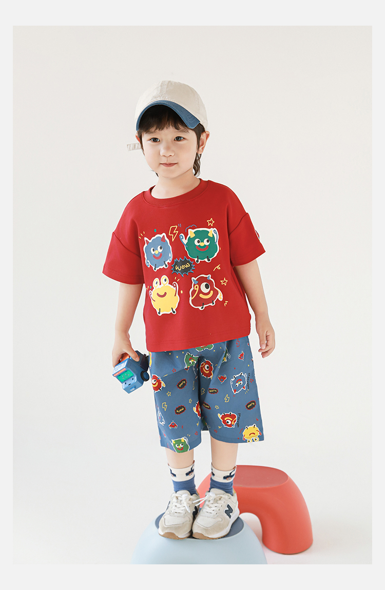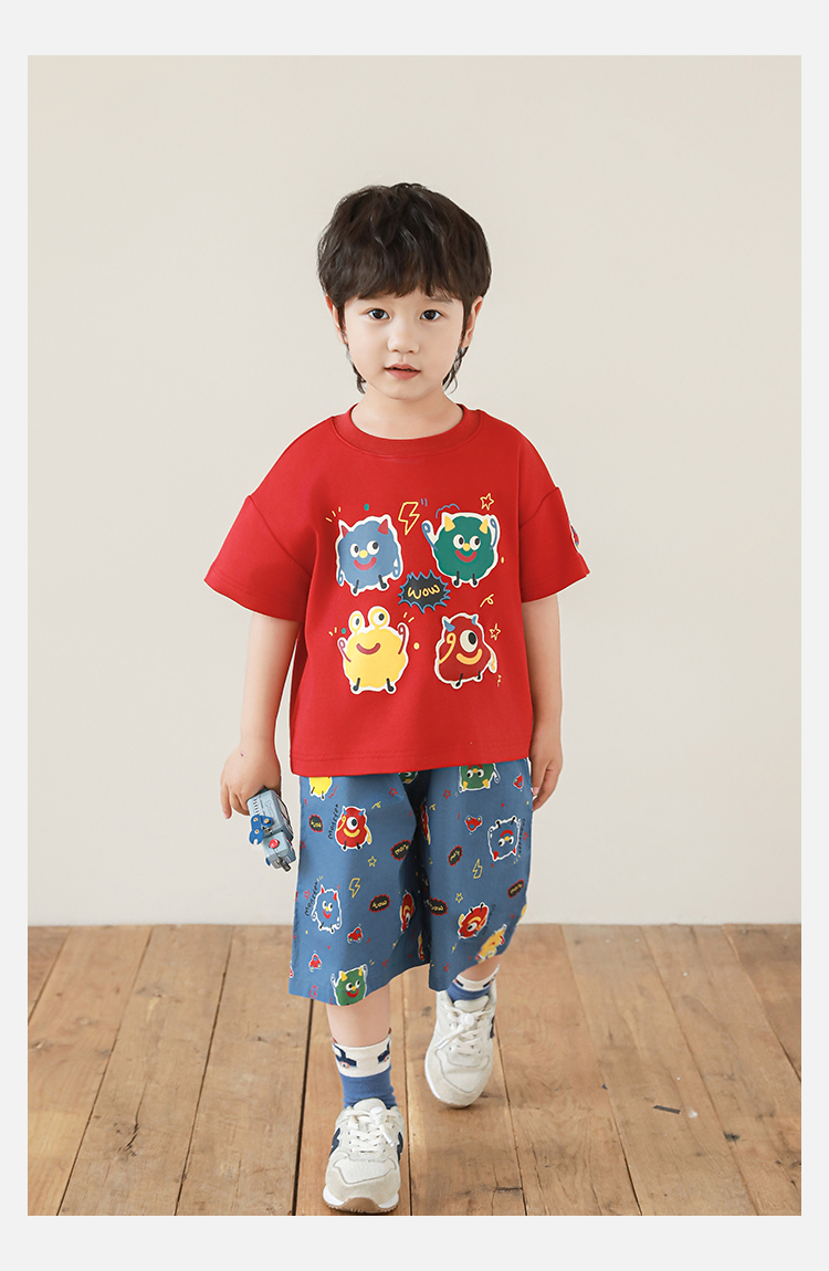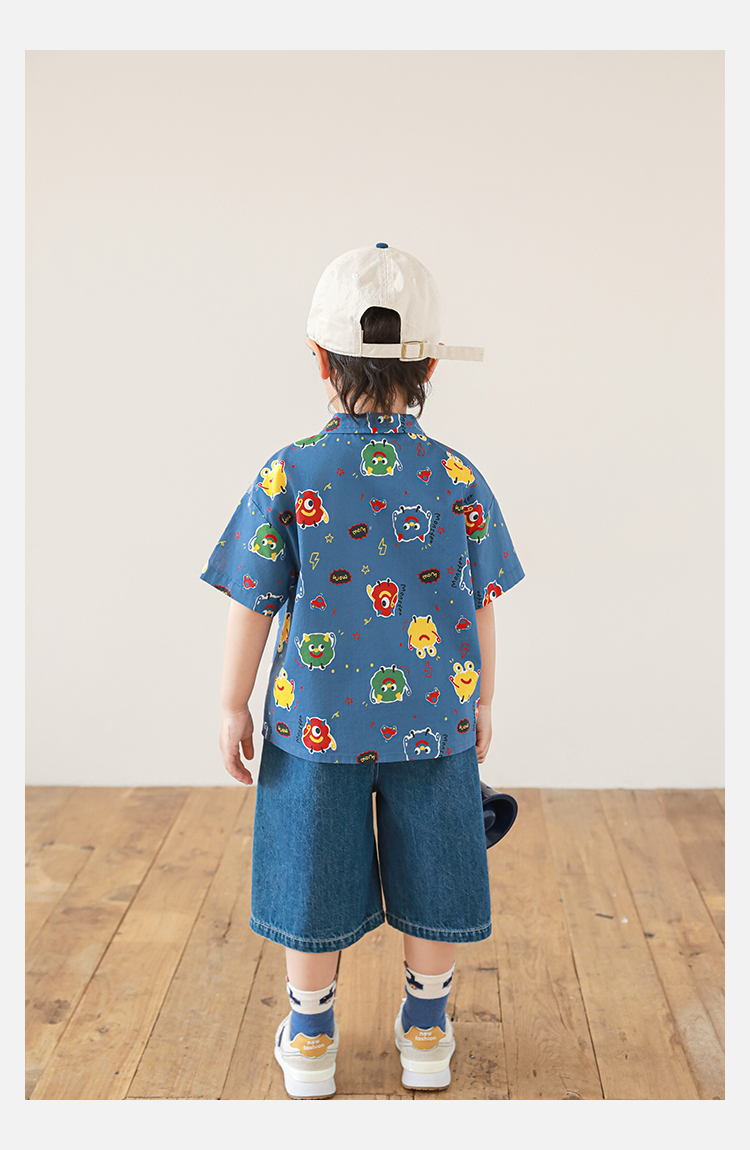 Wurib a boy 2025 새로운 반팔 크루 넥 몬스터 반팔 티셔츠 여름 느슨한 줄무늬 옷깃 셔츠