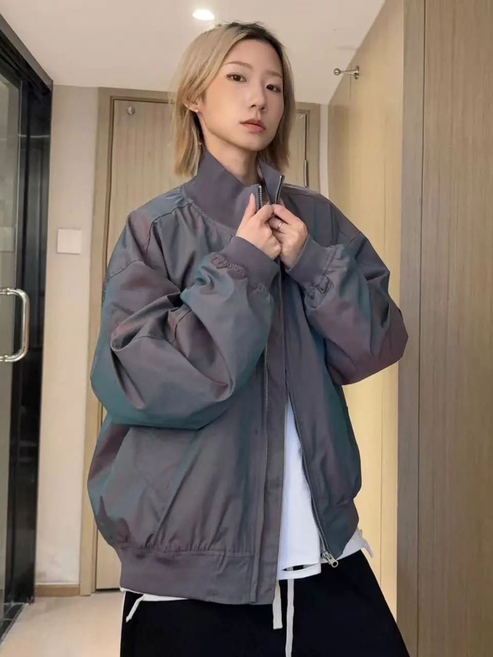 2025 봄과 가을 새로운 느슨한 대형 포켓 재킷 Instagram 스타일 트렌디 한 캐주얼 올 매치 컬러 변경 트렌디 한 커플 재킷스토어 가기
