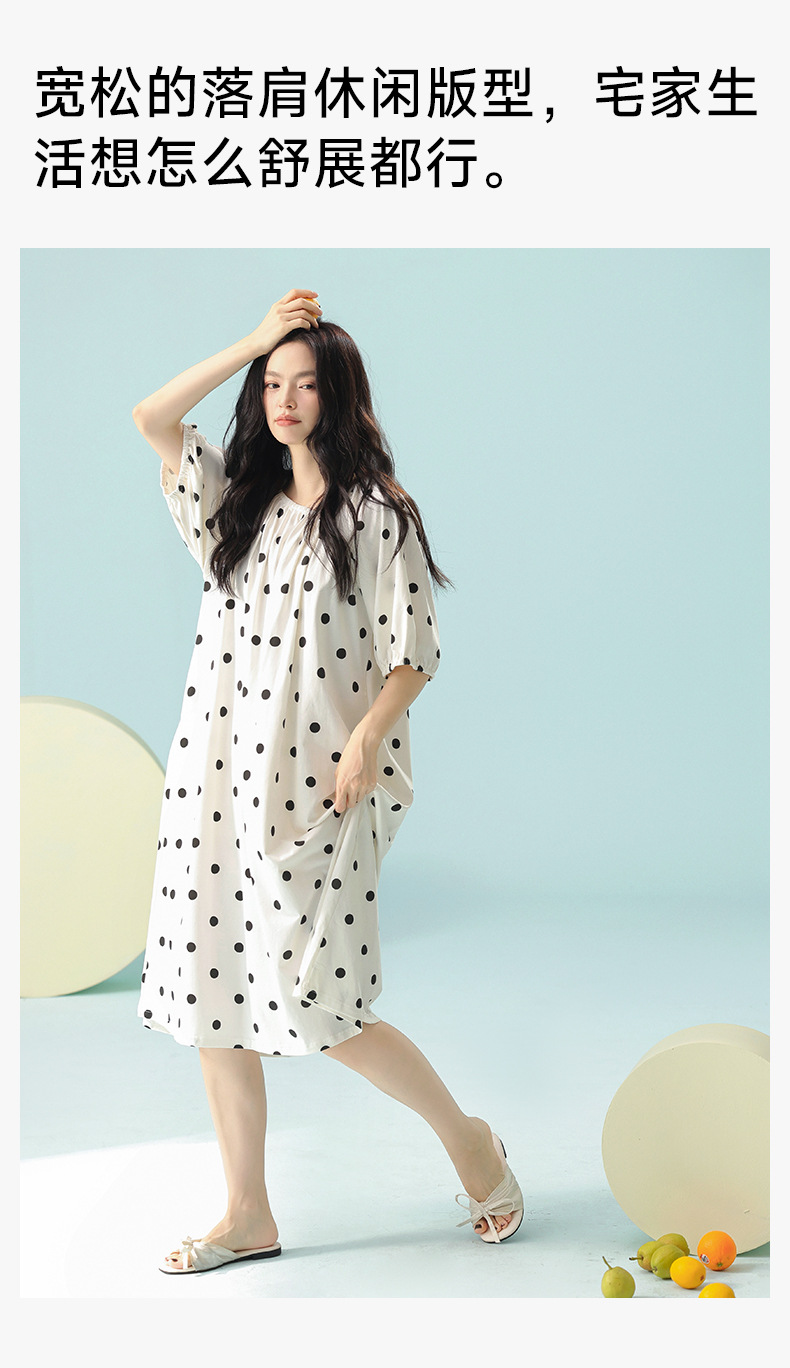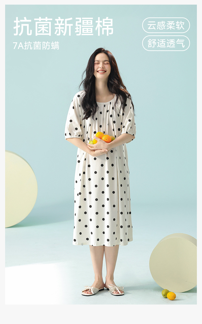 [항균성 신장면] A 급 순면 나이트가운 여성 여름 반팔 원피스 긴 홈 옷 플러스 사이즈 순수한 욕망스토어 가기