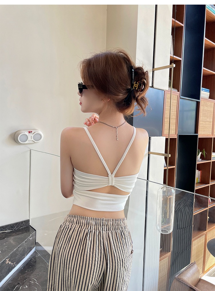 뜨거운 소녀 섹시한 할로우 아름다운 서스펜더 가슴 패드 카미 솔 여성의 여름 백리스 베이스 내부 착용 짧은 정상