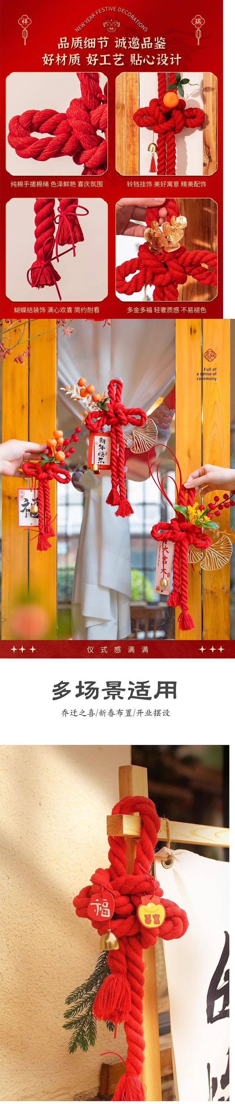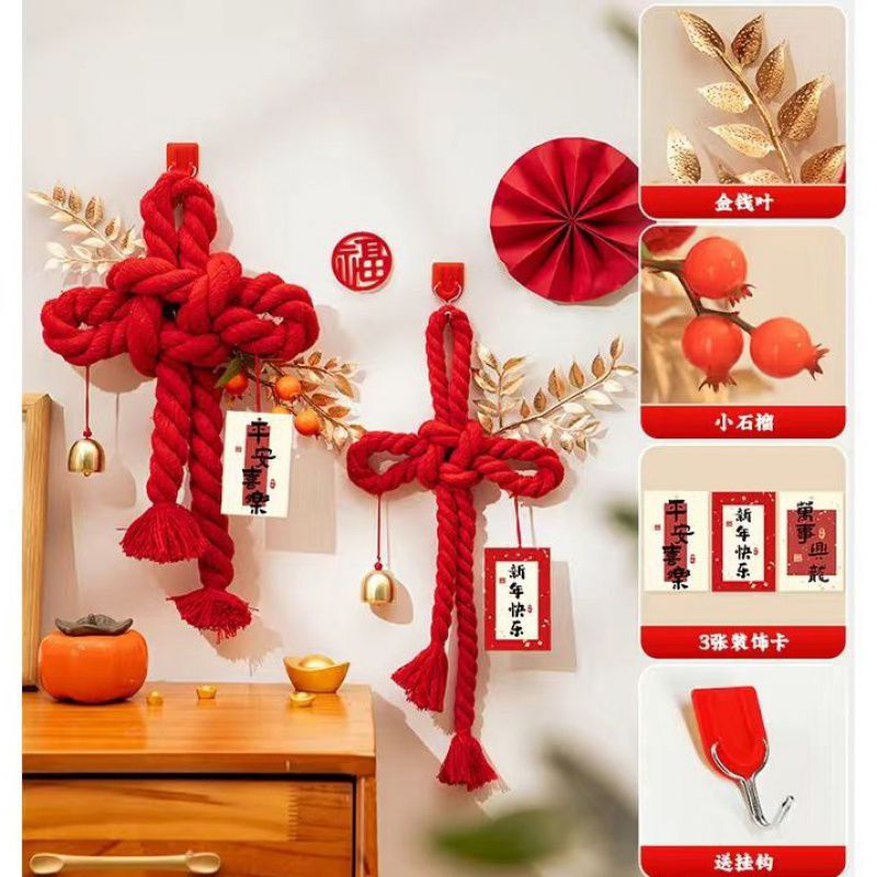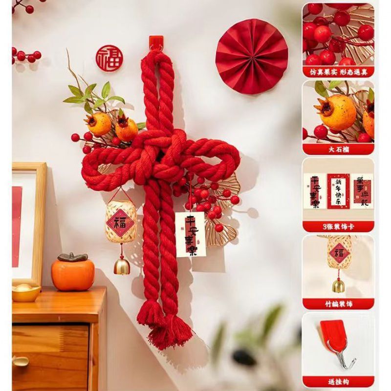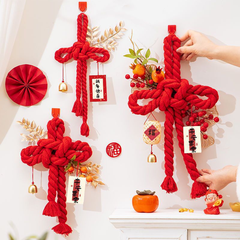 벽 매달려 중국 매듭 결혼식 손 짠 문 매달려 2024 년 새해 거실 장식 새로운 자오 Zhiwu
