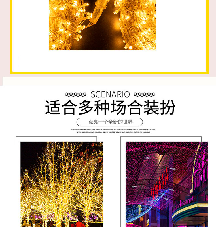 • 200m [플러그인 모델] 두꺼운 와이어, 업그레이드되고 밝아진 램프 비드, 남성 및 여성 모델