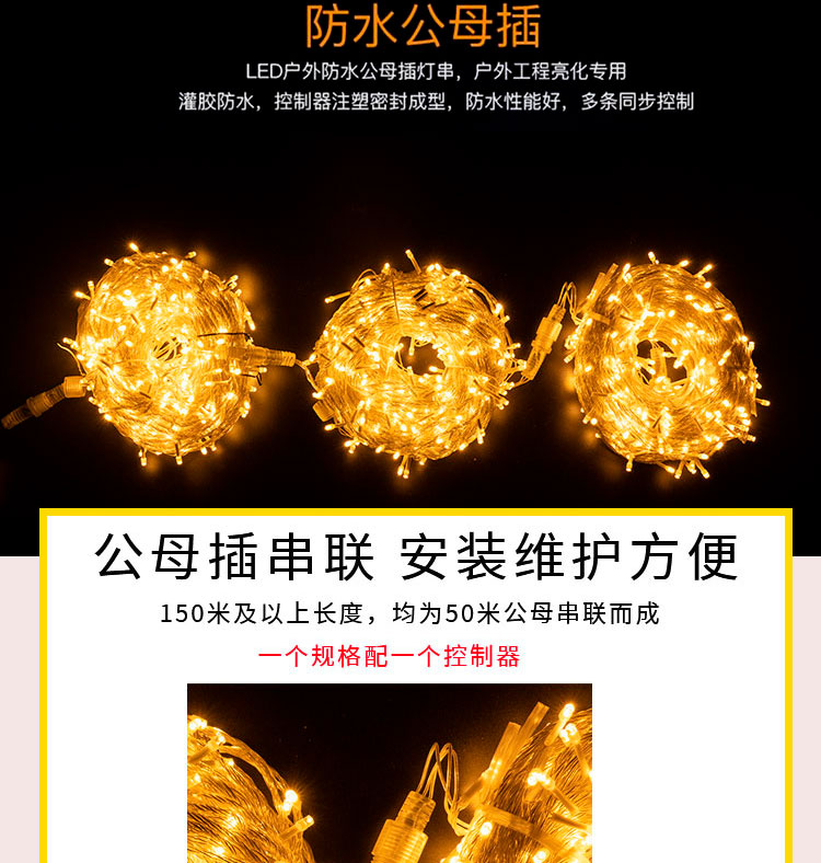 • 150m [플러그인 모델] 두꺼운 와이어, 업그레이드되고 밝아진 램프 비드, 남성 및 여성 모델