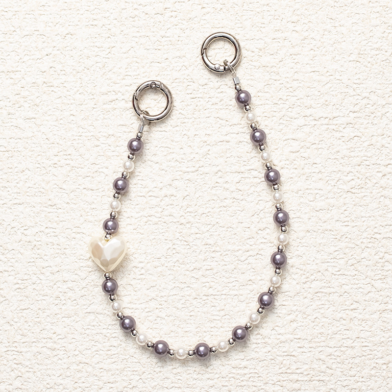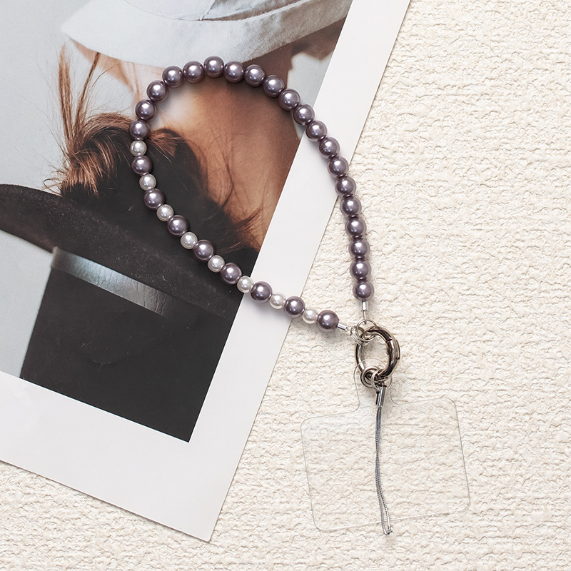 회색 보라색 하이 엔드 진주 안티 손실 체인 휴대 전화 체인 짧은 하이 엔드 느낌 새로운 휴대 전화 로프에 바람 그물 붉은 느낌