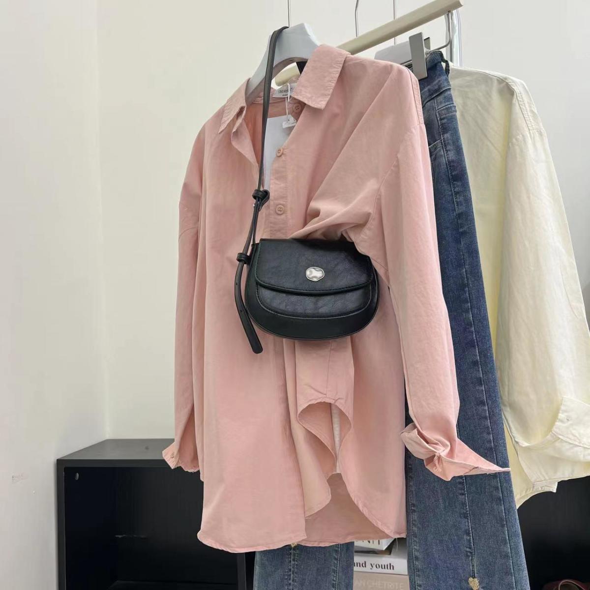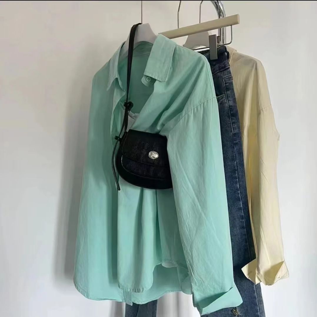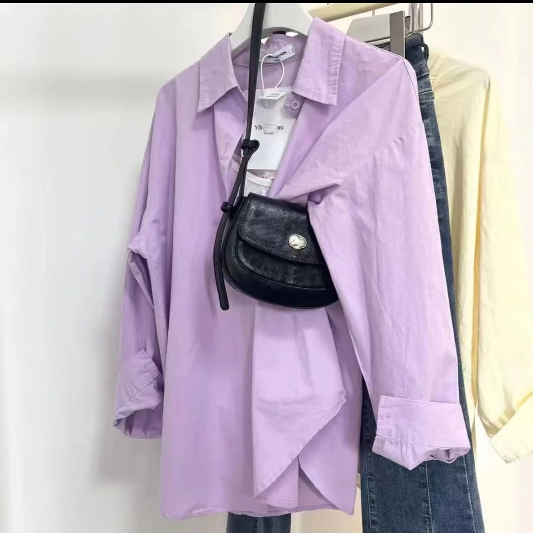 보라색 셔츠 패션 느슨한 간단한 스택 내부 옷깃 긴 소매 셔츠 여성의 태양 보호 셔츠 2025 이른 봄 새로운스토어 가기