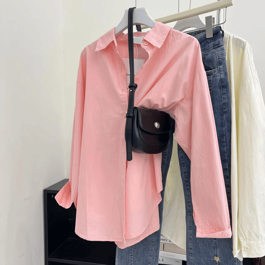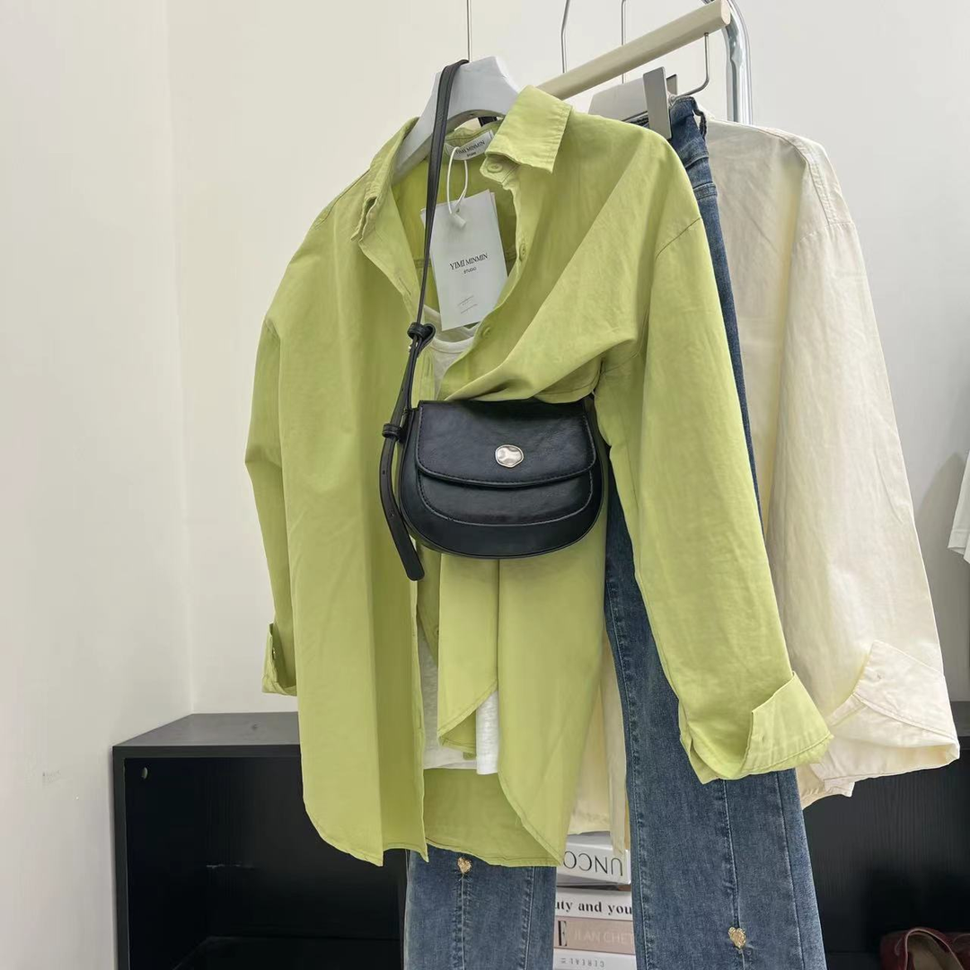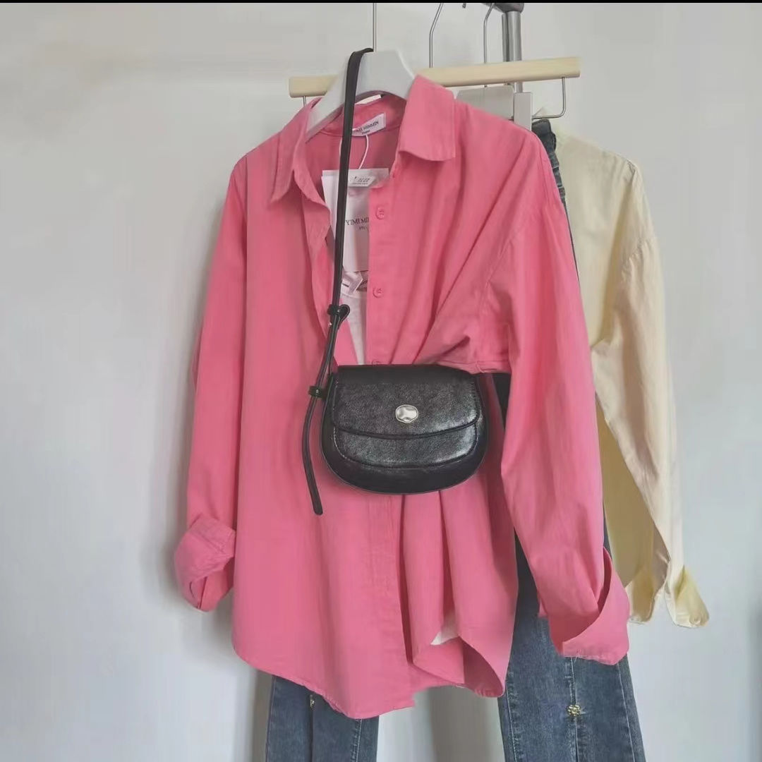 보라색 셔츠 패션 느슨한 간단한 스택 내부 옷깃 긴 소매 셔츠 여성의 태양 보호 셔츠 2025 이른 봄 새로운스토어 가기
