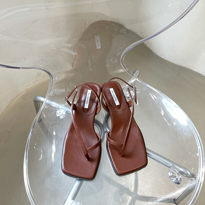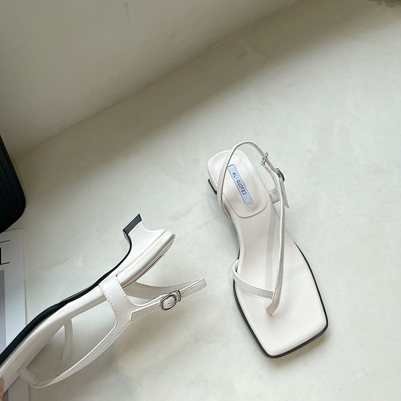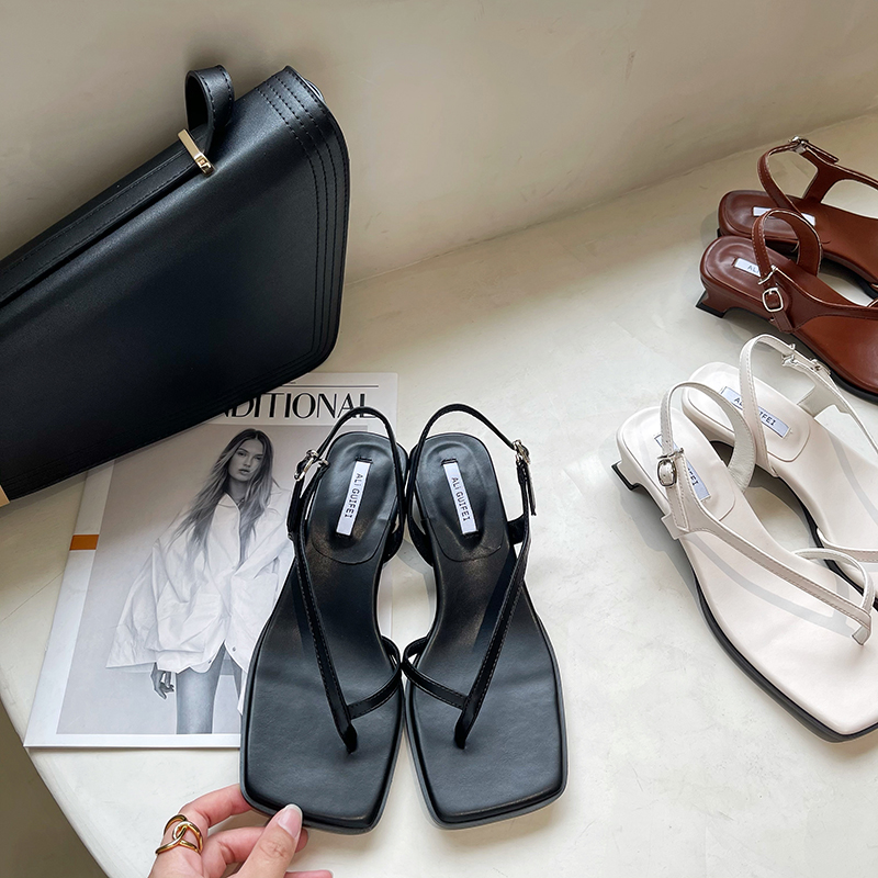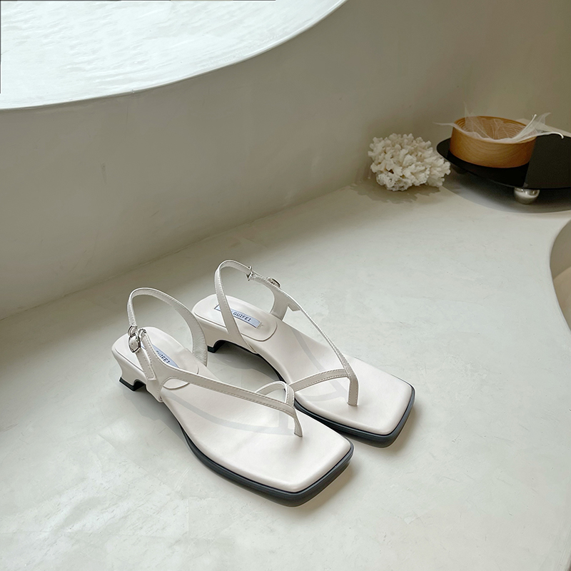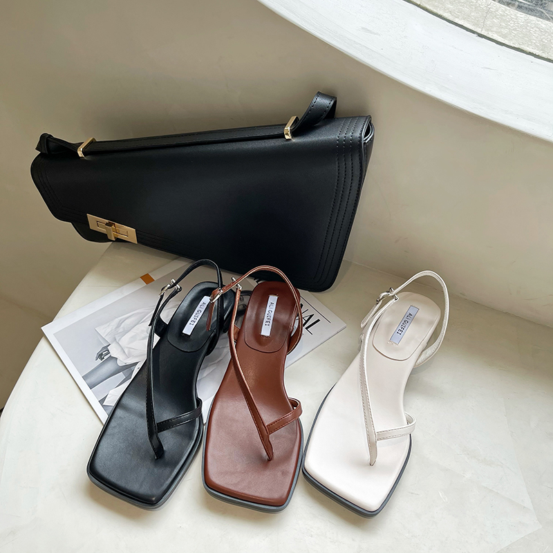 샌들 2025 새로운 여자 여름 새끼 고양이 클램프 토 스퀘어 헤드 하이 엔드 한국 틈새 레트로 여성 신발
