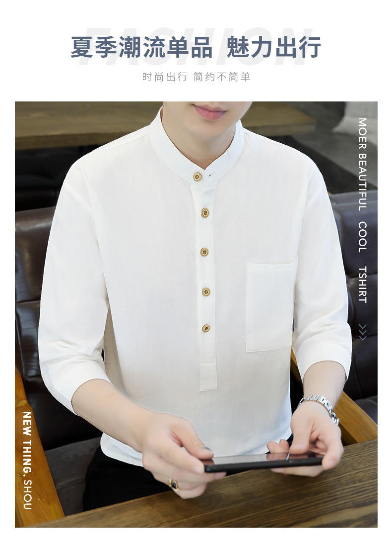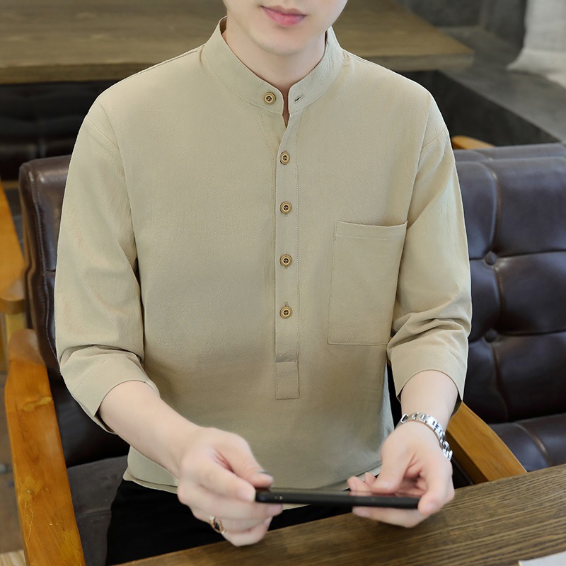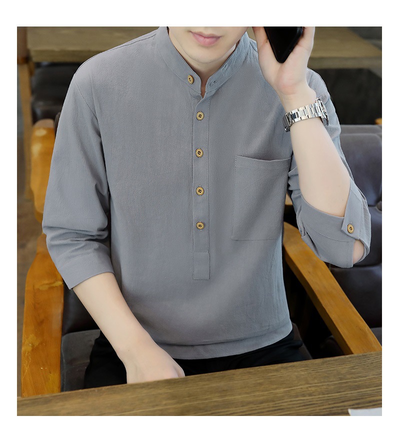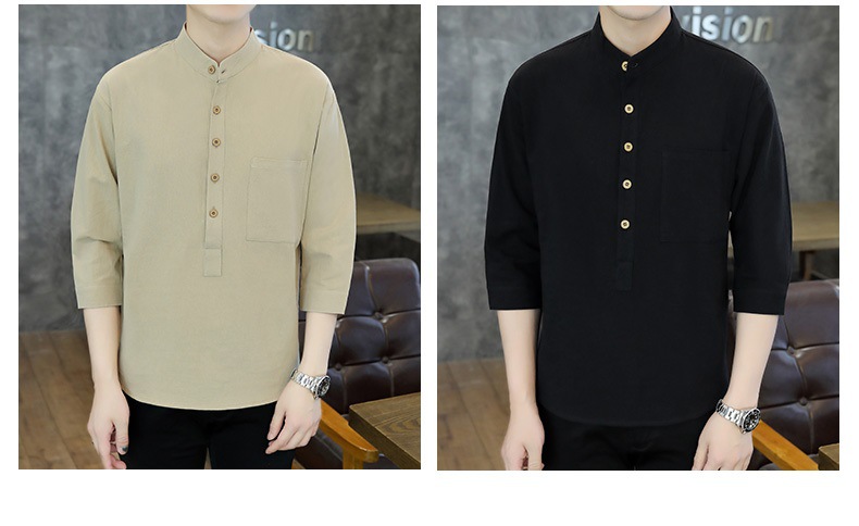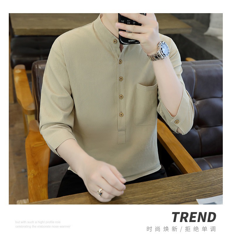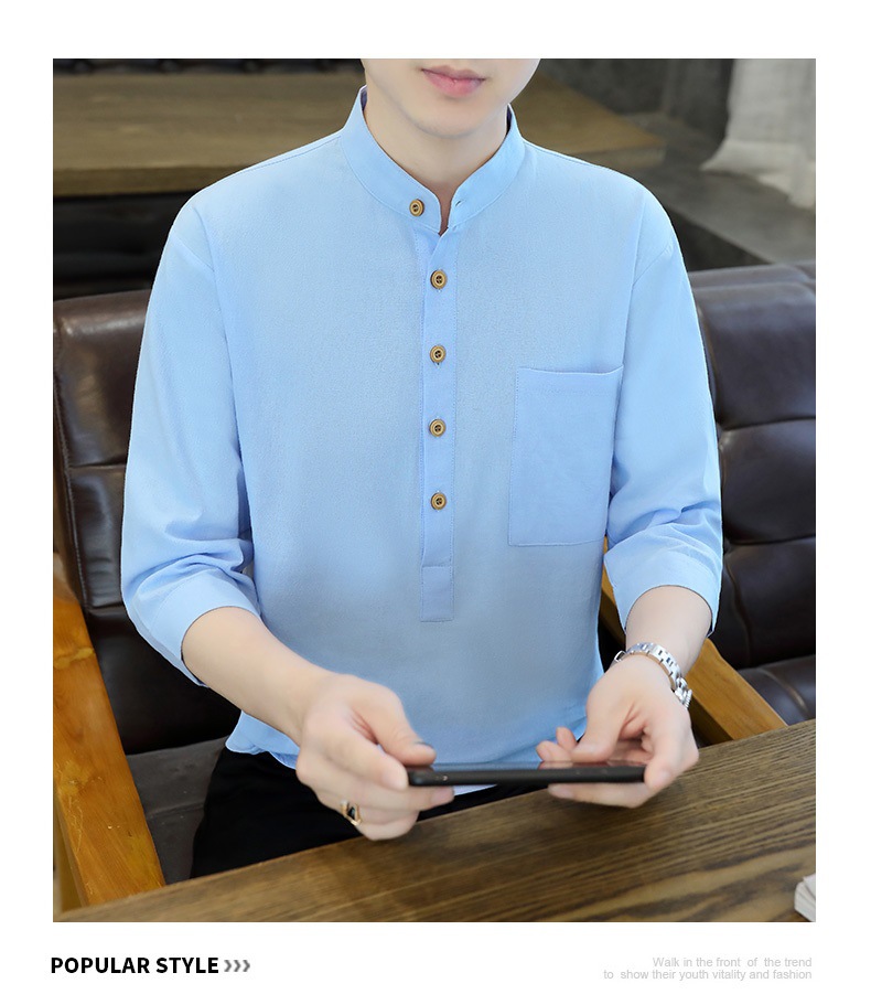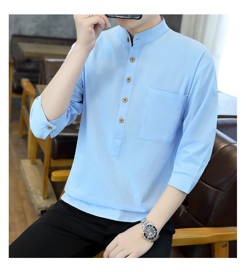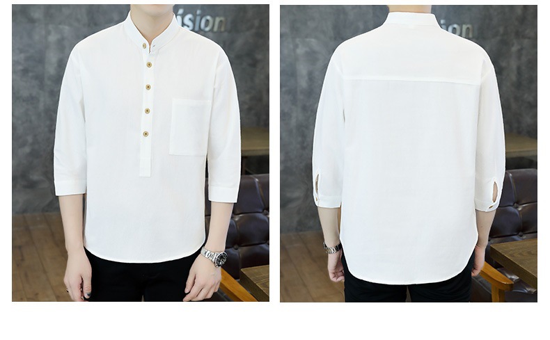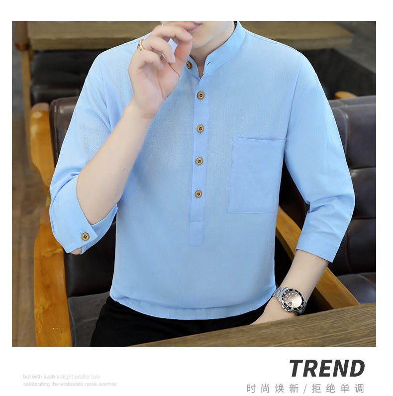 7 점 슬리브 셔츠 남자 여름 한국 패셔너블 남자 리넨 반팔 셔츠 중반팔 코튼 리넨 남자 셔츠
