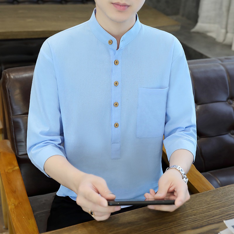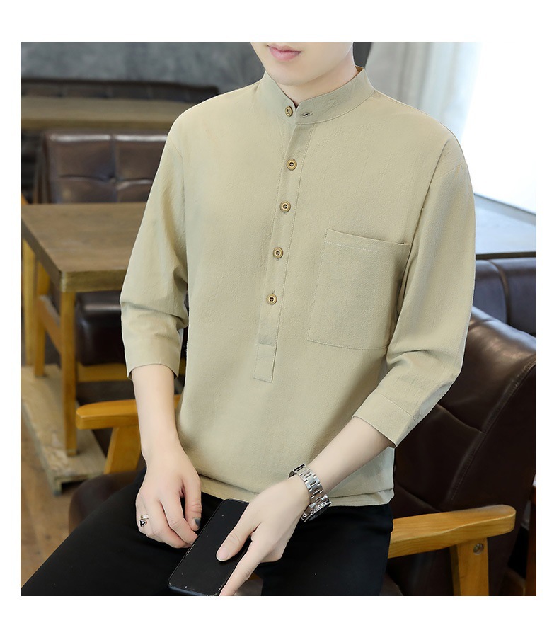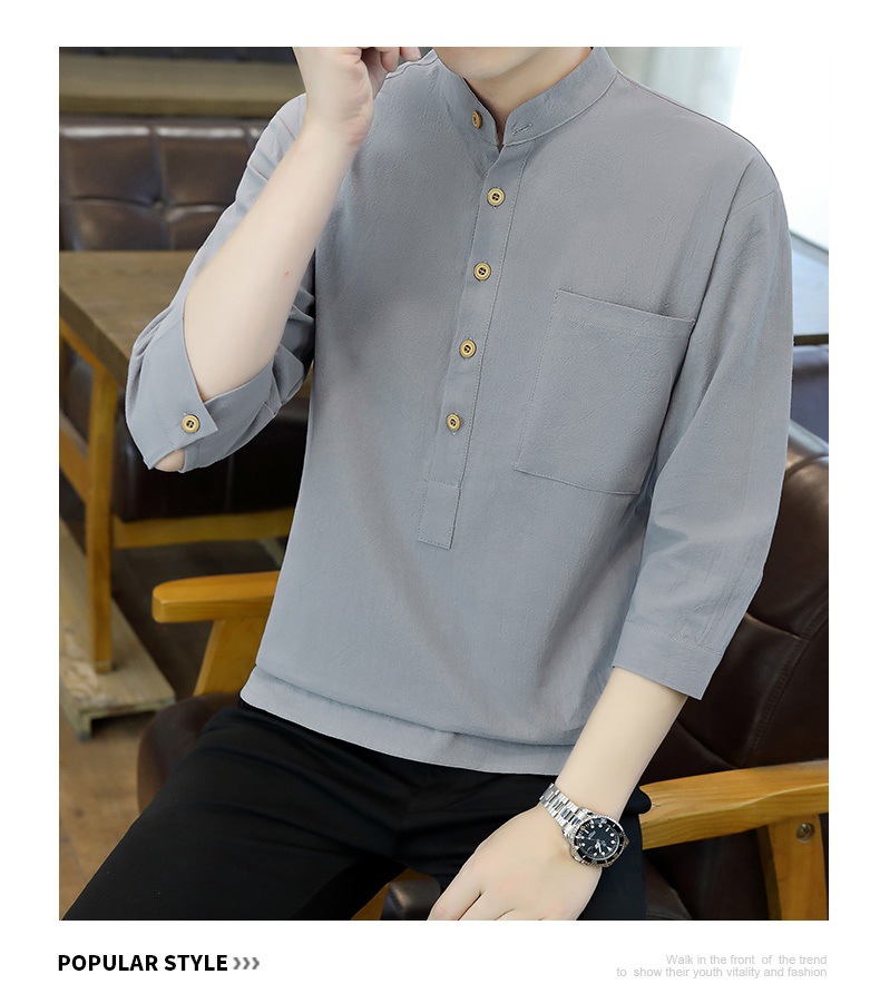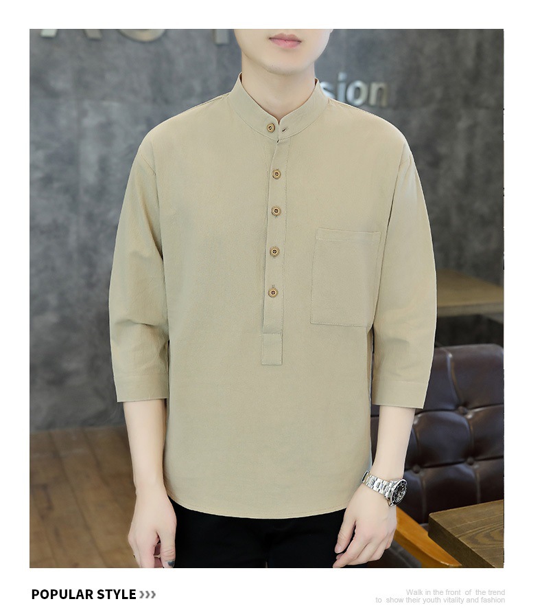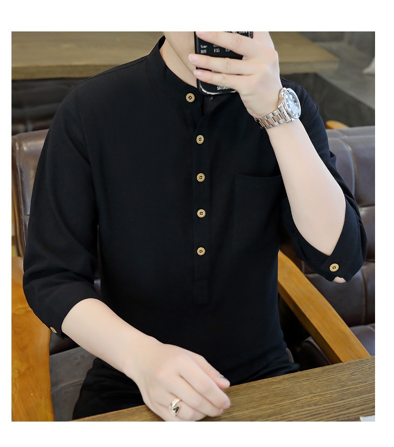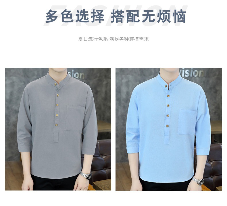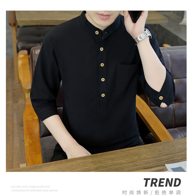 7 점 슬리브 셔츠 남자 여름 한국 패셔너블 남자 리넨 반팔 셔츠 중반팔 코튼 리넨 남자 셔츠