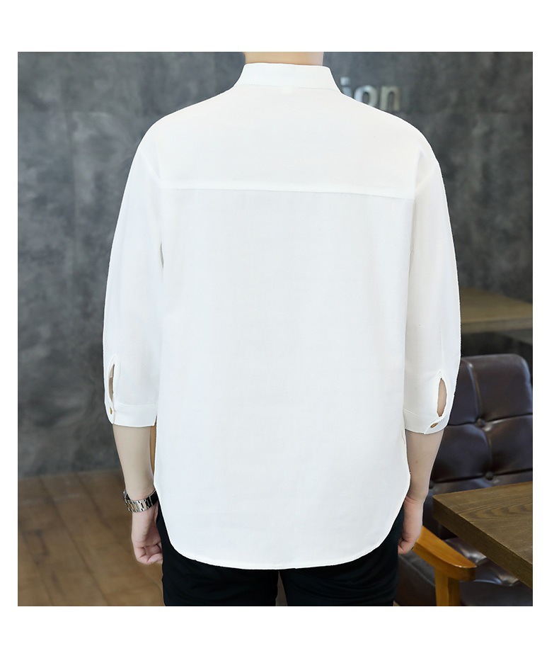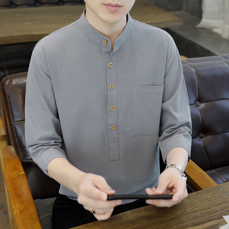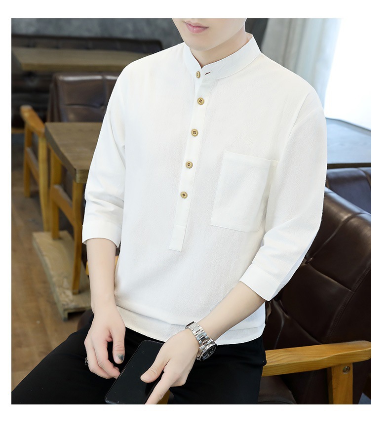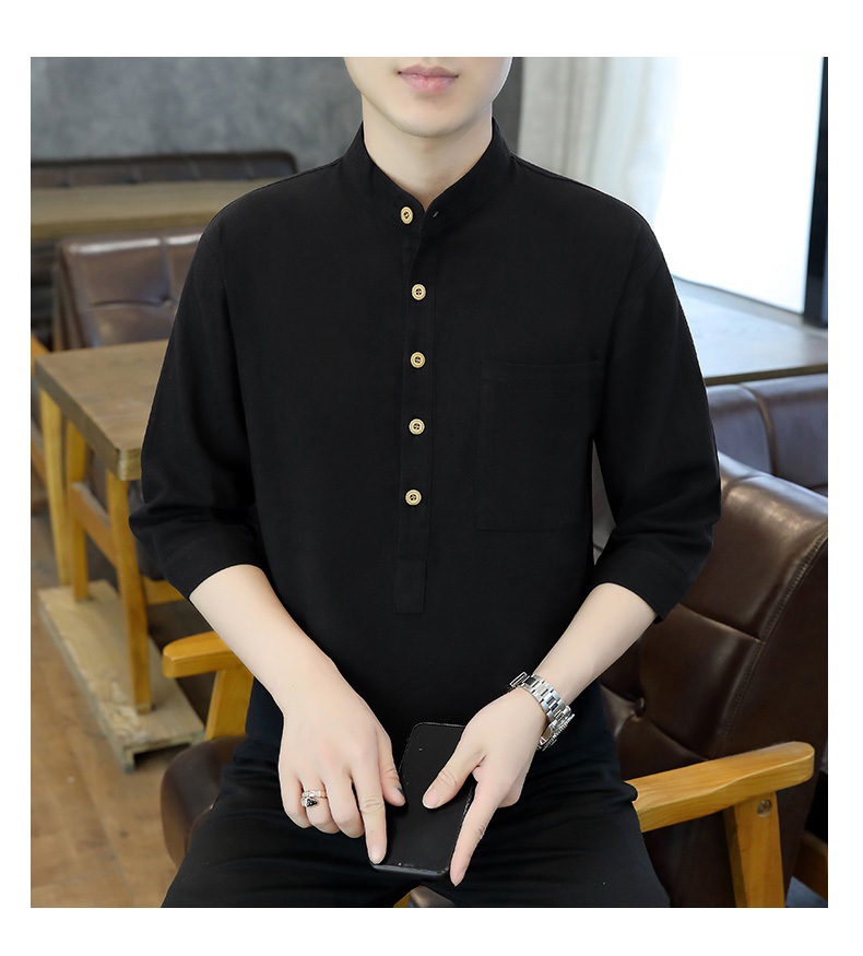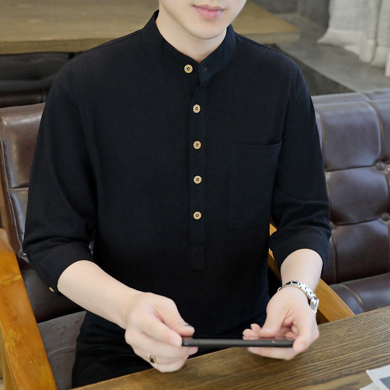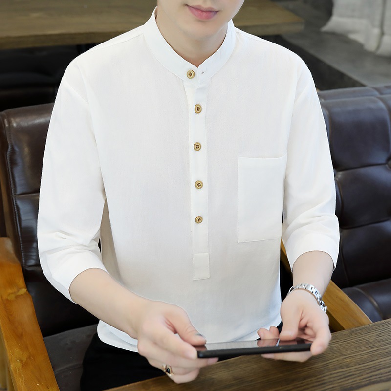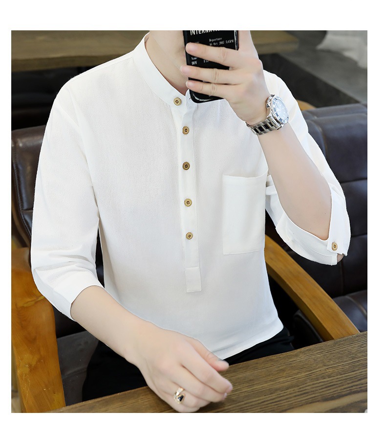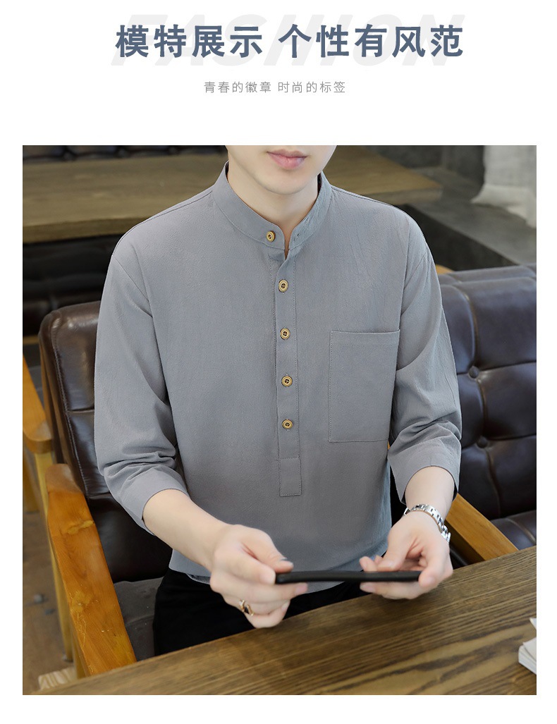 7 점 슬리브 셔츠 남자 여름 한국 패셔너블 남자 리넨 반팔 셔츠 중반팔 코튼 리넨 남자 셔츠