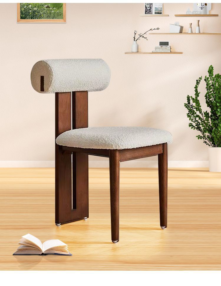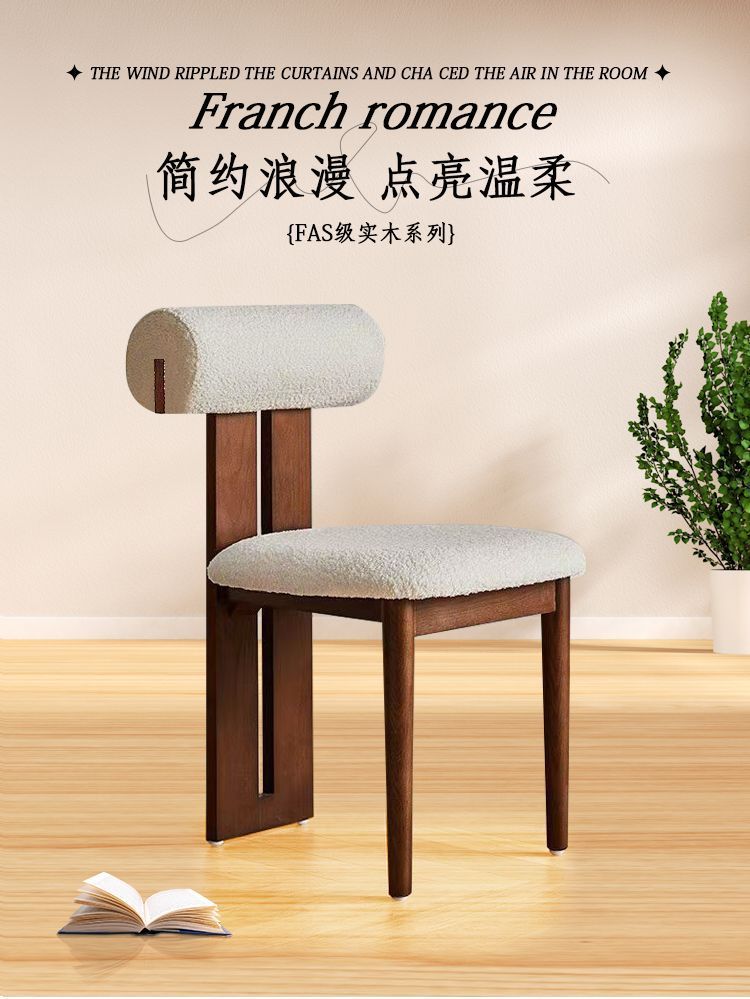 노르딕 레트로 프랑스 중년 솔리드 우드 다이닝 의자 홈 스타일 스타일 간단한 메이크업 의자 등받이 의자 라이트 럭셔리 하마 의자스토어 가기