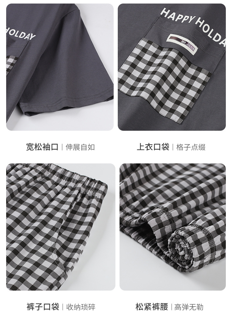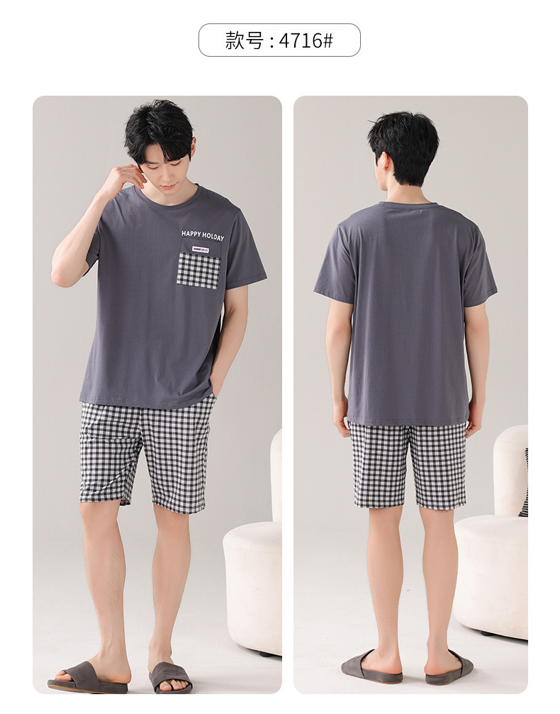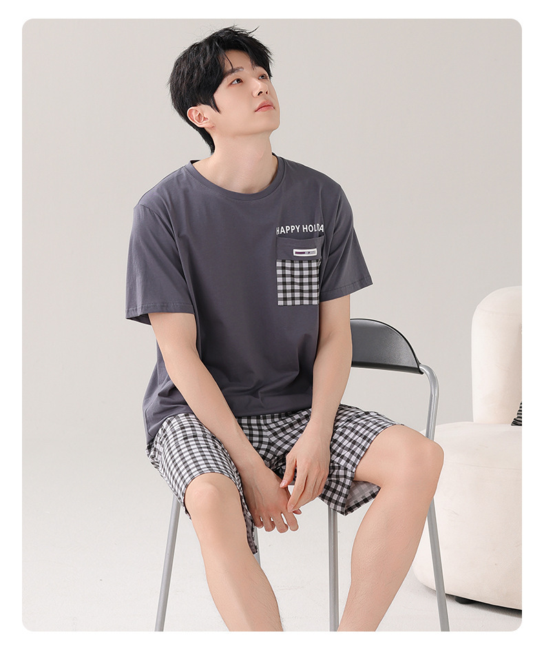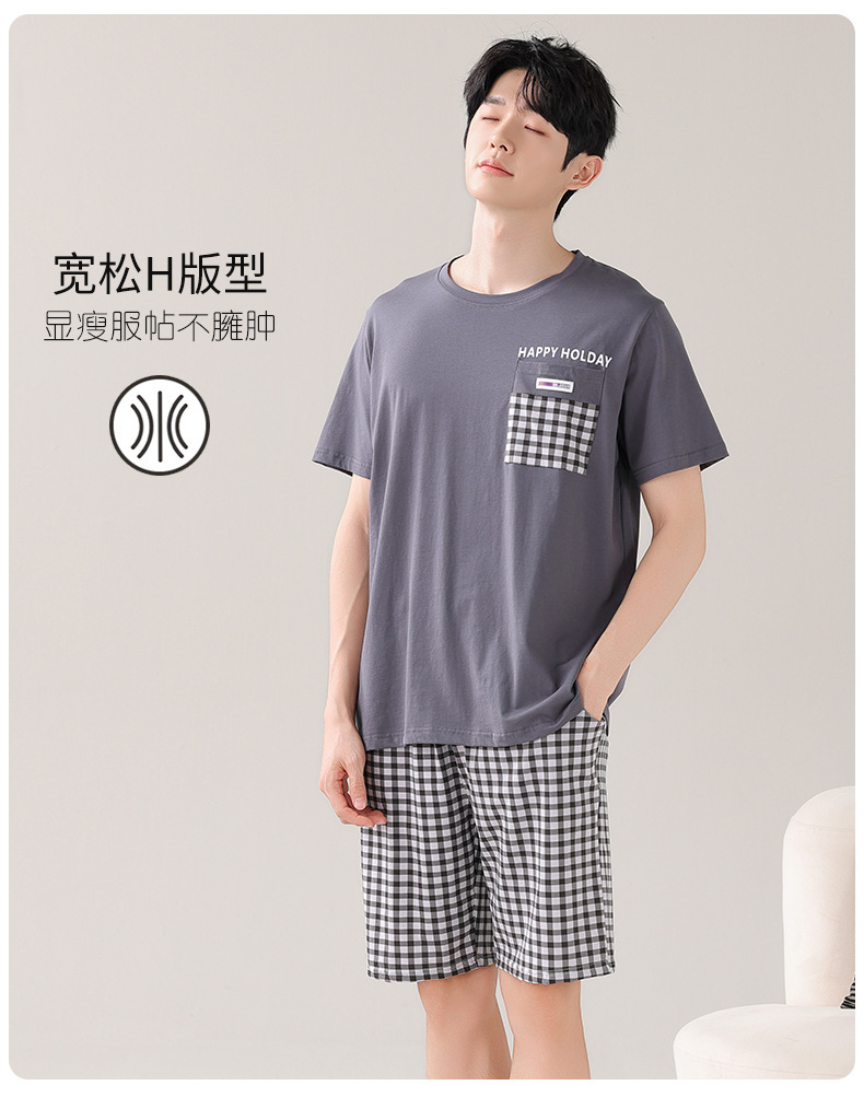 타이트한 경기 면 남자 잠옷 여름 얇은 둥근 목 짧은 소매 반바지 플러스 사이즈 홈 의류 세트 도매로 입을 수 있습니다.스토어 가기
