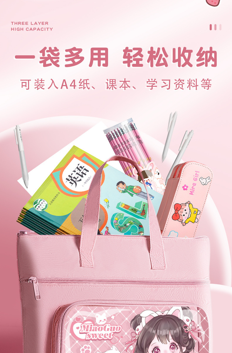 다층 학생 도서 휴대용 저장 가방 대용량 방수 어린이 학습 자료 튜토리얼 가방 숙제 파일 가방스토어 가기