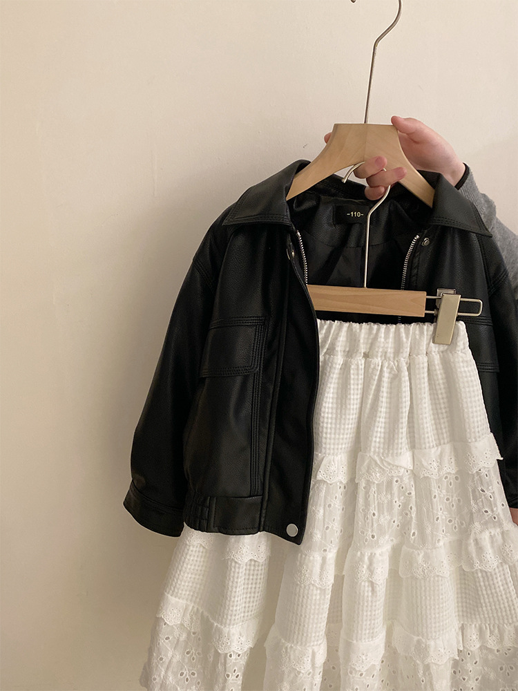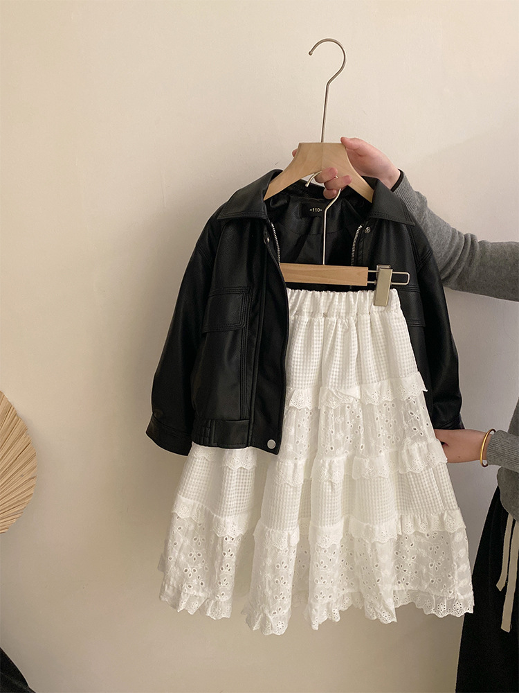 한국 스타일 소녀 봄 새로운 단색 우아한 가죽 2025 봄 새로운 꽃 바느질 치마 투피스 세트스토어 가기