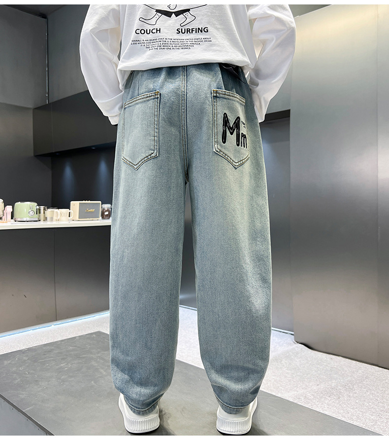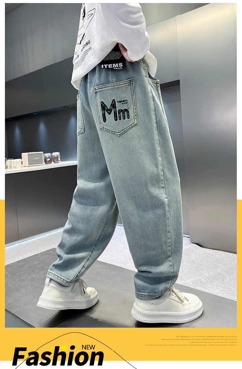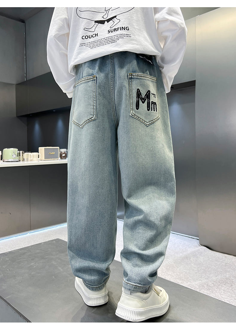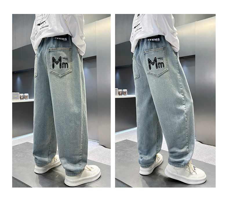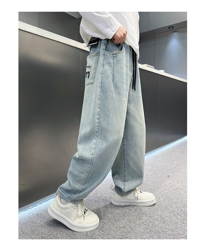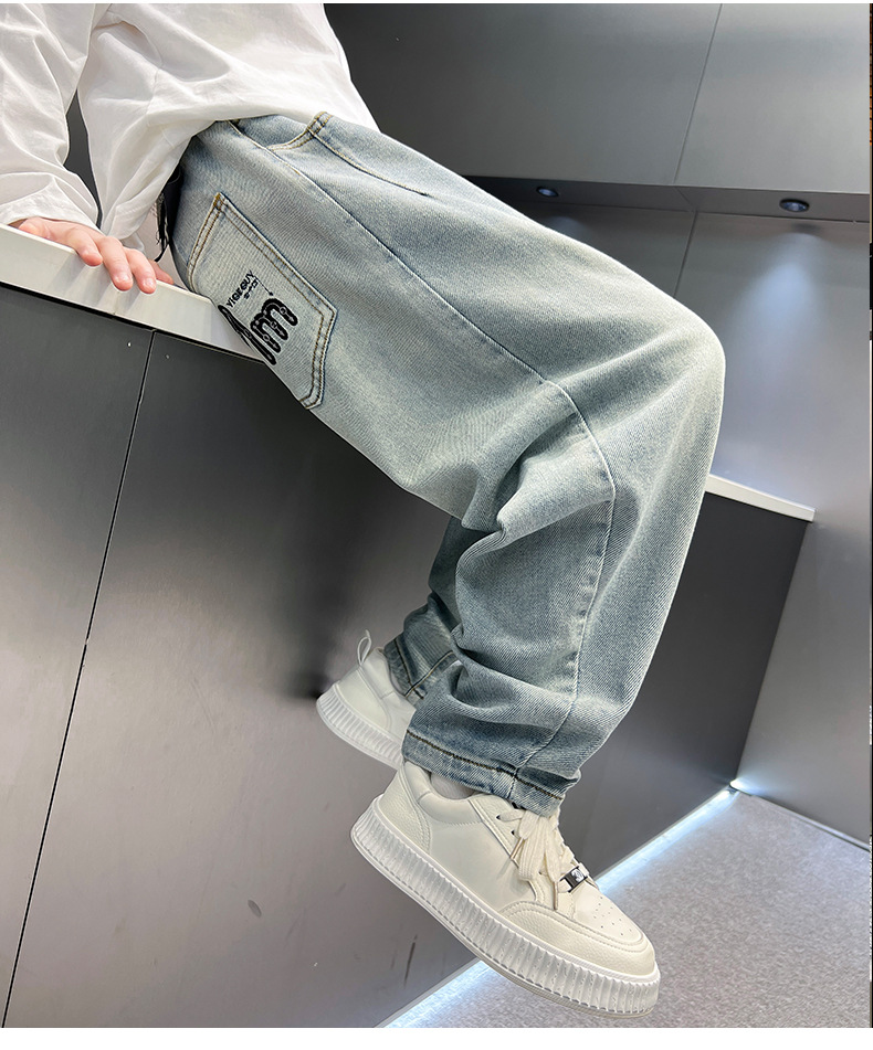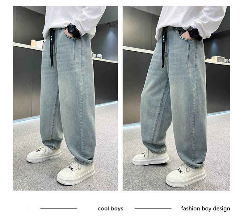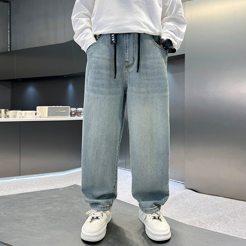 아동복 소년 바지 2025 년 새 한국식 느슨한 올매치 대형 어린이 느슨한 캐주얼 청바지스토어 가기