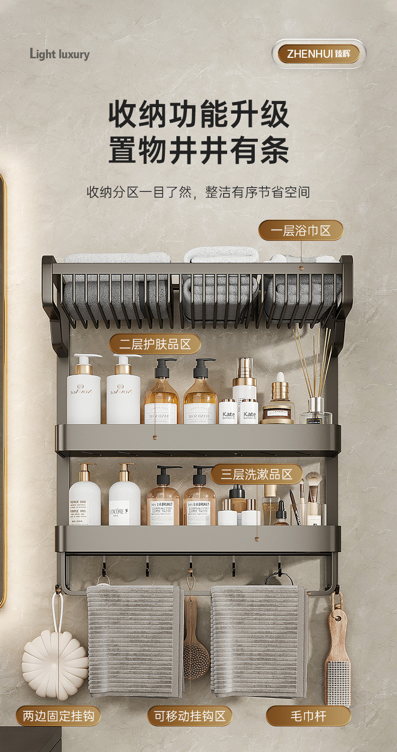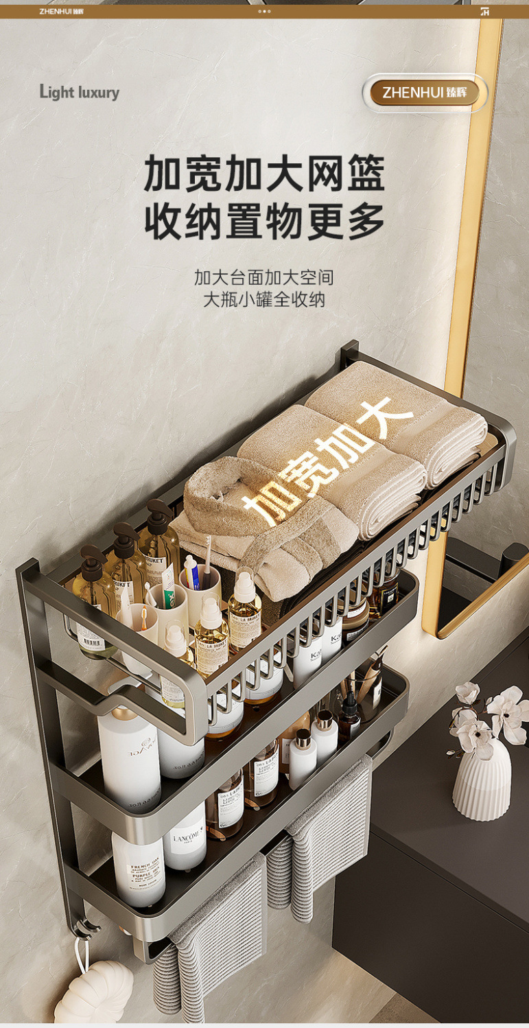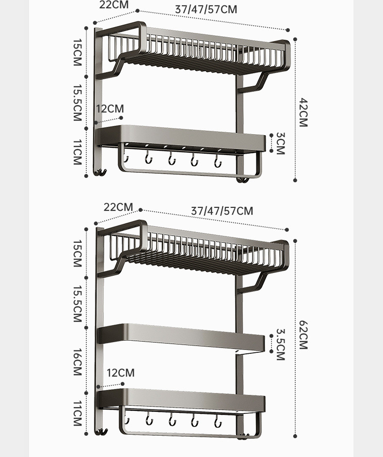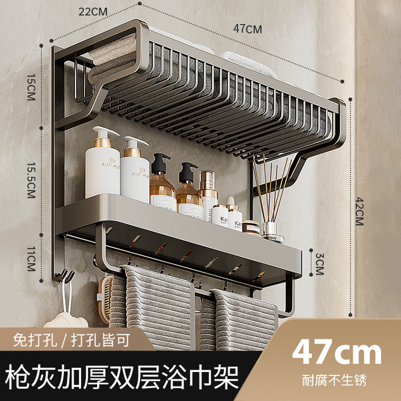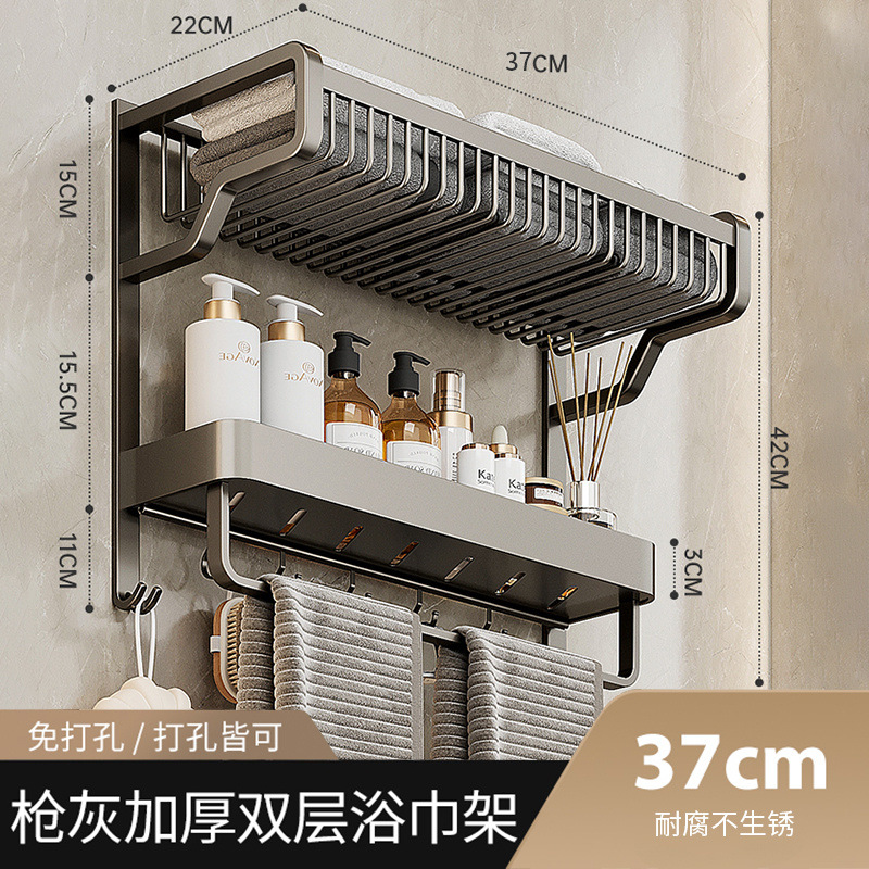 • ◆★◆[텍스처드 건그레이] 다층 다기능 수납선반-[욕실타월걸이] 접이식 수건걸이 59cm◆★◆