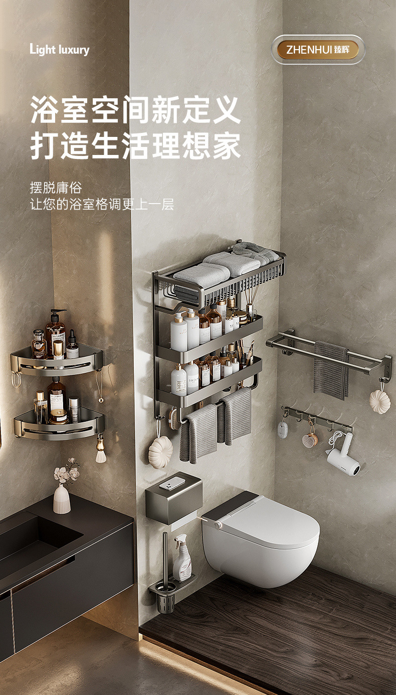 • ◆★◆[텍스처드 건그레이] 다층 다기능 수납선반 - [욕실 수납선반] 두꺼워진 이중삼각판◆★◆