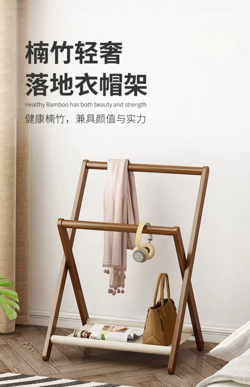 • 86cm 길이의 접이식 옷걸이 [브라운 모델]