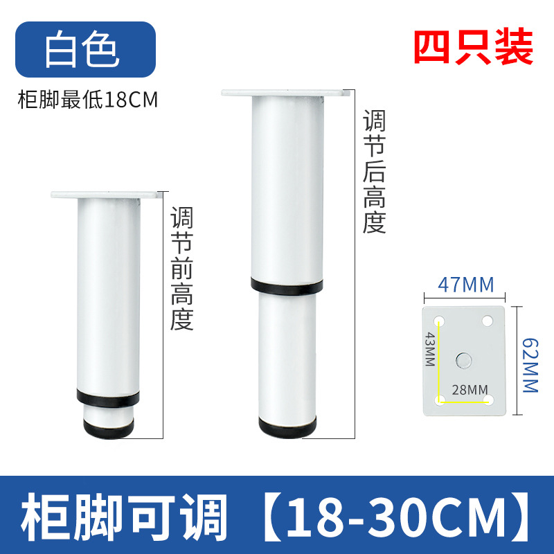 • 흰색 18cm/4개 [18-30cm 조절 가능] 내하중 500kg