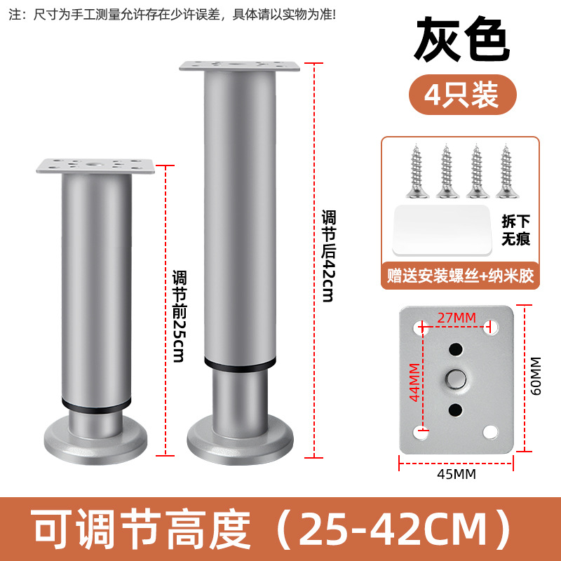 • 업그레이드된 확대 베이스 4개 [높이 25-42cm] 회색/내하중 500kg