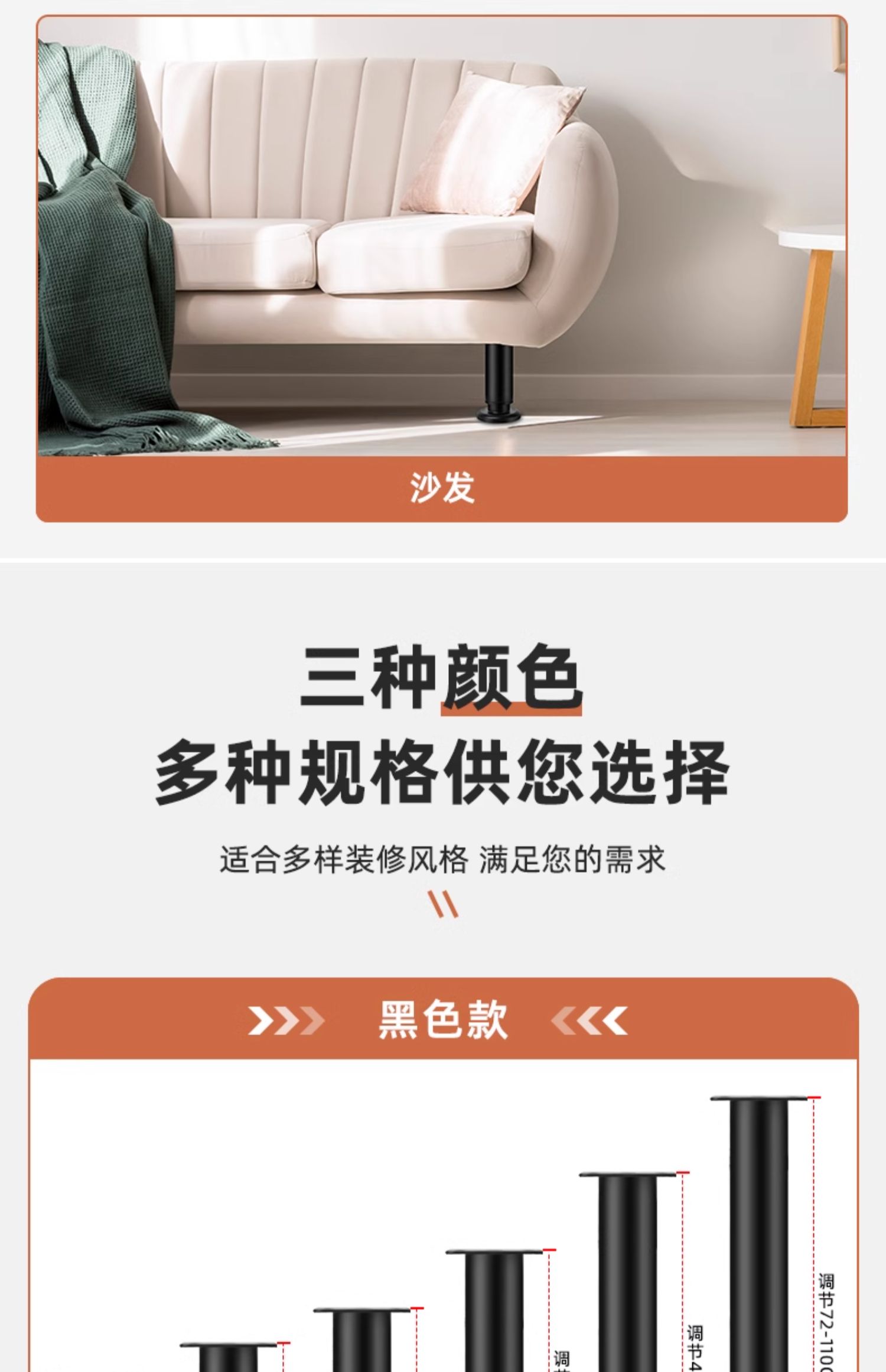 조정 가능한 발 지원 커피 테이블 소파 발 가구 망원경 내각 발 침대 다리 테이블 다리 TV 내각 지원 열 증가스토어 가기