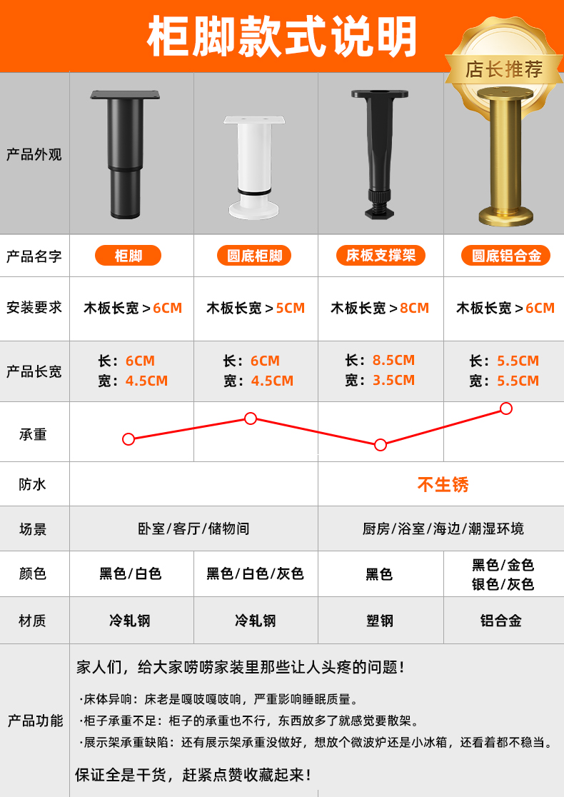 • 확대된 베이스로 업그레이드됨 [높이 8-12cm] 검정색/최대 500kg개까지 견딜 수 있음