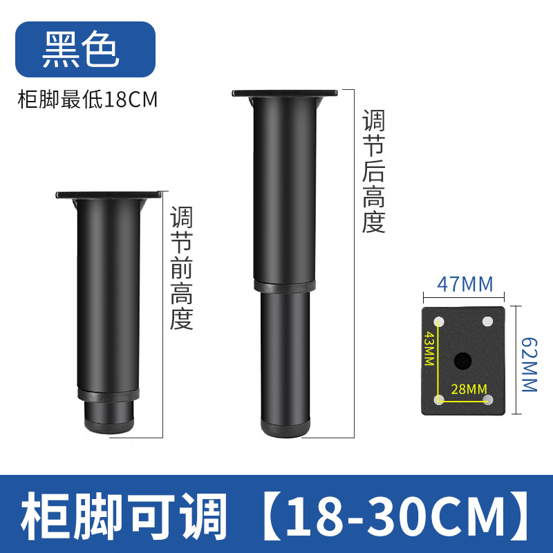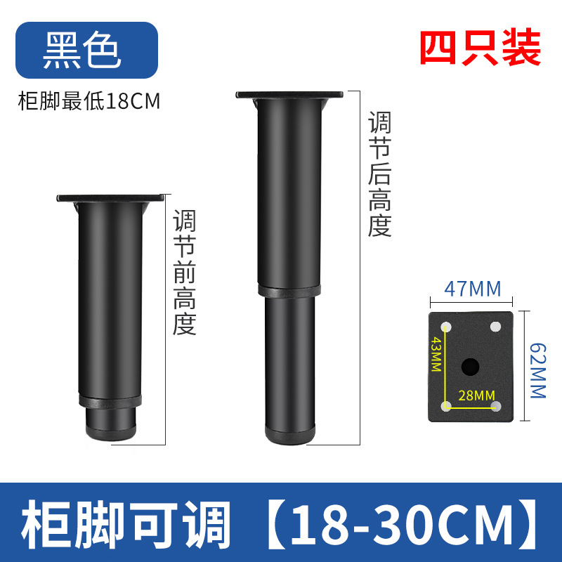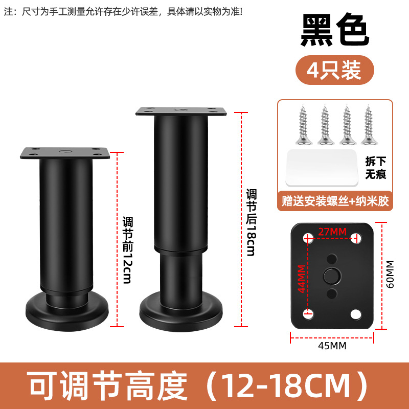 • 블랙 18cm/4개 [18-30cm 조절 가능] 내하중 500kg