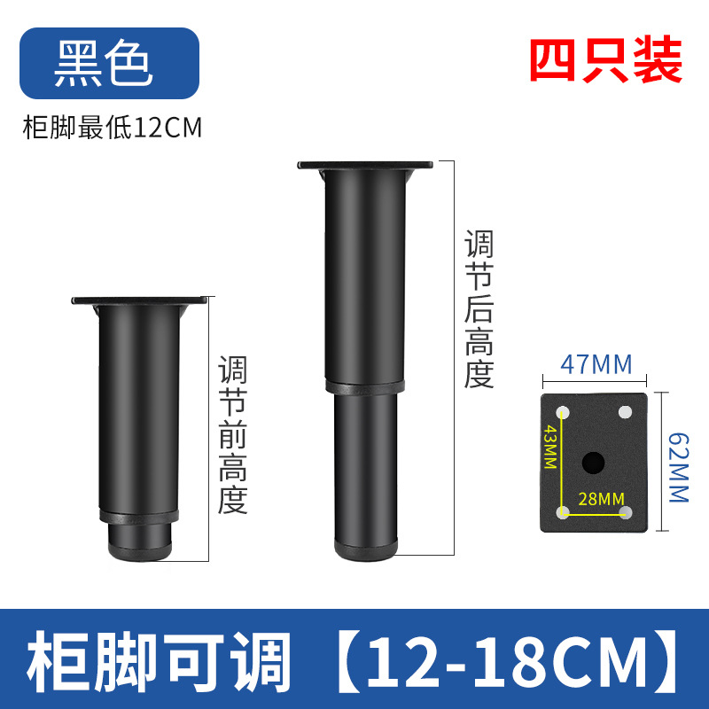 • 블랙 12cm/4개[12-18cm 조절 가능] 내하중 500kg